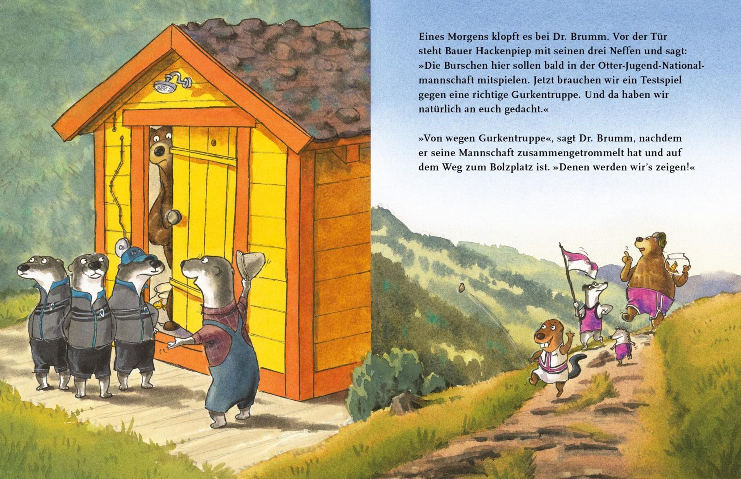 Bauer Hackenpiep hat Dr. Brumm und seine Freunde zu einem Fußball-Match herausgefordert: Hackenpiep und seine Neffen, die bald in der Jugend-Otter-Nationalmannschaft spielen sollen, gegen Dr. Brumms "Gurkentruppe". Von wegen Gurkentruppe! Dr. Brumm und seine Freunde wollen beweisen, dass sie es draufhaben! Und tatsächlich erleben Hackenpiep und seine Neffen schon bald eine echte Überraschung ...