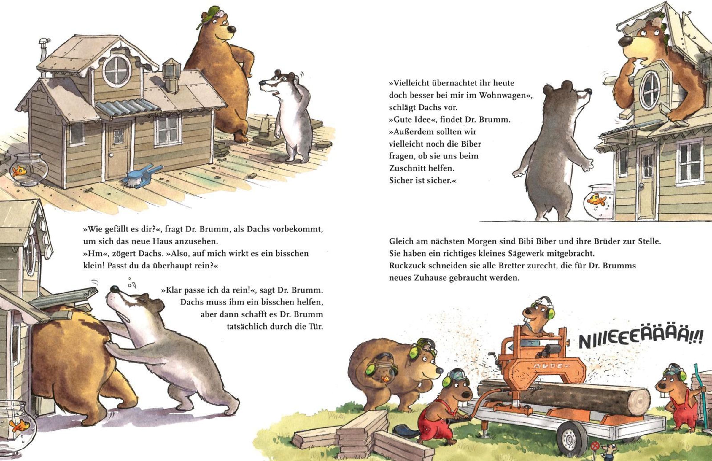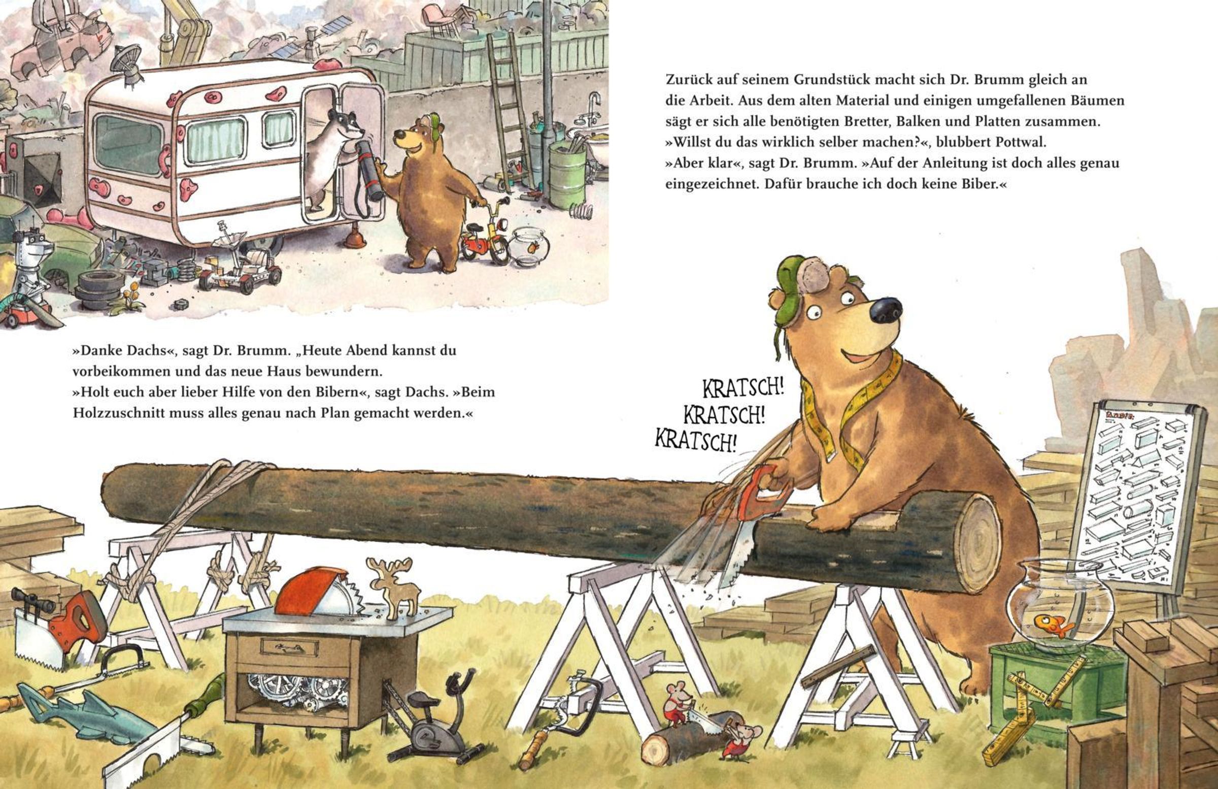 Herrliches Baustellen-Schlamassel mit Dr. Brumm Auweia, ein Sturm hat Dr. Brumms schönes Haus zerlegt! Aber kein Problem, das ist ja schnell wieder aufgebaut - behauptet zumindest Dr. Brumm. Er legt los und zimmert eine verrückte Konstruktion nach der anderen ... bevor er sich doch lieber ein bisschen helfen lässt. Von Dachs, der Baupläne zeichnen kann, den Bibern, die sich bestens mit Holz auskennen, und den geschickten Dachdecker-Igeln. Wie gut, wenn man so viele Freunde hat! Aber solange Dr. Brumm auf der Baustelle mithilft, ist nichts und niemand vor ihm sicher!