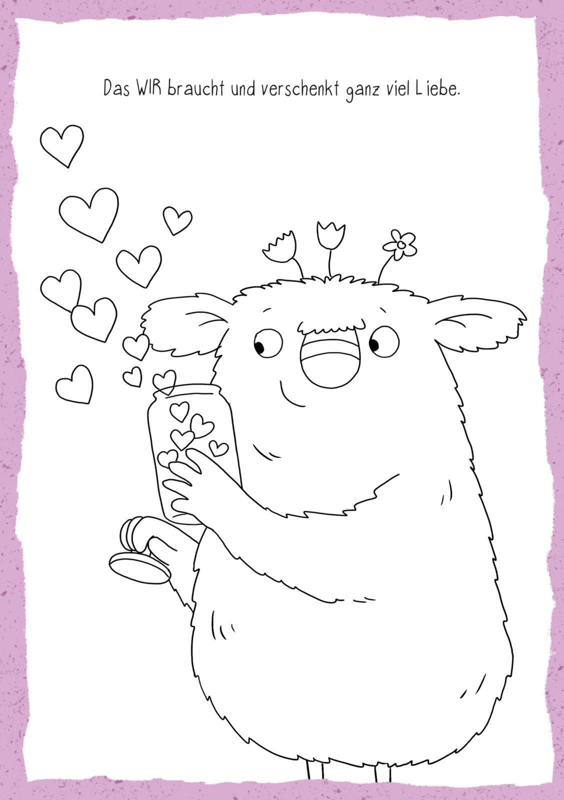 Ein besonderes Highlight sind die Ausmal-Postkarten am Ende des Blocks. Sie bieten die Möglichkeit, selbstgemalte Botschaften zu verschenken und WIR-Momente mit anderen zu teilen.