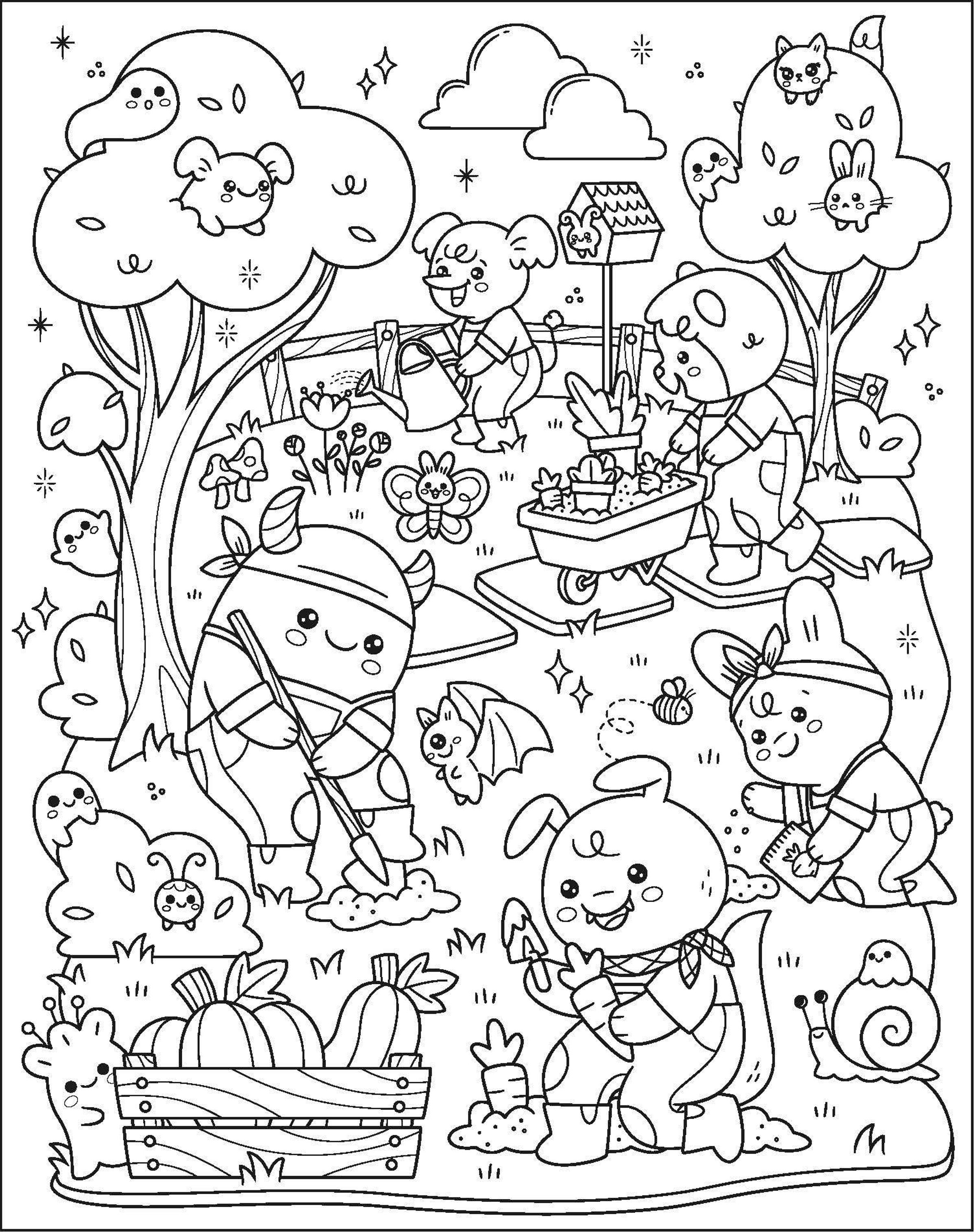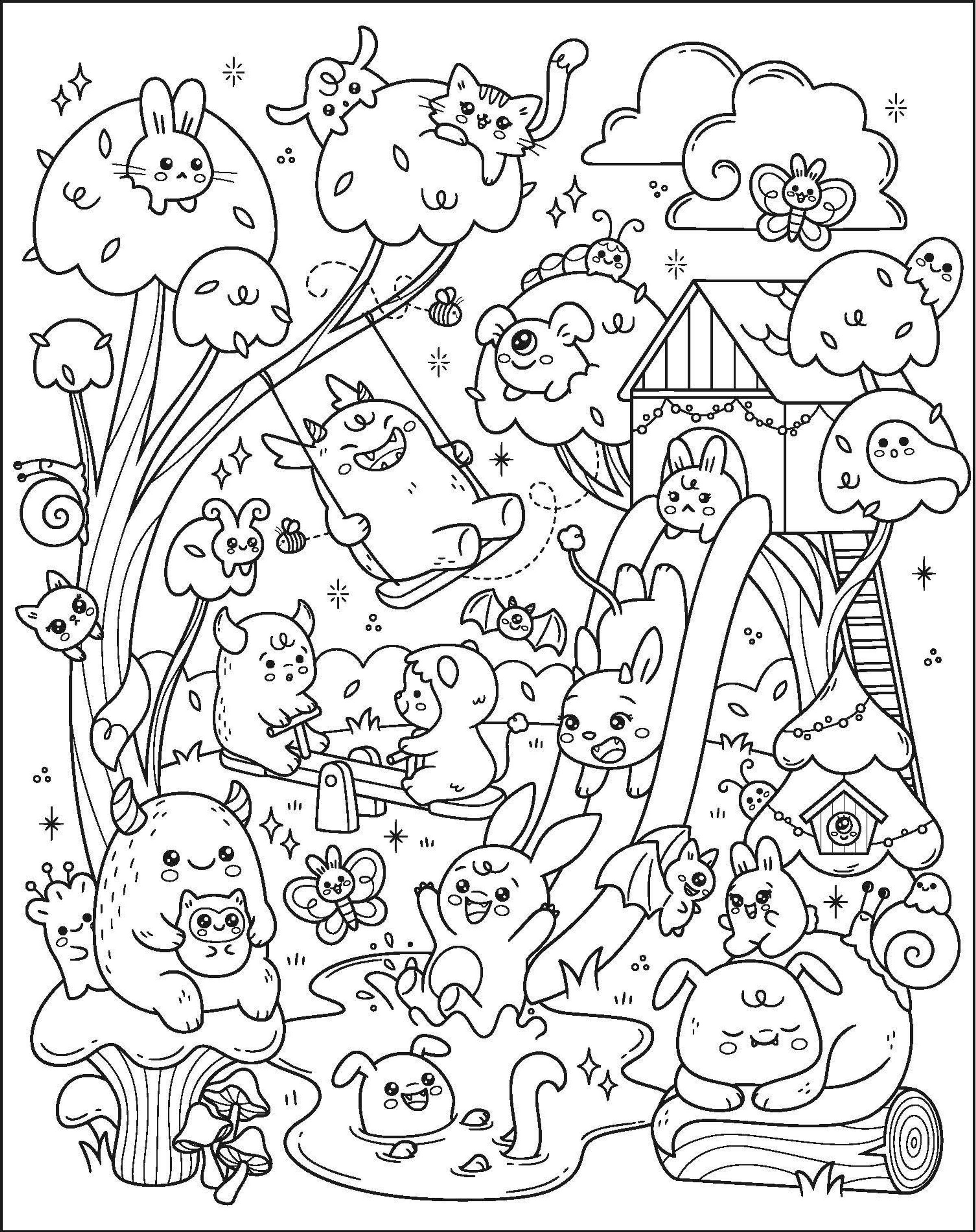 - Bring each playful scene to life with crayons, markers or gel pens
