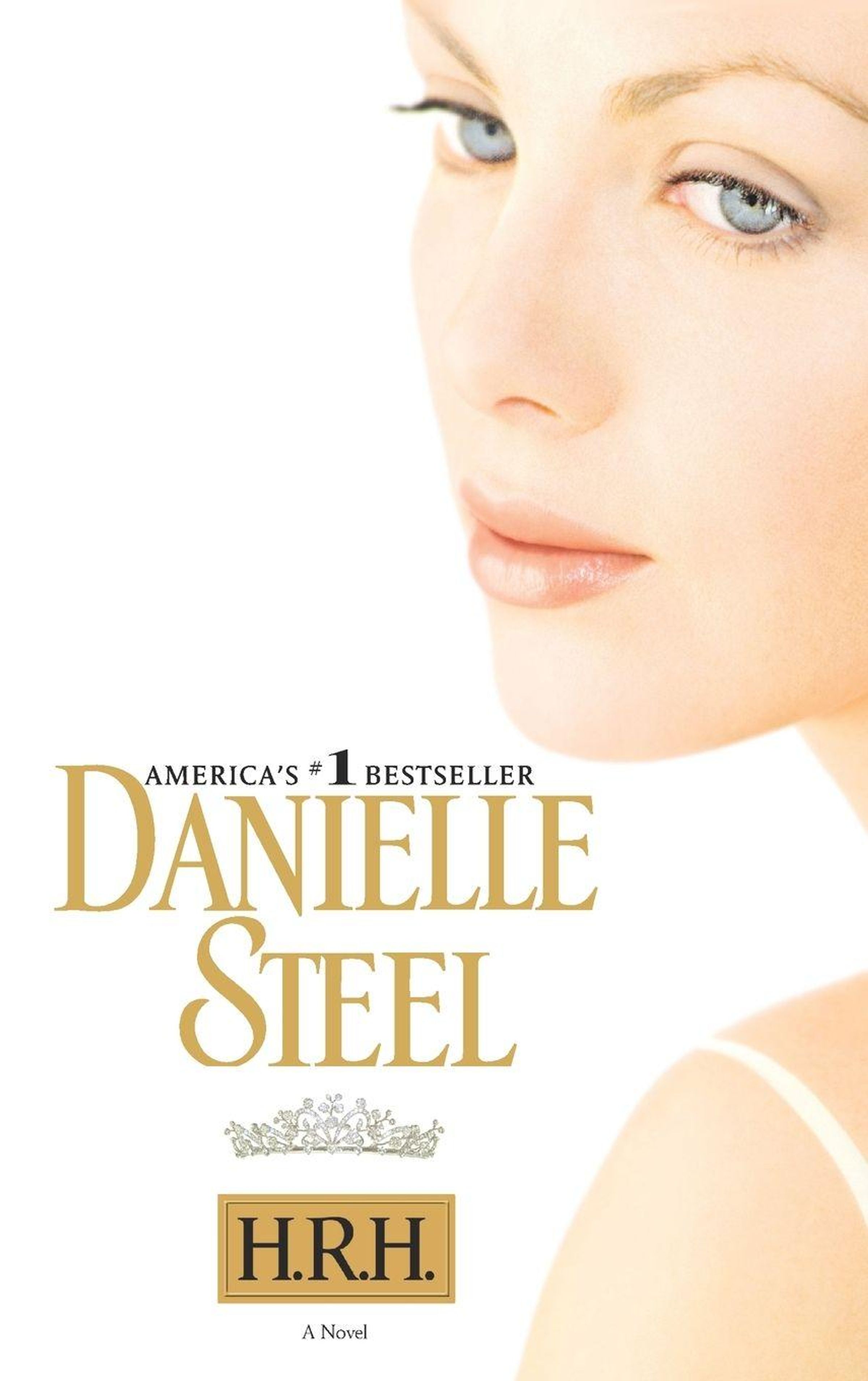 "America's #1 Bestseller, Danielle Steel, H.R.H, A Novel" in goldener Schrift. Nahaufnahme eines Gesichts., Buch