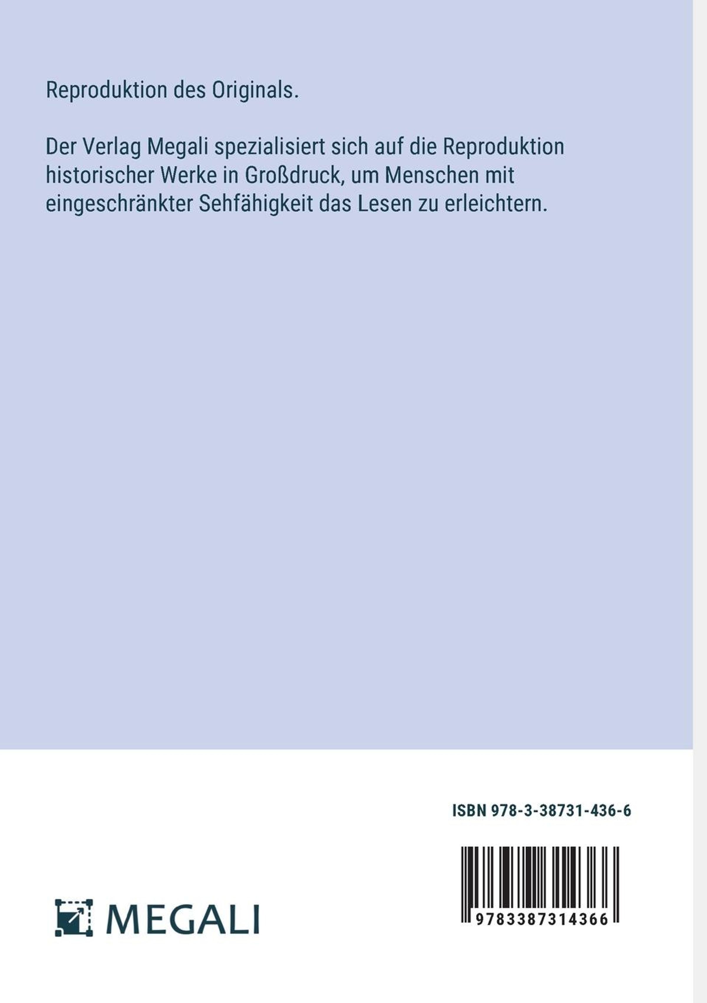 Reproduktion des Originals. Der Verlag Megali spezialisiert sich auf die Reproduktion historischer Werke in Großdruck, um Menschen mit eingeschränkter Sehfähigkeit das Lesen zu erleichtern.