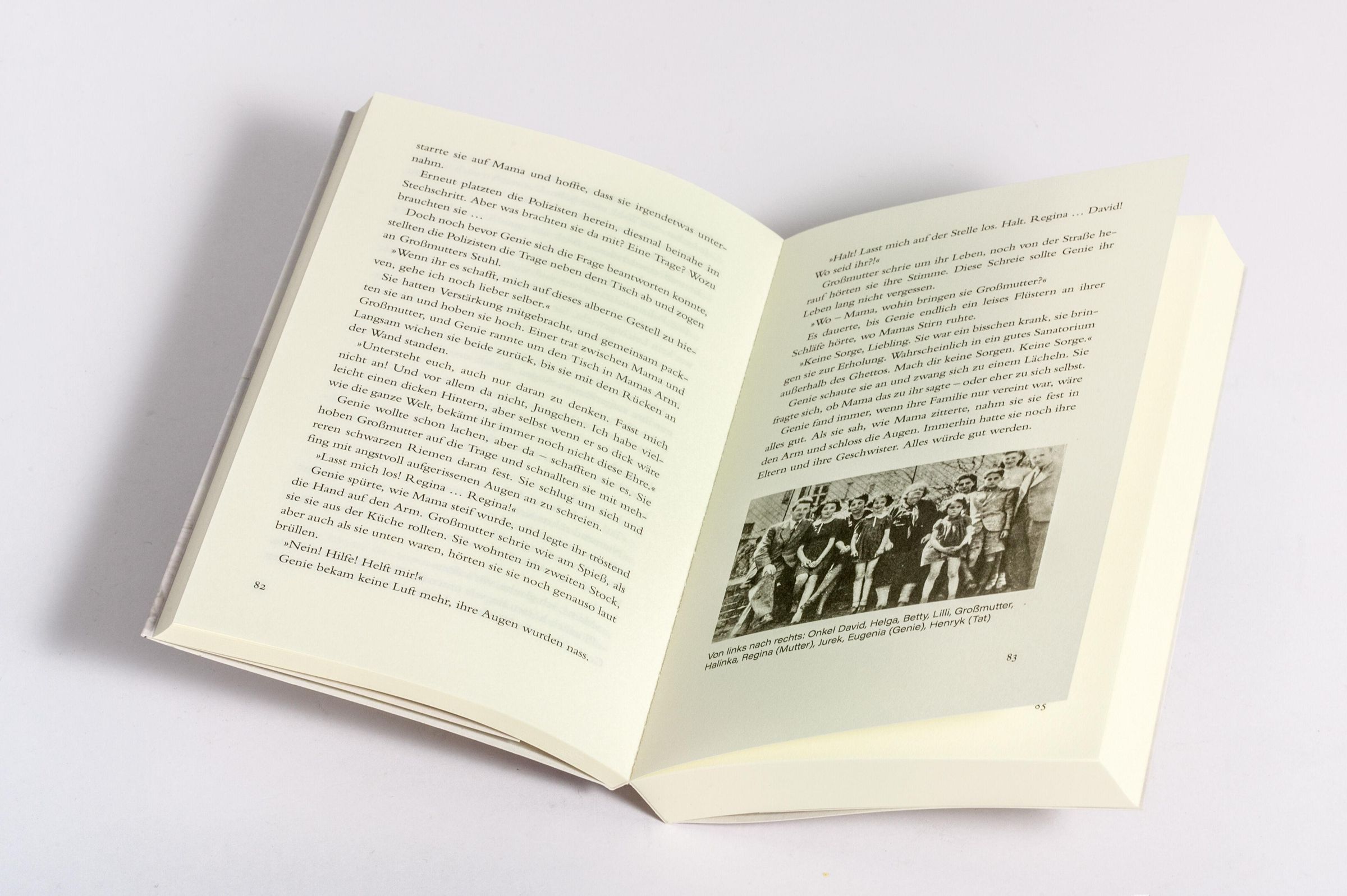 Also beschreibt sie Genies Angst, als diese ihre Heimat Krakau verlassen muss und im Deportationszug in eine ungewisse Zukunft rollt, und berichtet vom Schrecken Auschwitz-Birkenaus.