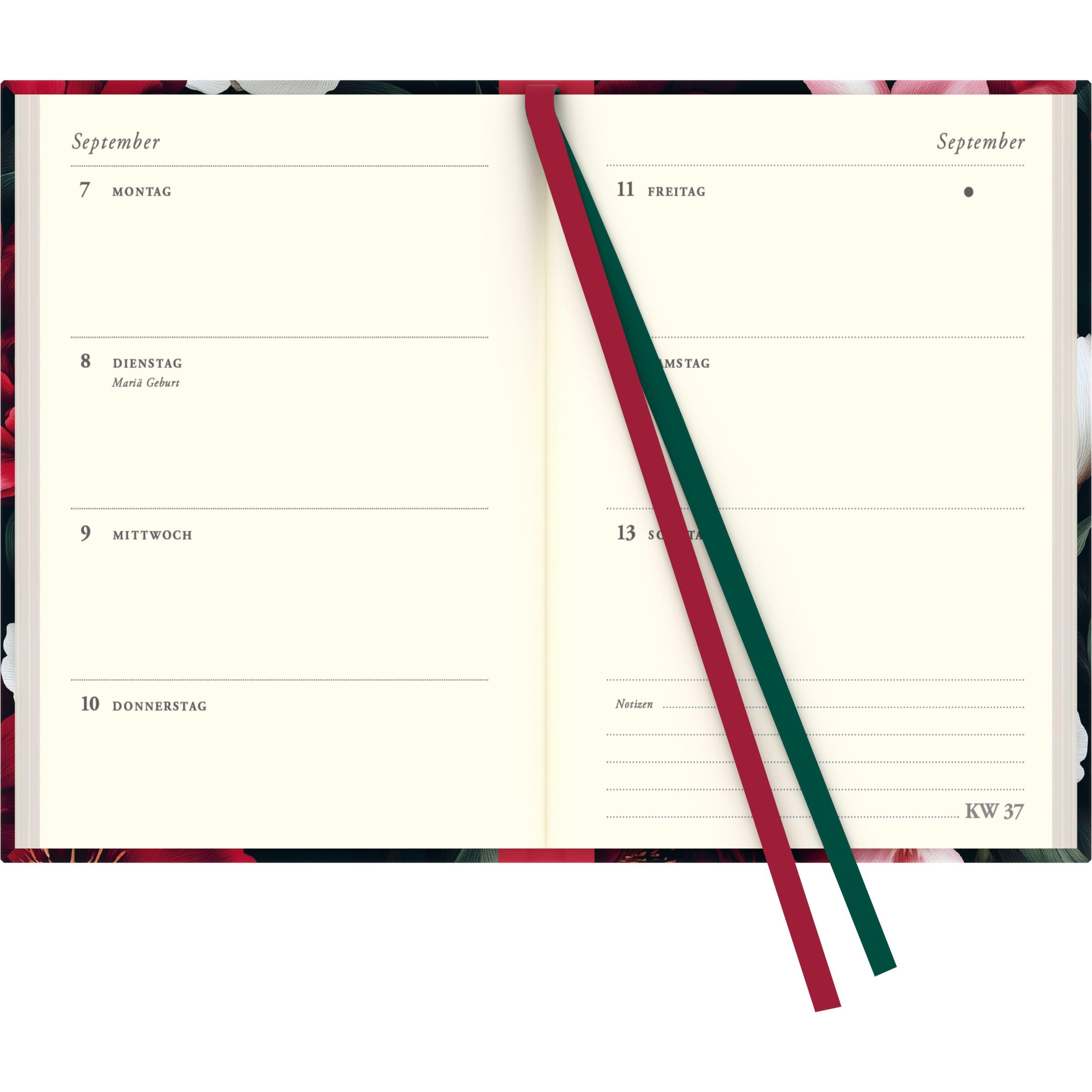 Blumig, praktisch, elegant: Der DUMONT Taschenkalender „Dark Flowers 2026" kombiniert ein farbenfrohes Blumen-Design mit hochwertiger Ausstattung und viel Platz für persönliche Notizen.