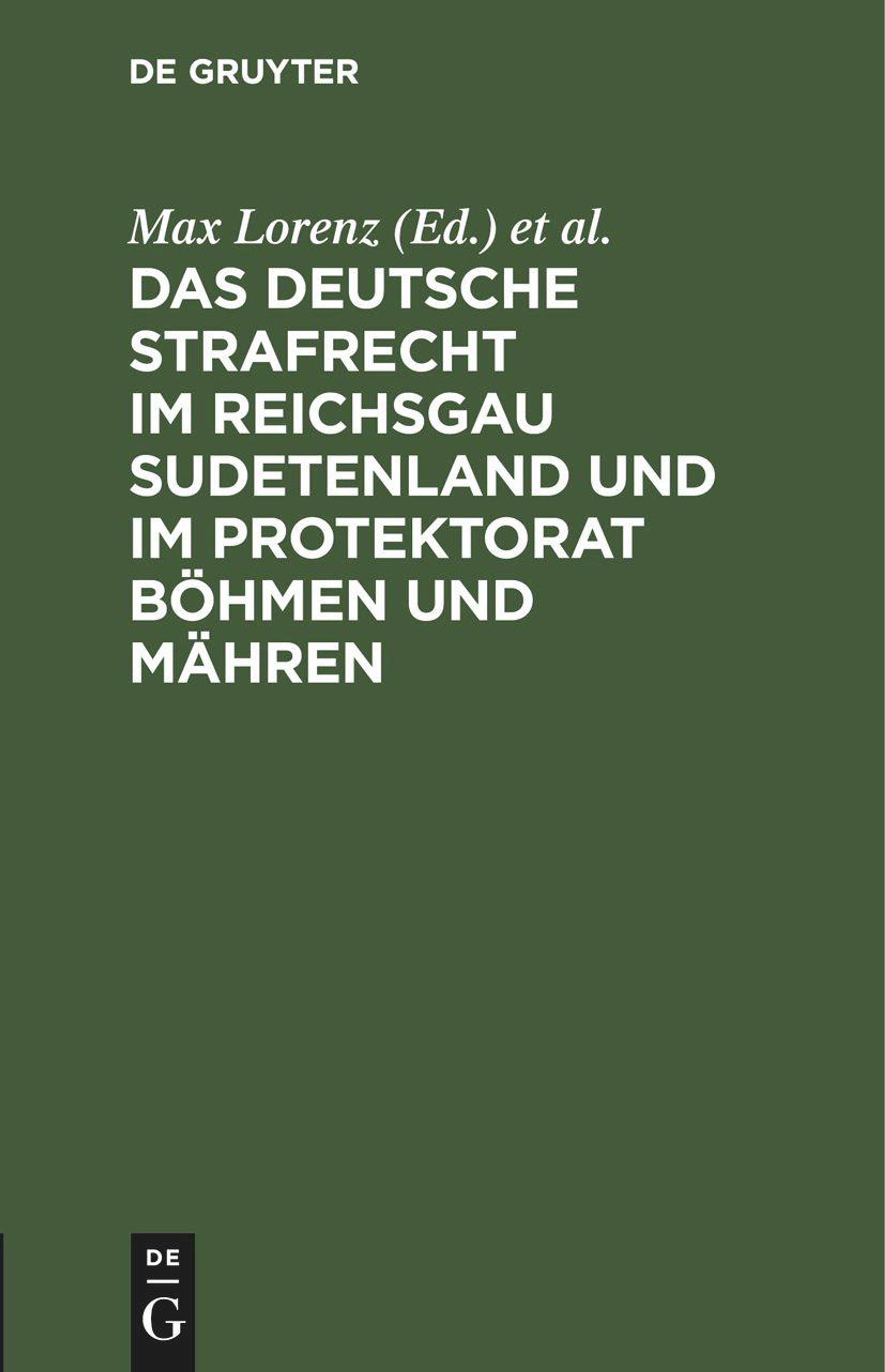 Das deutsche Strafrecht im Reichsgau Sudetenland und im Protektorat Böhmen und Mähren