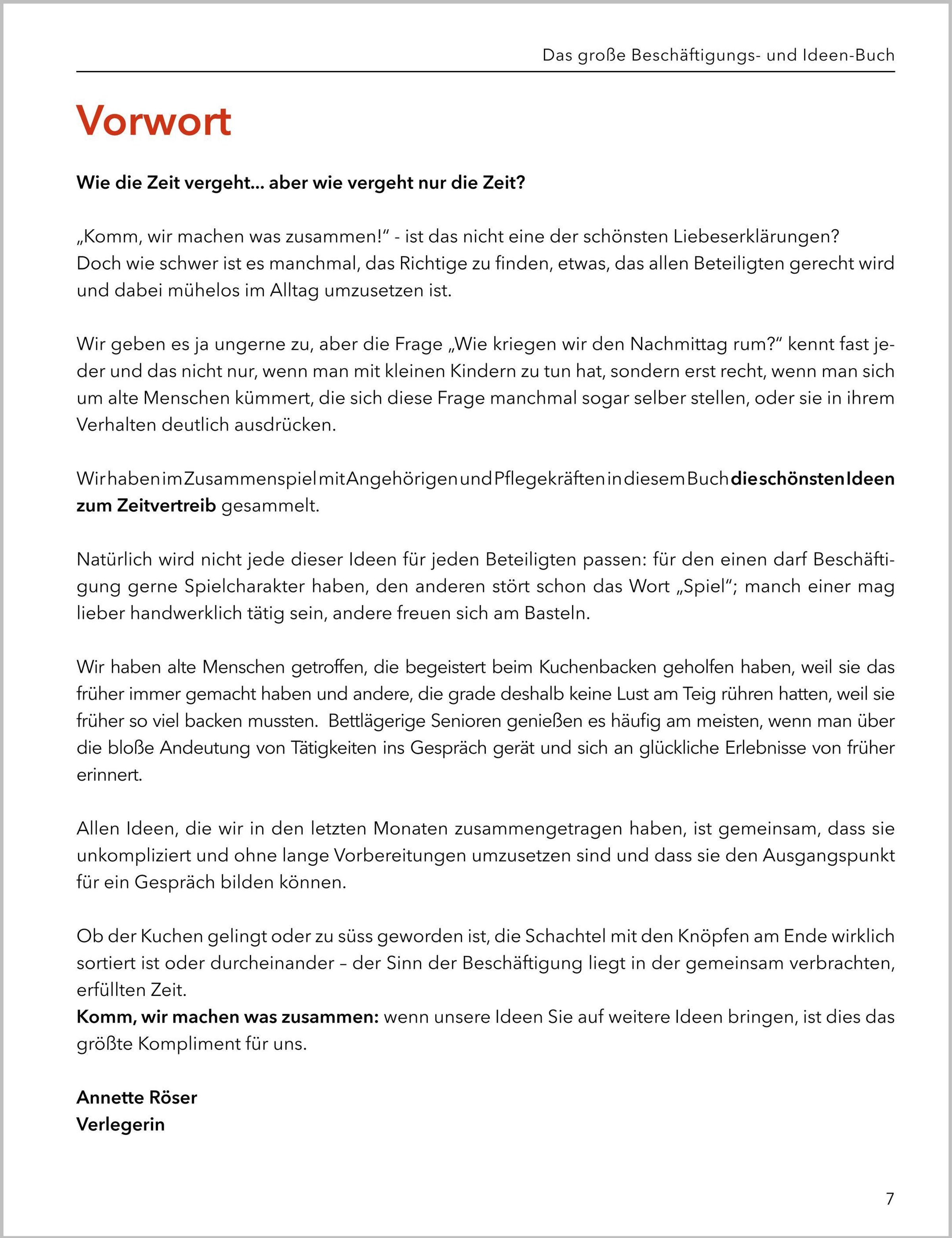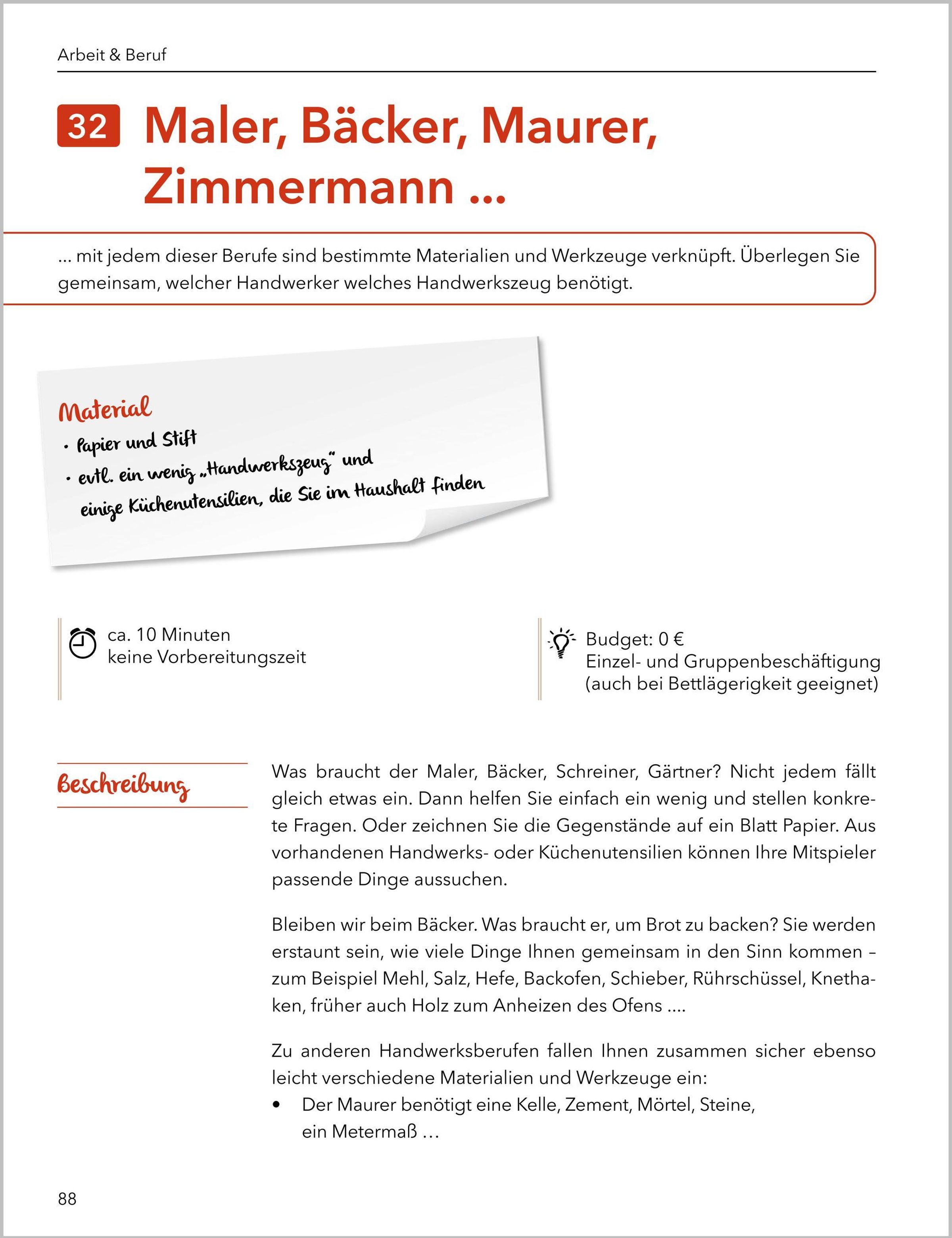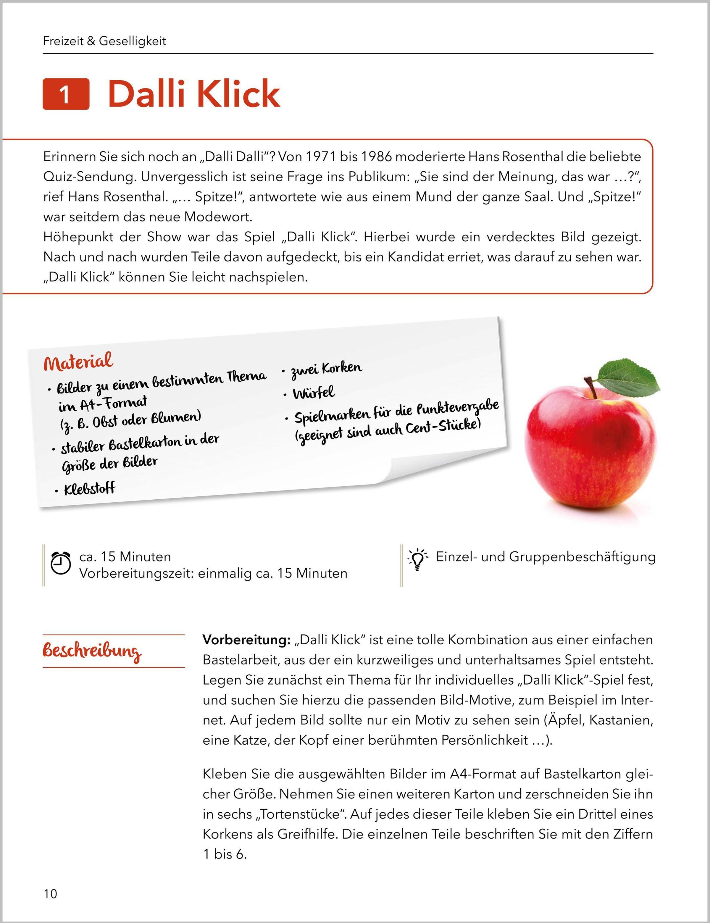 Zu Hause, in der Pflegeeinrichtung oder in der offenen Seniorenarbeit - die Beschäftigungs- und Spiel-Ideen aus diesem Buch können direkt umgesetzt werden. Ohne aufwändige Vorbereitung oder komplizierte Materiallisten.