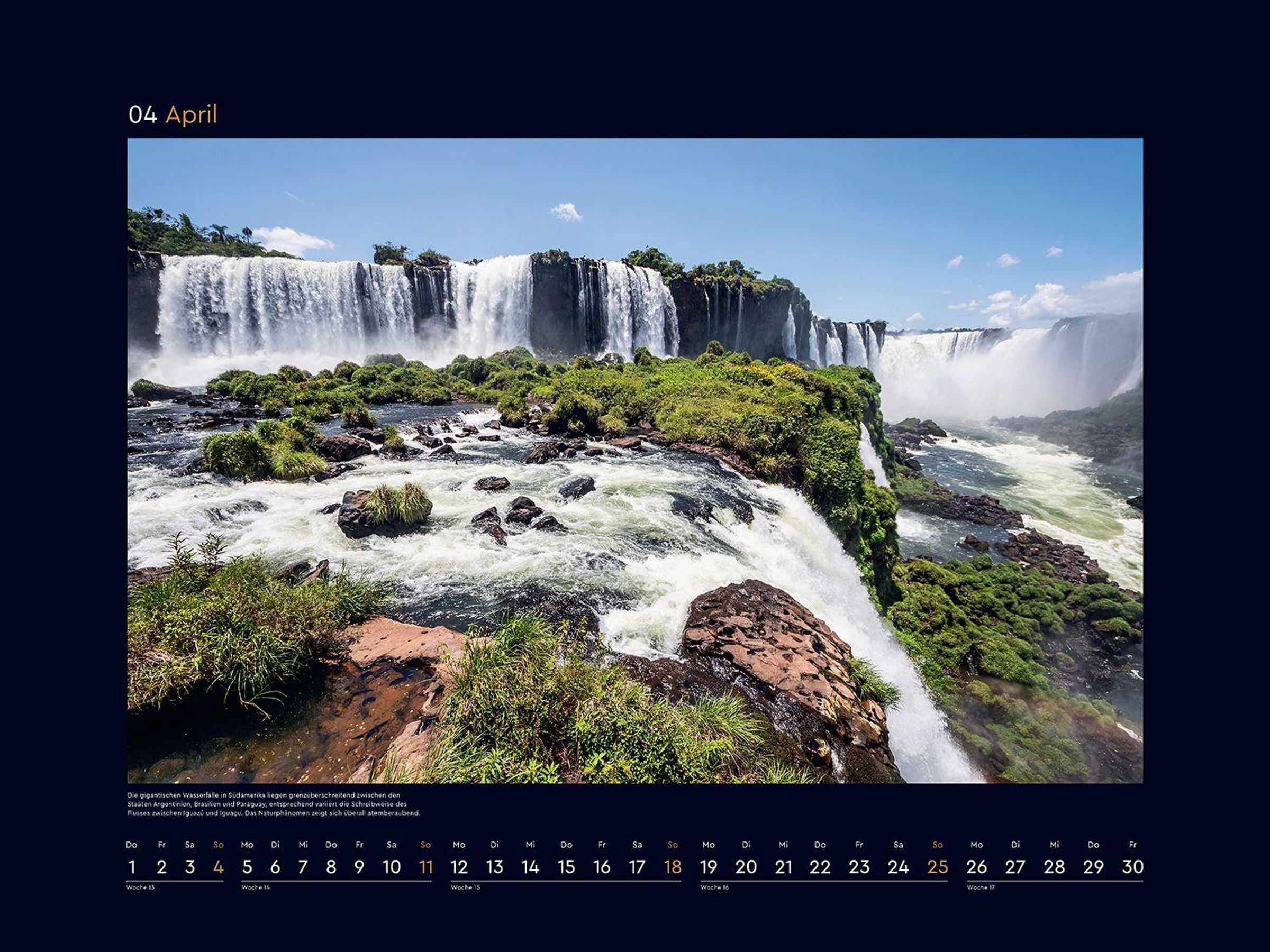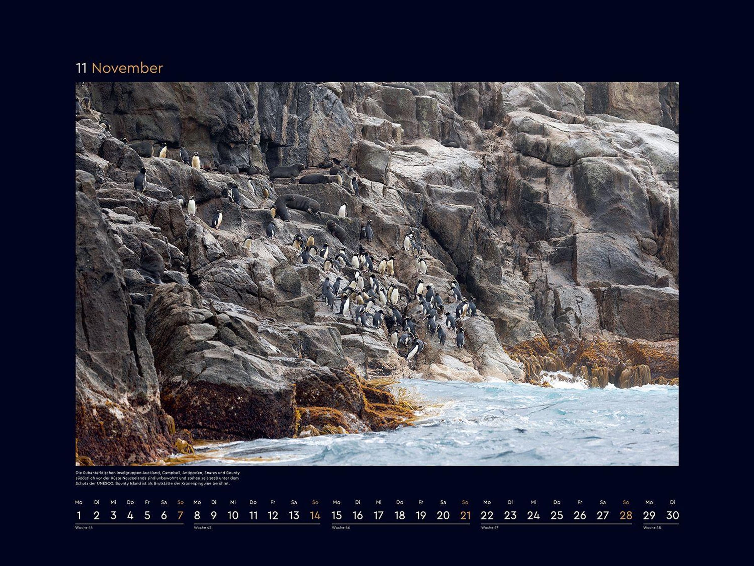 Monat für Monat wartet ein bildstarkes Highlight auf Entdeckung, und ein ansprechendes Kalendarium sorgt für optimalen Nutzen. Die mattschwarzen Rahmen bilden einen starken Kontrast zu den brillanten Fotografien.