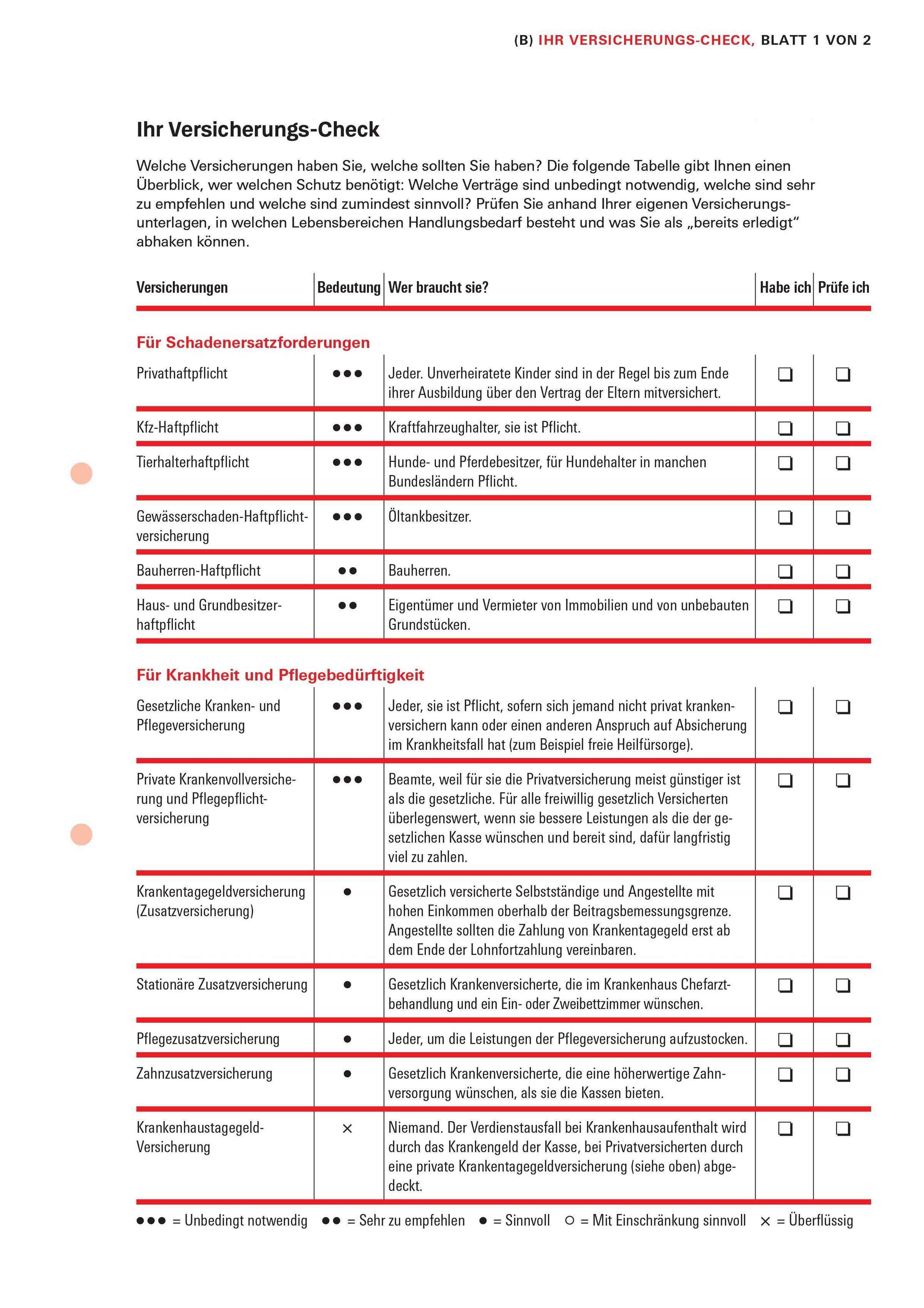 Mit Checklisten, Vertrags-Check und Musterschreiben für Kündigung oder Wechsel prüfen Sie Ihre Versicherungen, finden günstige Tarife und schließen Versorgungslücken.