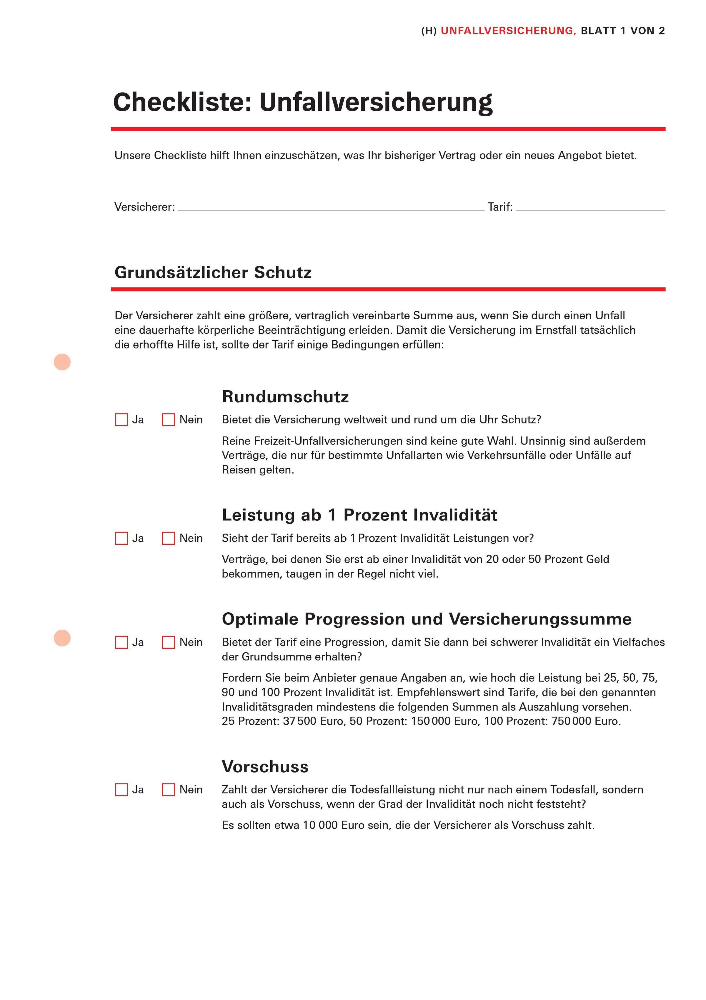 - Checklisten und Musterschreiben für Versicherungsverträge
