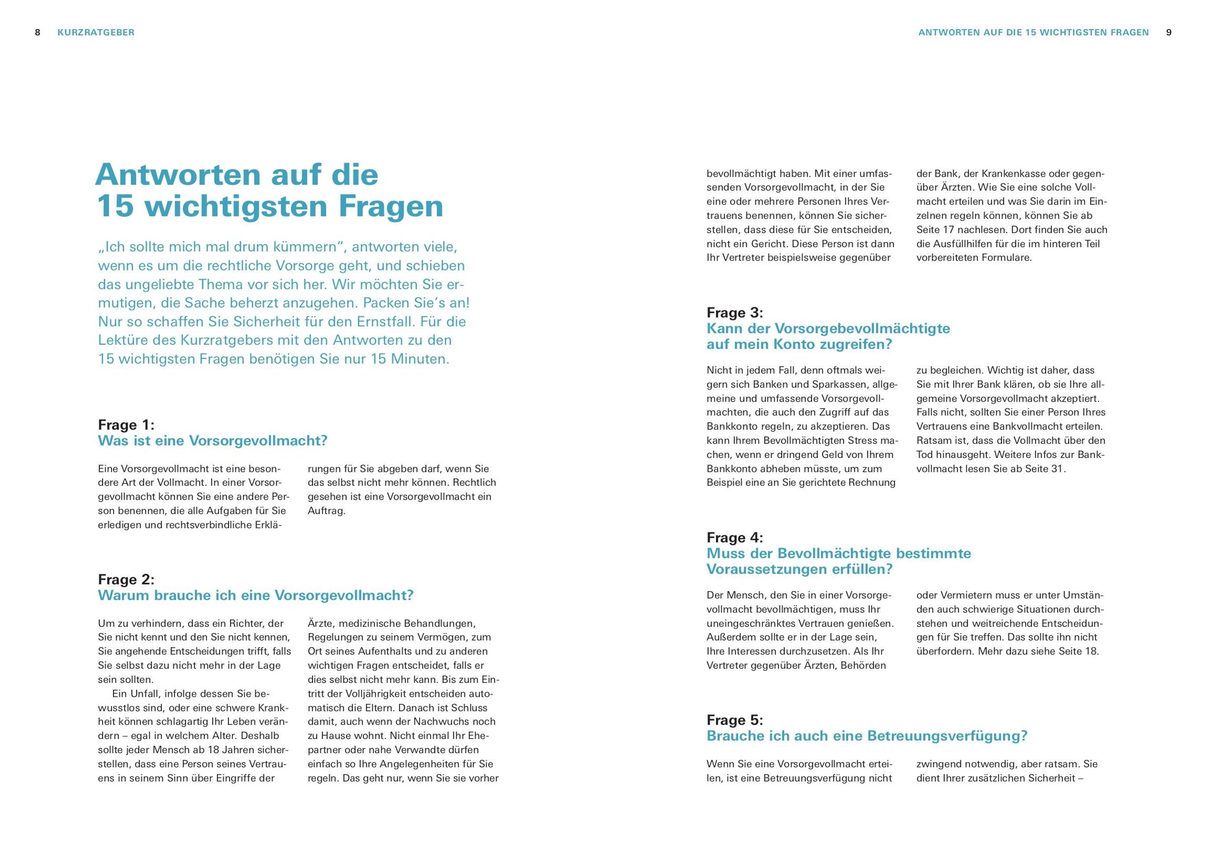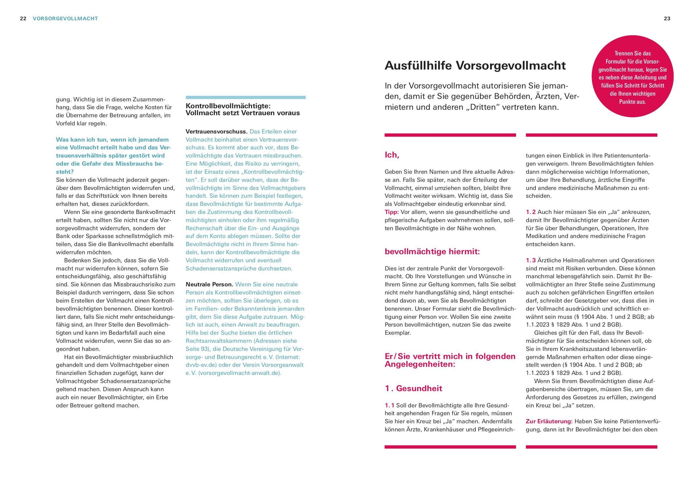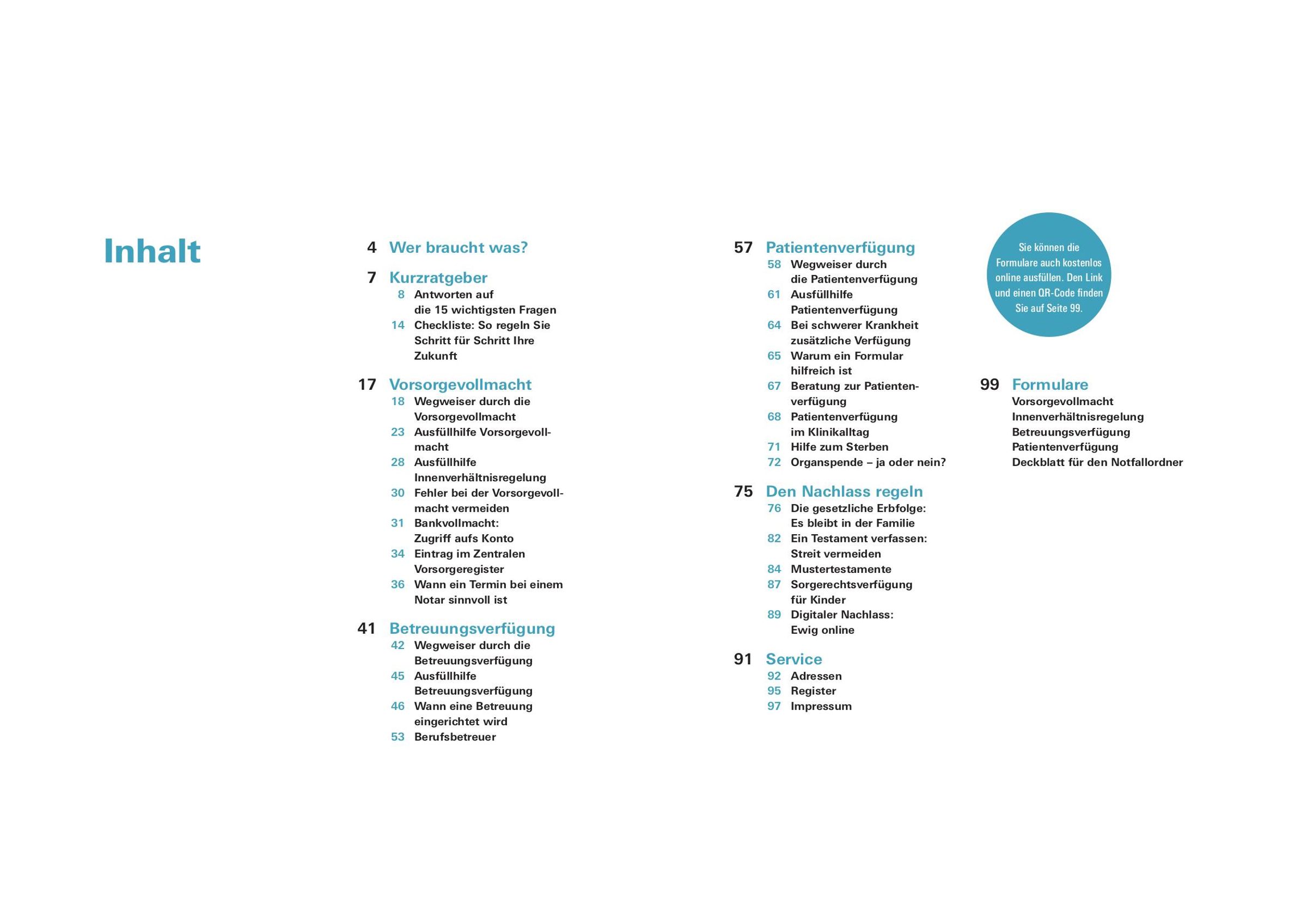 Das umfangreiche Vorsorge-Set für Sie und Ihre Familie Selbstbestimmt durchs Leben zu gehen ist für gesunde Menschen etwas Selbstverständliches. Doch Unfall, Krankheit oder Alter können die Möglichkeit, frei über sich zu bestimmen, einschränken - oder sogar unmöglich machen. Je nach Alter, Lebens- und Vermögenslage besteht unterschiedlicher Regelungsbedarf beim Thema Vorsorge. Im Vorsorgeratgeber erfahren Sie, welche Themen Sie möglichst schnell in Angriff nehmen sollten und wo für Sie nicht zwingend Handlungsbedarf besteht. Die Neuauflage klärt Sie zusätzlich über das Ehegattennotvertretungsrecht und die Änderungen der Betreuungsreform auf, die ab 2023 gelten. Erstellen Sie rechtzeitig alle Dokumente für Ihren Notfallordner, dann haben Sie die Gewissheit, dass Ihre Versorgung nach Ihren Wünschen gewährleistet wird, falls Sie einmal auf Hilfe angewiesen sind. Im Vorsorge-Set enthalten sind alle benötigten Formulare für Ihre persönliche Vorsorge wie bspw. Vorsorgevollmacht, Patientenverfügung und Betreuungsverfügung in einfacher Sprache erklärt und mit einer Schritt-für-Schritt-Ausfüllhilfe. Zusätzlich informiert Sie der Ratgeber darüber, welche Verfügung was leistet, was beim Thema Finanzen zum Beispiel hinsichtlich der Erbschaftssteuer oder des Verfassens eines Testaments zu beachten ist und mit welchen Angelegenheiten Sie zum Notar müssen. - Einführender Kurzratgeber: 15-Minuten-Überblick mit den wichtigsten Fragen und Antworten - Für alles gesorgt: Schritt-für-Schritt-Anleitungen für alle Formulare, Vorsorgevollmacht, Patientenverfügung und Betreuungsverfügung zum Herunterladen und Ausdrucken - Tipps für den Nachlass: Was beim Testament schreiben zu beachten ist und wie Sie Ihren digitalen Nachlass, beispielsweise in sozialen Netzwerken, regeln können - Neu ab 2023: Die Ehegattennotvertretungsrecht und die Änderungen der Betreuungsreform, die ab 2023 geltenAnmerkungen: