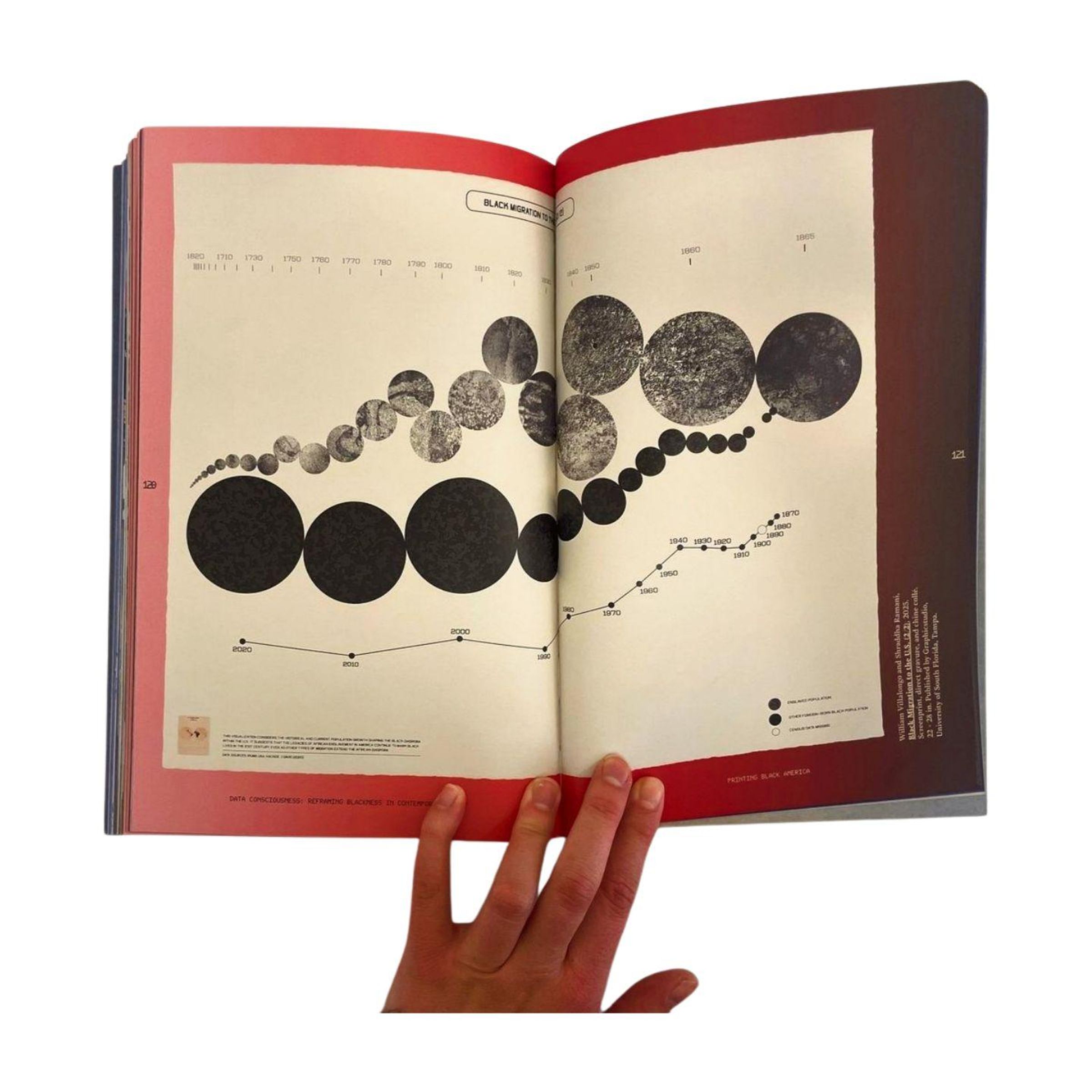 Data Consciousness: Reframing Blackness in Contemporary Print. Blau-rote Schrift auf blauem Hintergrund., Buch