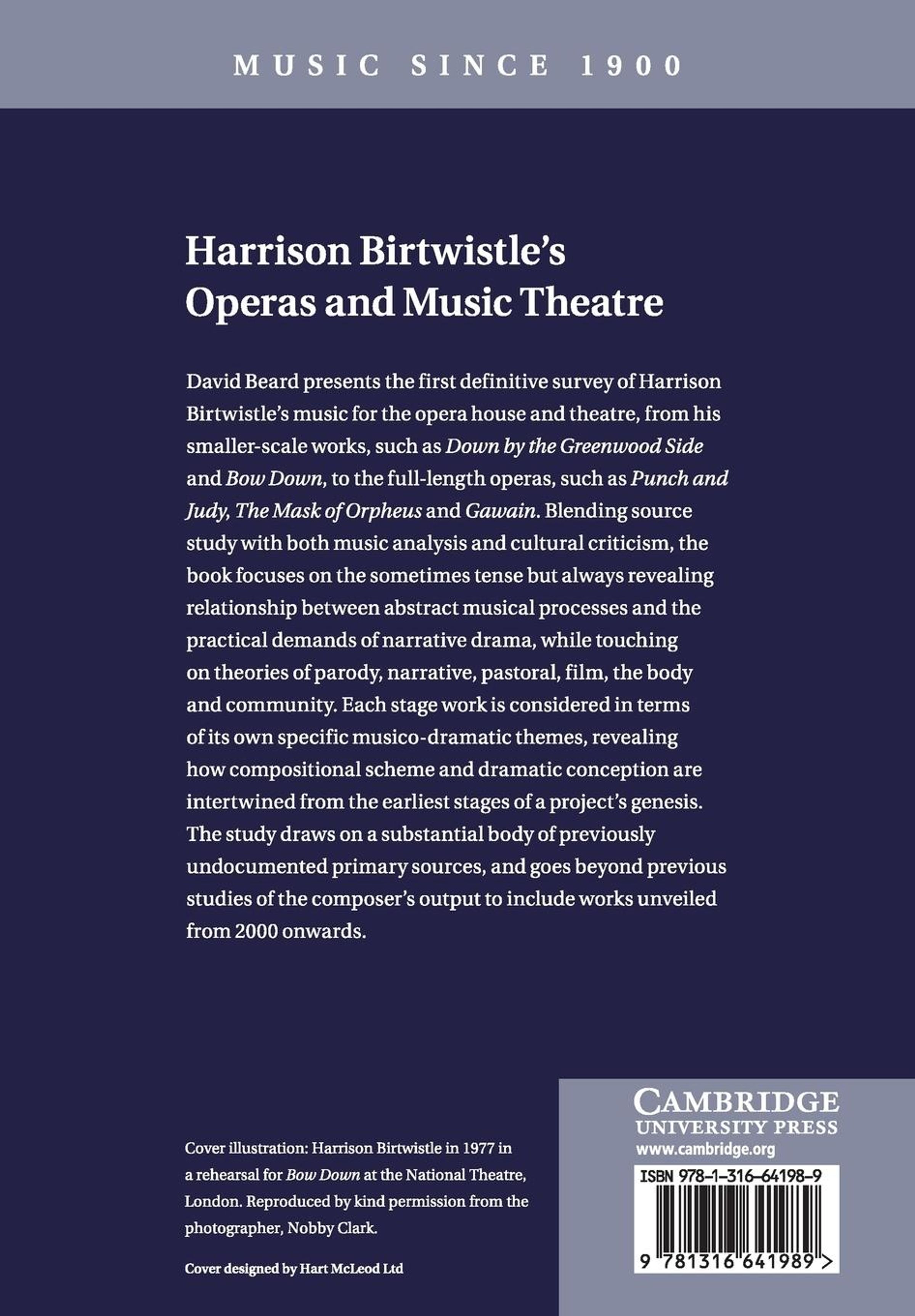 David Beard presents the first definitive survey of Harrison Birtwistle's music for the opera house and theatre, from his smaller-scale works, such as Down by the Greenwood Side and Bow Down, to the full-length operas, such as Punch and Judy, The Mask of Orpheus and Gawain. Blending source study with both music analysis and cultural criticism, the book focuses on the sometimes tense but always revealing relationship between abstract musical processes and the practical demands of narrative drama, while touching on theories of parody, narrative, pastoral, film, the body and community. Each stage work is considered in terms of its own specific musico-dramatic themes, revealing how compositional scheme and dramatic conception are intertwined from the earliest stages of a project's genesis. The study draws on a substantial body of previously undocumented primary sources and goes beyond previous studies of the composer's output to include works unveiled from 2000 onwards.