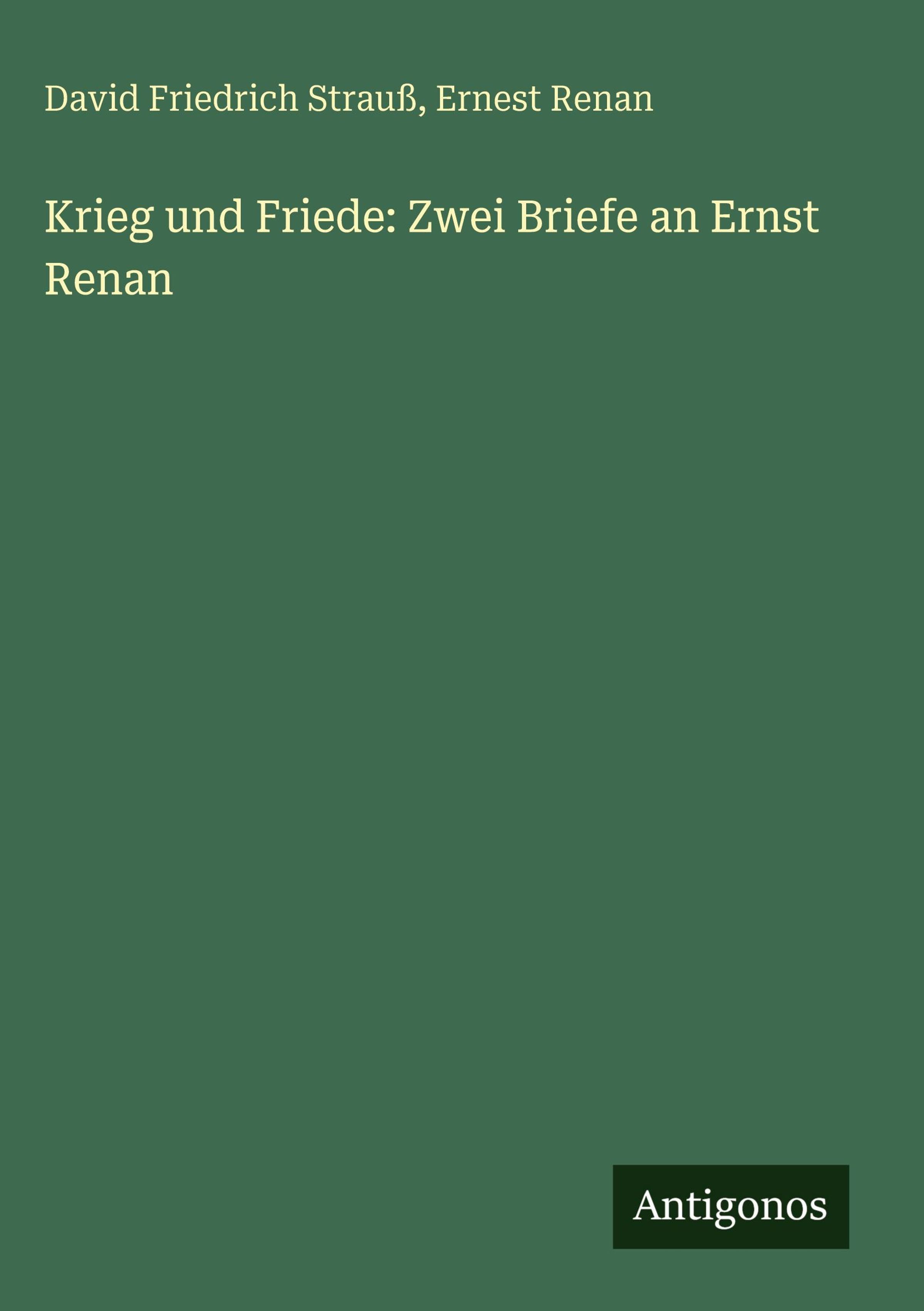 David Friedrich Strauß: Krieg und Friede: Zwei Briefe an Ernst Renan, Gebunden