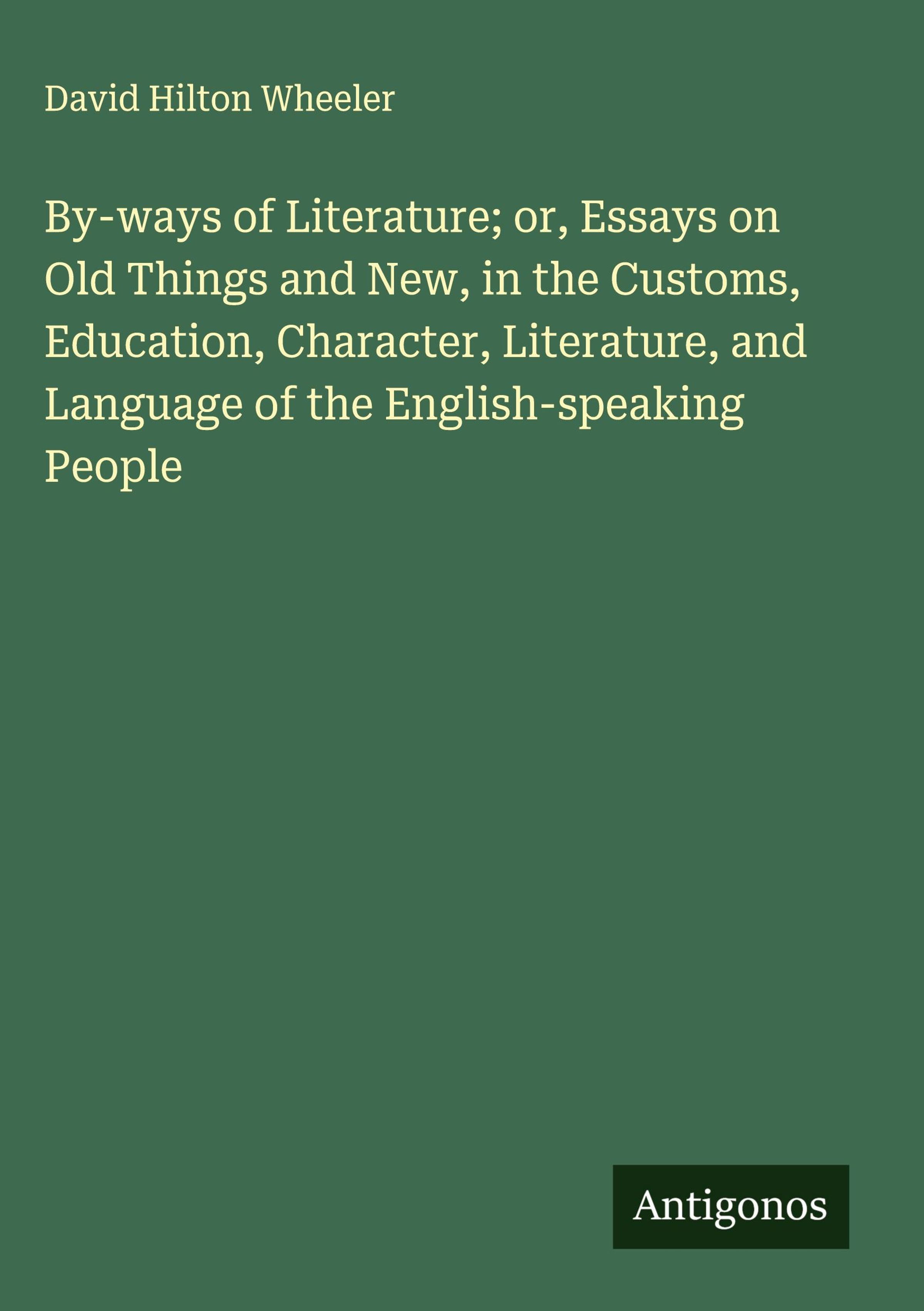 David Hilton Wheeler: By-ways of Literature; or, Essays on Old Things and New, in the Customs, Education,..., Gebunden