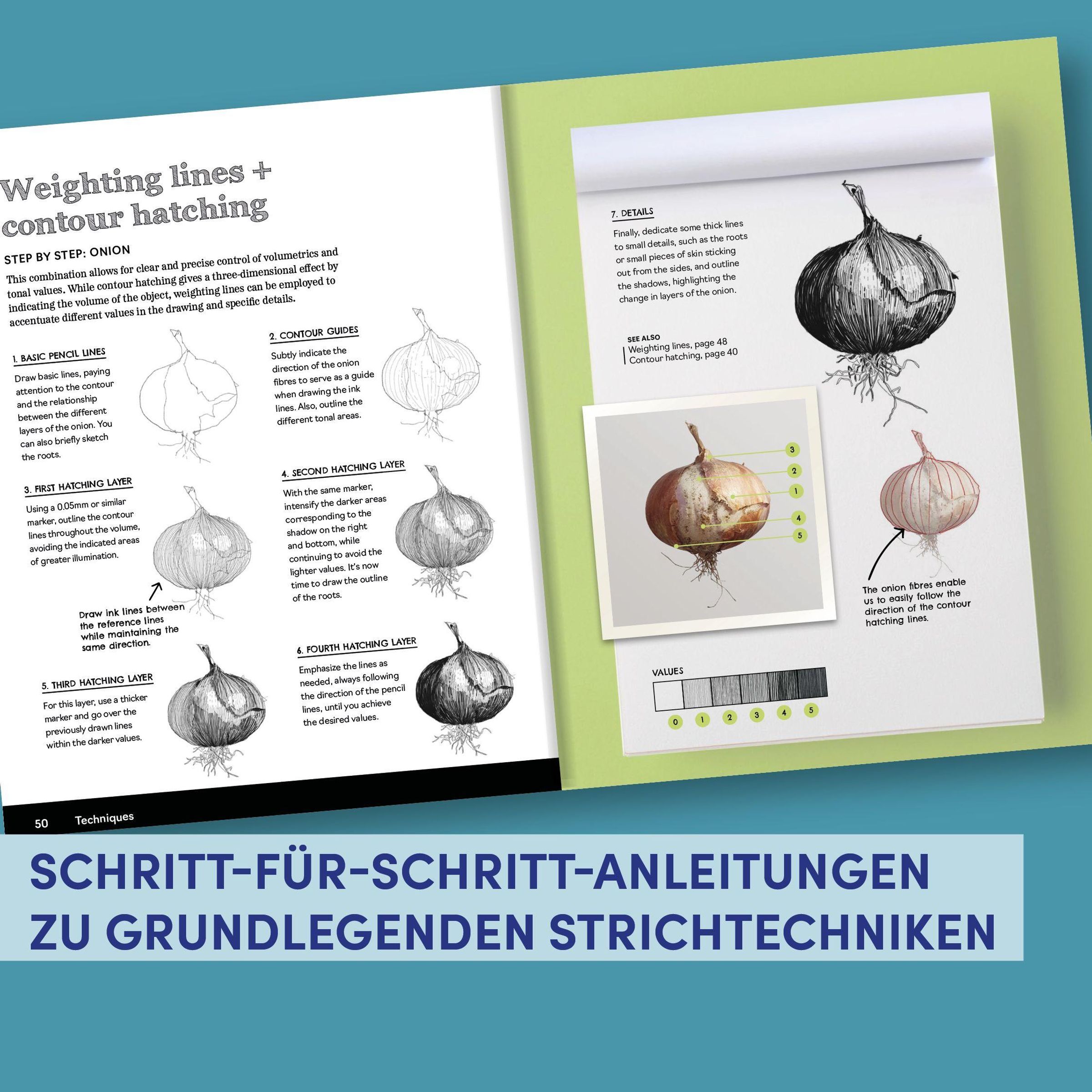 - Schritt-für-Schritt-Anleitungen zu grundlegenden Strichtechniken