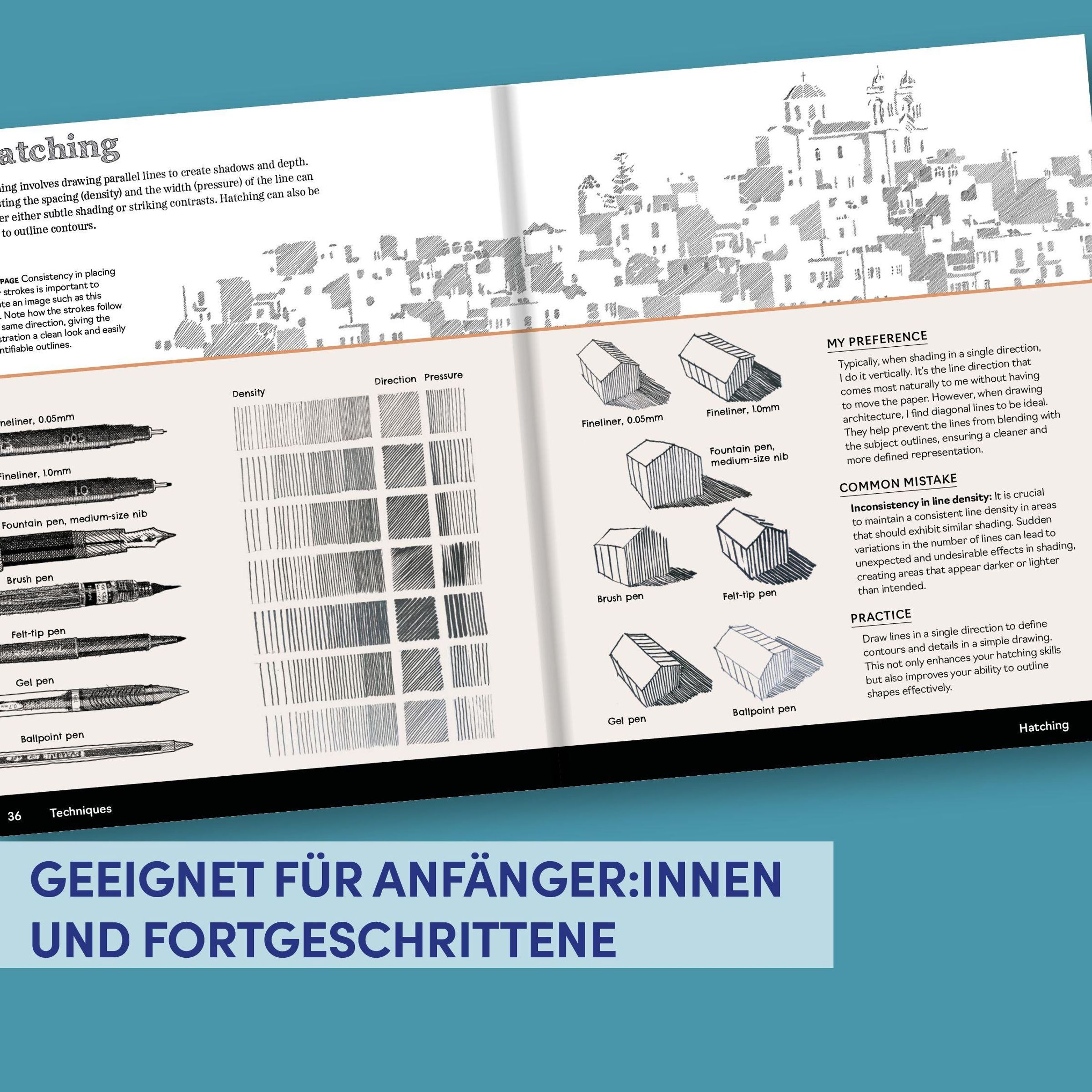 Tauche ein in die faszinierende Welt des Zeichnens mit Tinte! Dieses Buch ist dein idealer Begleiter - egal, ob du gerade erst mit dem Zeichnen beginnst oder deine Technik weiter perfektionieren möchtest. Der erfahrene Architekt und Künstler David Morales teilt sein Wissen, seine Leidenschaft und zahlreiche Profi-Tipps , mit denen du Motive von Stillleben über Landschaften bis hin zu Tieren und Menschen sicher und lebendig aufs Papier bringst. Entdecke bewährte Strichtechniken vom Schraffieren übers Tüpfeln und Stricheln bis hin zum Scribbeln und lerne, wie du Tonwerte, Kontraste und Texturen gezielt einsetzt.