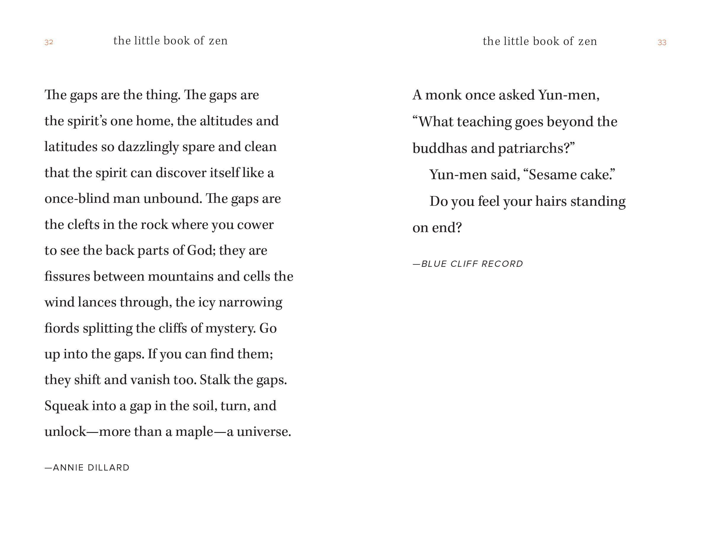 Updated, revised, with a new cover, new trim size, and illustrations throughout, the national bestseller The Little Zen Companion, with 516, 000 copies in print, is repackaged for a new generation of seekers as The Little Book of Zen. A perfect gift and book of discovery, its maverick spirit celebrates ideas drawn from Zen Buddhism that have tremendous currency today: mindfulness, meditation, compassion, paying attention to the here and now, and finding a deeper meaning in life. While it seeks neither to define Zen nor answer its most famous koan ("What is the sound of one hand clapping??), The Little Book of Zen points to a calming way of looking at the world. Each page features a quote, phrase, story, koan, haiku, or poem, interspersed with essays on the Buddha, Zen arts, significant masters, and more. The feeling is that of a meditation book with 2, 500 years of wisdom?from Lao-tzu to Lily Tomlin. It's a celebration of intuition: "If a man wishes to be sure of the road he treads on, he must close his eyes and walk in the dark.??St. John the Cross. Individuality: "Do not seek to follow in the footsteps of the men of old; seek what they sought.??Basho. And self-discovery: "We already have everything we need.??Pema Cho¿dro¿n. New material is taken from contemporary spiritual leaders, writers, meditation teachers, and others with an emphasis on the practice of mindfulness?on the heart, rather than the head. Pen and ink illustrations from the author bring an additional layer of feeling and beauty.