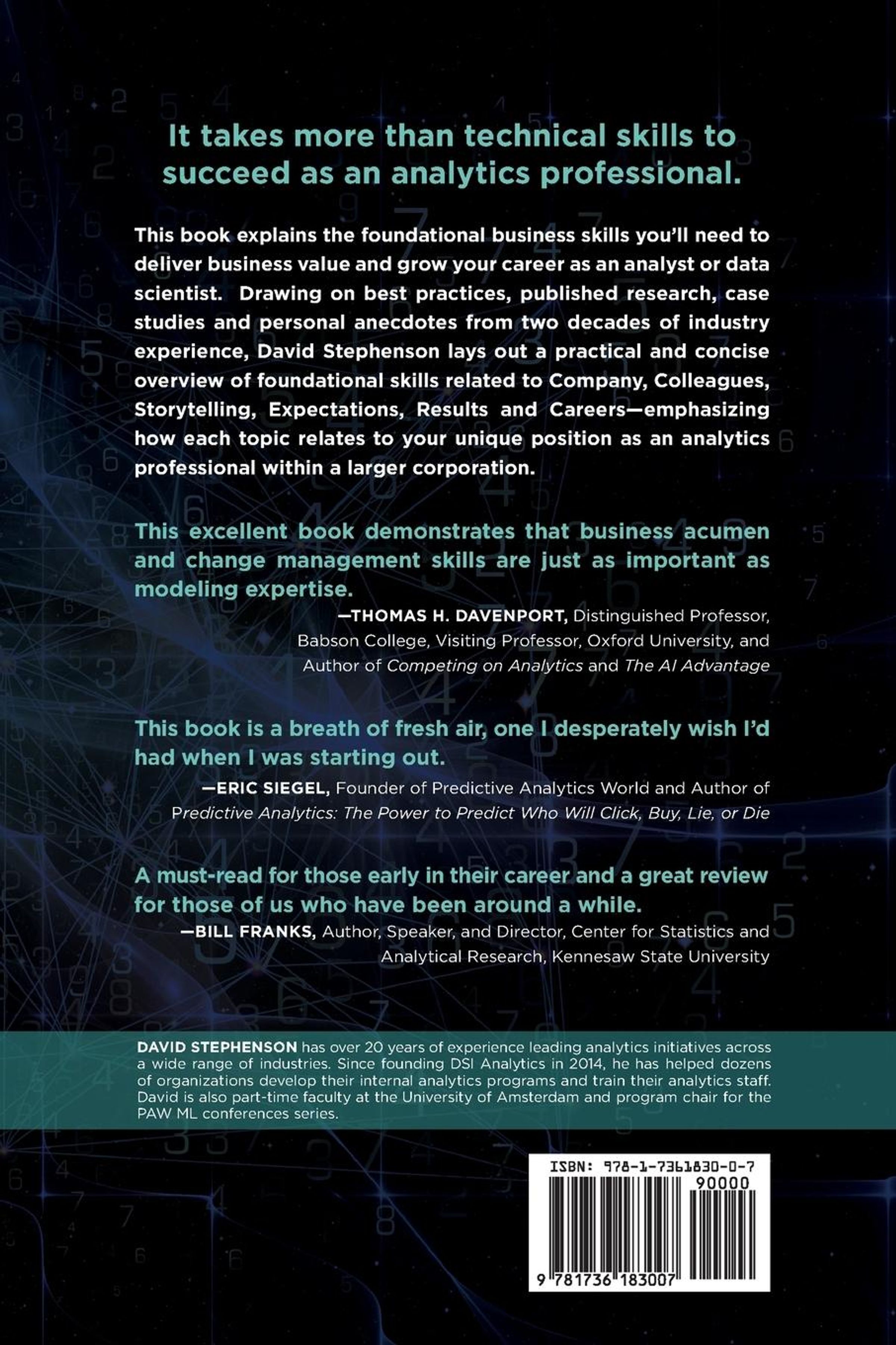 This book explains the foundational business skills you'll need to deliver business value and grow your career as an analyst or data scientist. Drawing on best practices, published research, case studies and personal anecdotes from two decades of industry experience, David Stephenson lays out a practical and concise overview of foundational skills related to Company, Colleagues, Storytelling, Expectations, Results and Careers--emphasizing how each topic relates to your unique position as an analytics professional within a larger corporation.