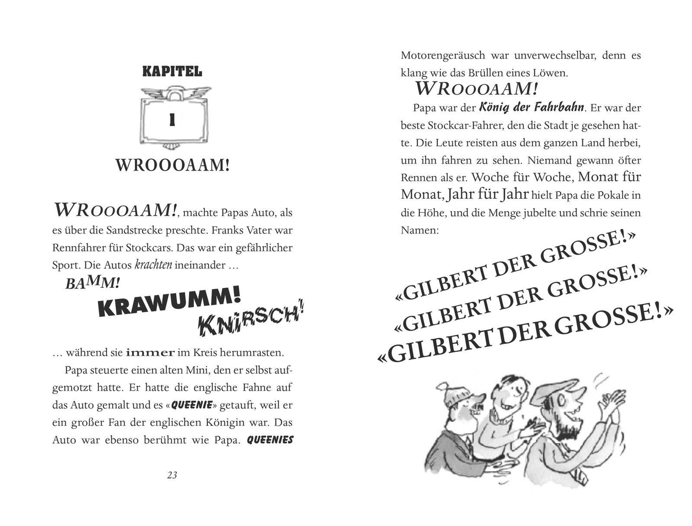 Papas gibt es in allen Formen und Größen - es gibt dicke und dünne, große und kleine, dumme und schlaue, laute und leise Papas. Aber keiner ist so wie Franks Papa Gilbert. Denn der ist ein berühmter Rennfahrer, der König der Straße, der Champion der Rennstrecke, von allen nur Gilbert der Große genannt! Doch nach einem schlimmen Unfall ist alles anders: Papa darf keine Rennen mehr fahren, und auf einmal sind Frank und Gilbert arm. Nachdem sie alle Möbel verpfändet haben, beschließt Papa in seiner Verzweiflung, das Fluchtauto bei einem Raubüberfall zu fahren, den der schreckliche Verbrecherboss Mr. Big und seine trotteligen Helfer Finger und Däumling planen. Doch er hat nicht mit seinem Sohn gerechnet: Frank ist wild entschlossen, seinen Vater davon abzuhalten, ein Banditen-Papa zu werden!