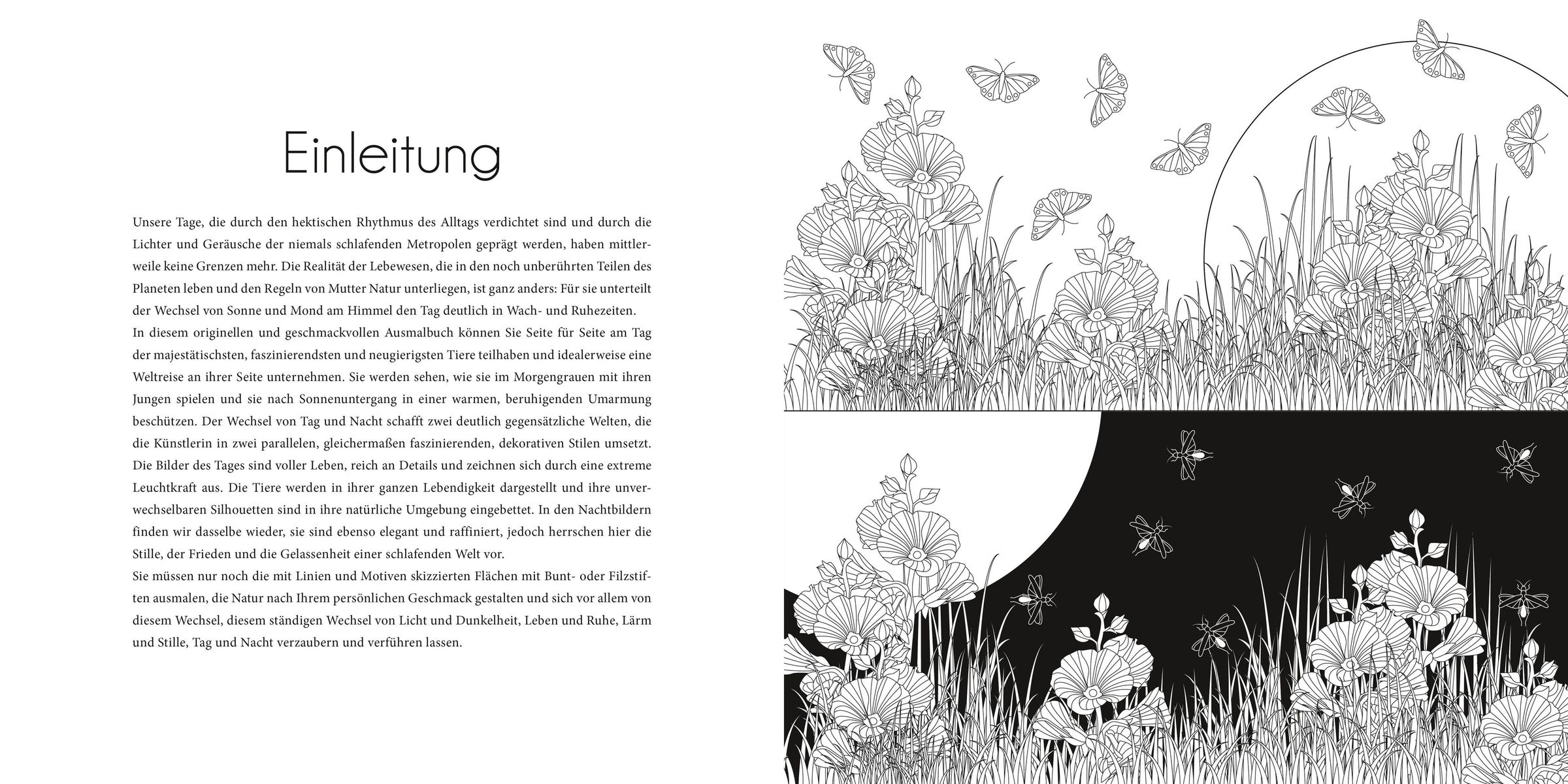 Tauche ein in die Schönheit der Natur und finde Ruhe und Balance. Day & Night ist ein besonders edles Ausmalbuch, das dich mit stimmungsvollen Landschaften und detailreichen Tierzeichnungen auf eine visuelle Reise entführt - aus dem Tag in die Nacht. Jede Seite ist eine Einladung zum Entschleunigen, zur kreativen Entfaltung und zum Wiederfinden der natürlichen Rhythmen des Lebens. Die Originalillustrationen von Sara Muzio und hochwertiges, festes Papier machen dieses Buch zum idealen Begleiter für alle, die gerne zeichnen, entspannen und die Vielfalt der Natur entdecken.