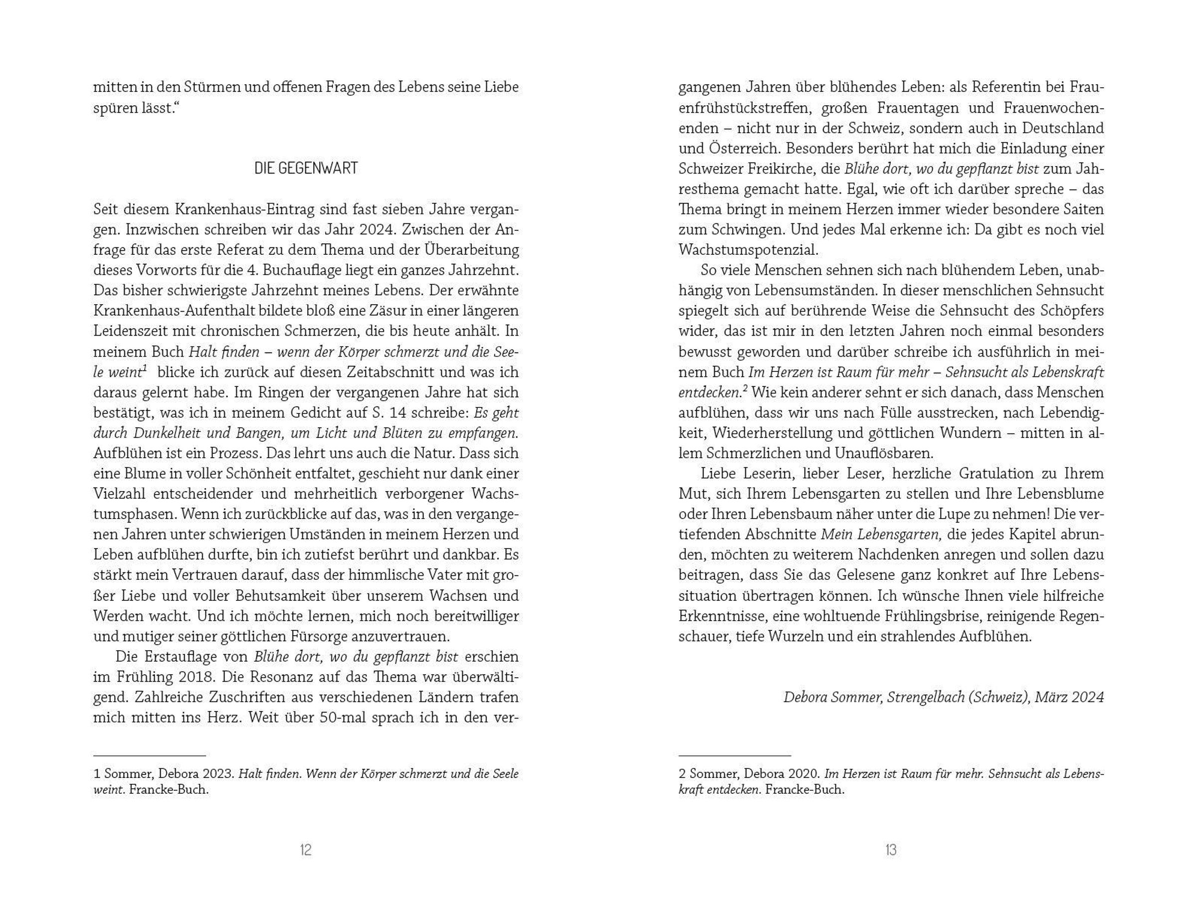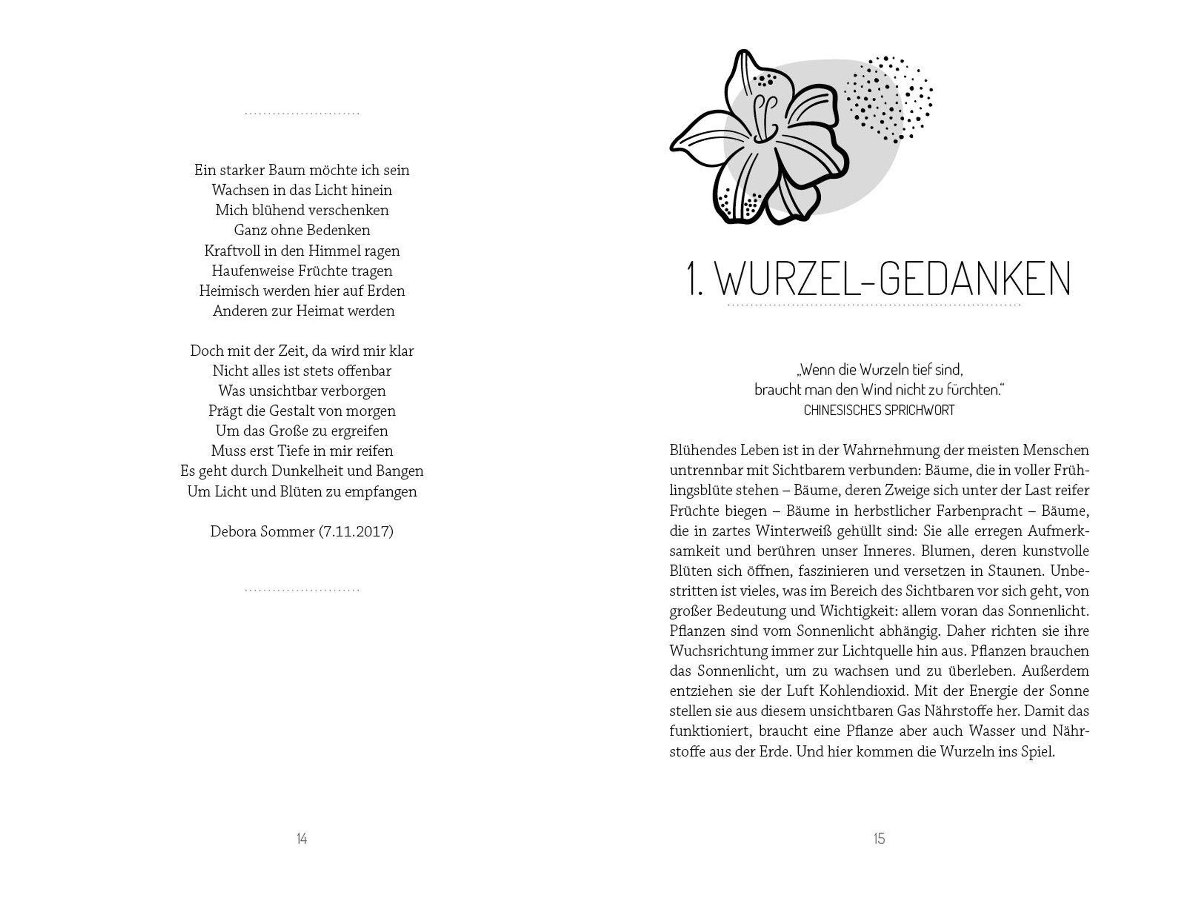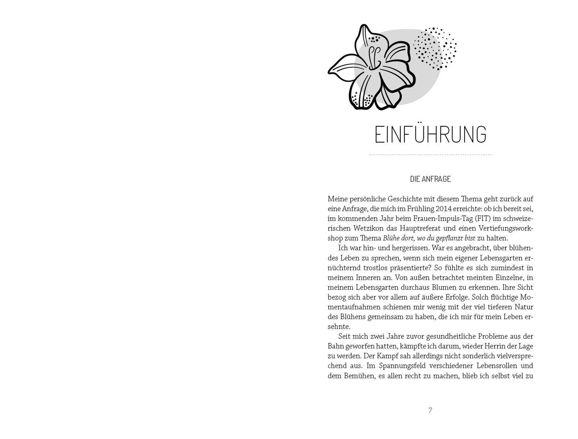 Debora Sommer hat sich aufgemacht, dem Geheimnis blühenden Lebens auf die Spur zu kommen. Wieso gelingt es manchen Menschen, trotz schwierigster Lebensumstände zu blühen, während andere daran kaputtgehen? Warum schielen wir so oft sehnsüchtig auf die Lebensgärten anderer? Die gute Nachricht ist: Blühendes Leben ist jederzeit möglich. Ungeachtet der Lebensumstände. Jeder kann dort, wo er gepflanzt ist, aufblühen und reiche Frucht bringen. Allerdings gibt es einige Faktoren, die das Blühen hindern, und andere, die es fördern. Welche das sind und wie eine gesunde Verwurzelung aussehen kann, die letztlich die entscheidende Voraussetzung für ein erneutes Aufblühen ist, zeigt Debora Sommer anhand vieler persönlicher Geschichten und praktischer Tipps einfühlsam auf. Fragen zum Weiterdenken helfen, das Gelesene ganz konkret auf die eigene Lebenssituation zu übertragen.