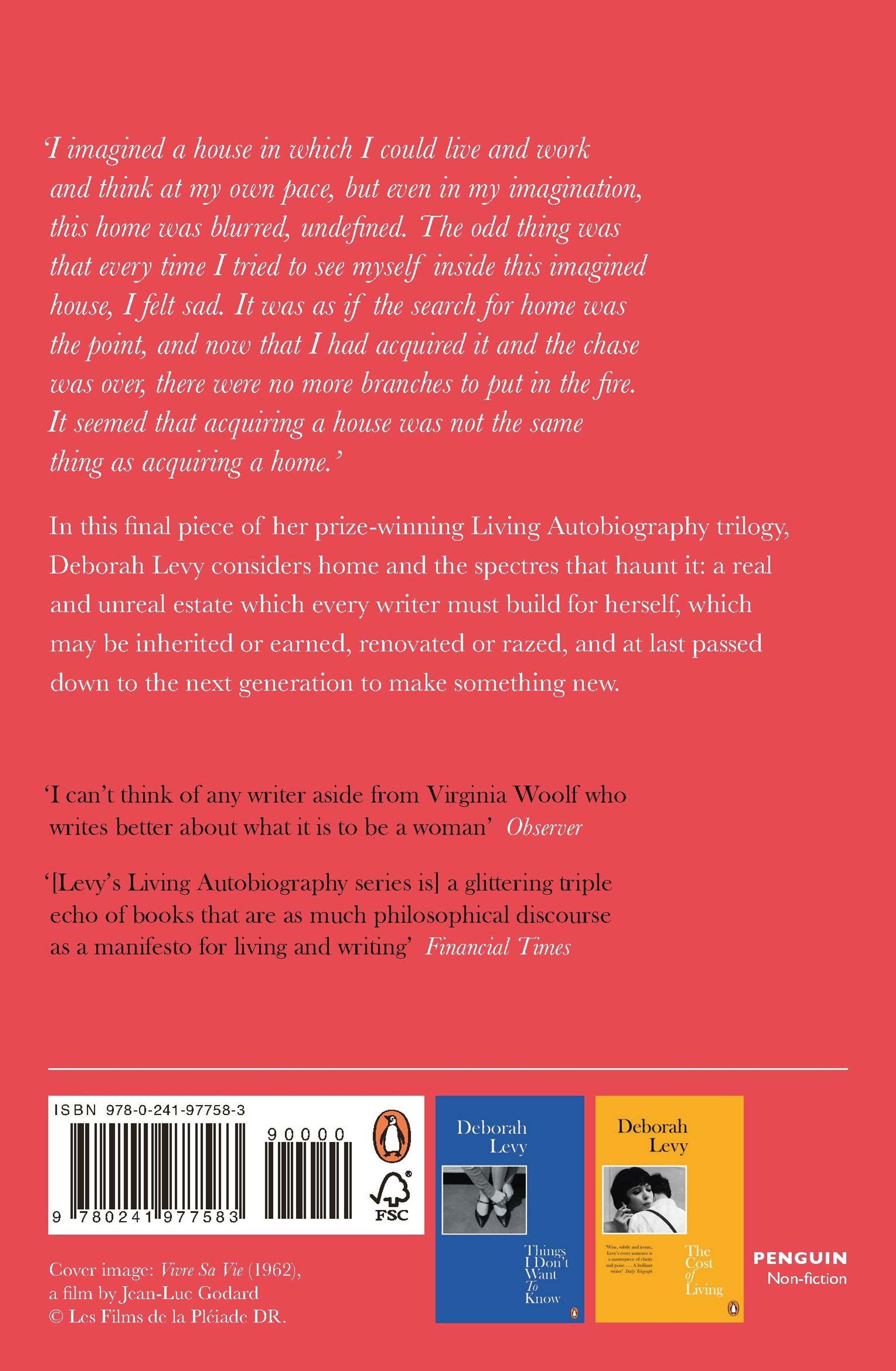 Following the critical acclaim of Things I Don't Want to Know and The Cost of Living , this final volume of Deborah Levy's 'Living Autobiography' is an exhilarating, thought-provoking and boldly intimate meditation on home and the spectres that haunt it.