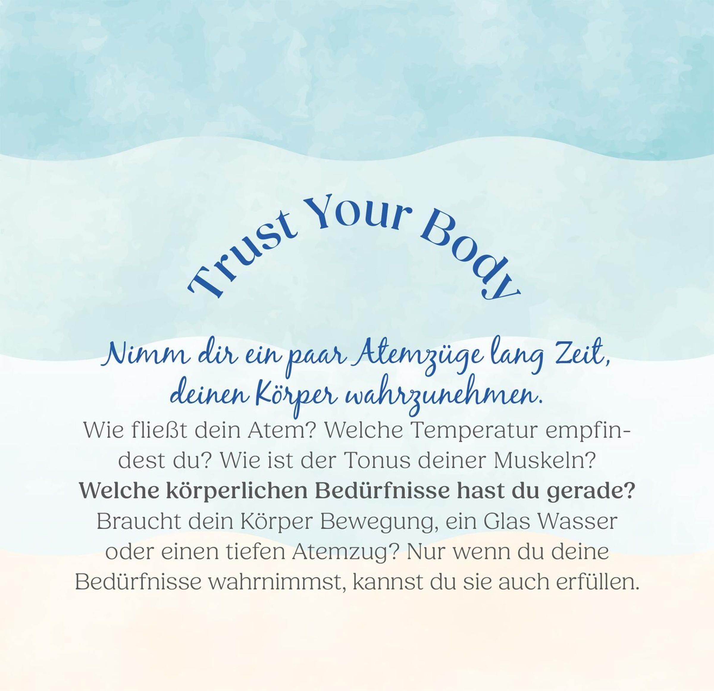 - **Wohltuende Inspirationen:**Von kleinen Achtsamkeitsübungen über Selbstmitgefühl bis hin zu stärkenden Affirmationen - entdecke, was dir guttut