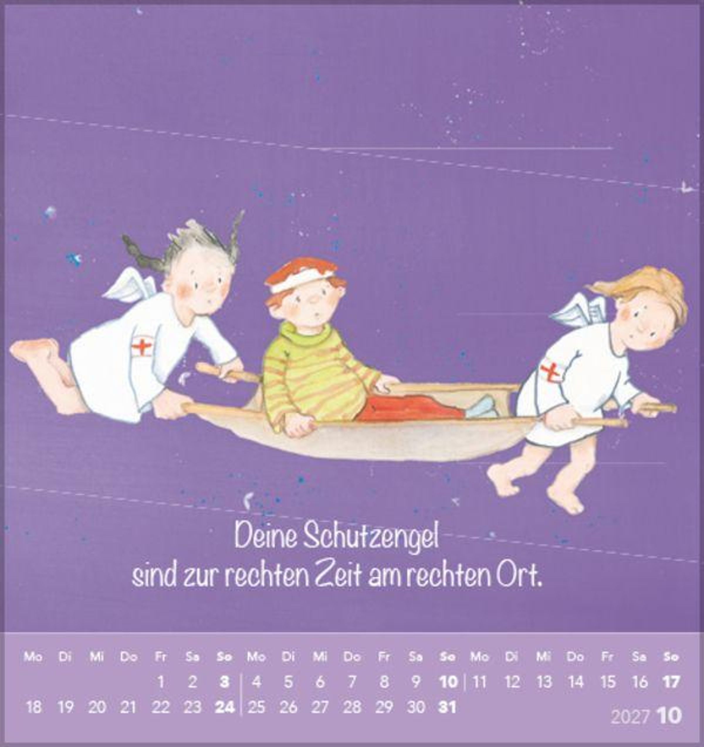 Aufstellbarer Postkartenkalender mit süßen Schutzengeln und netten Botschaften.