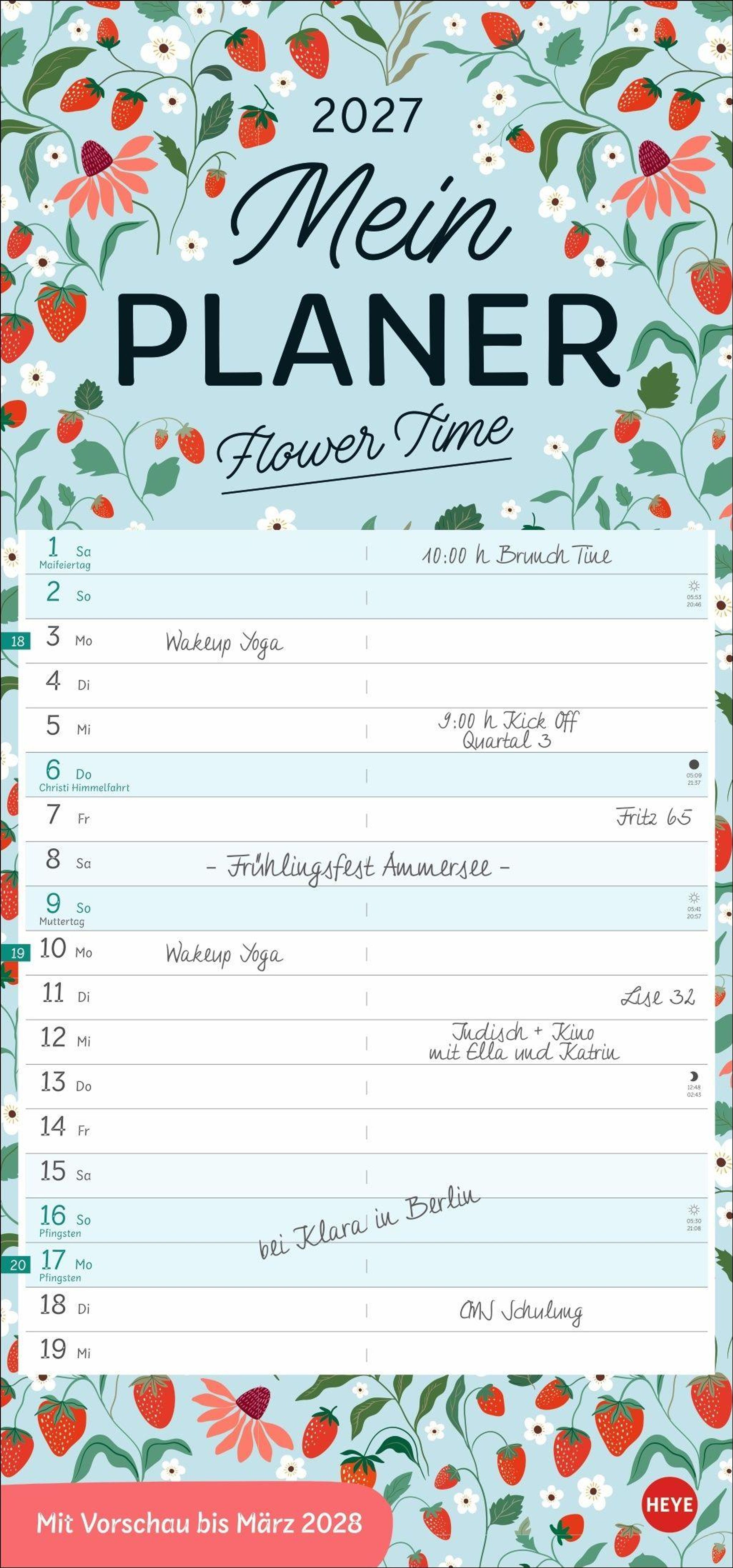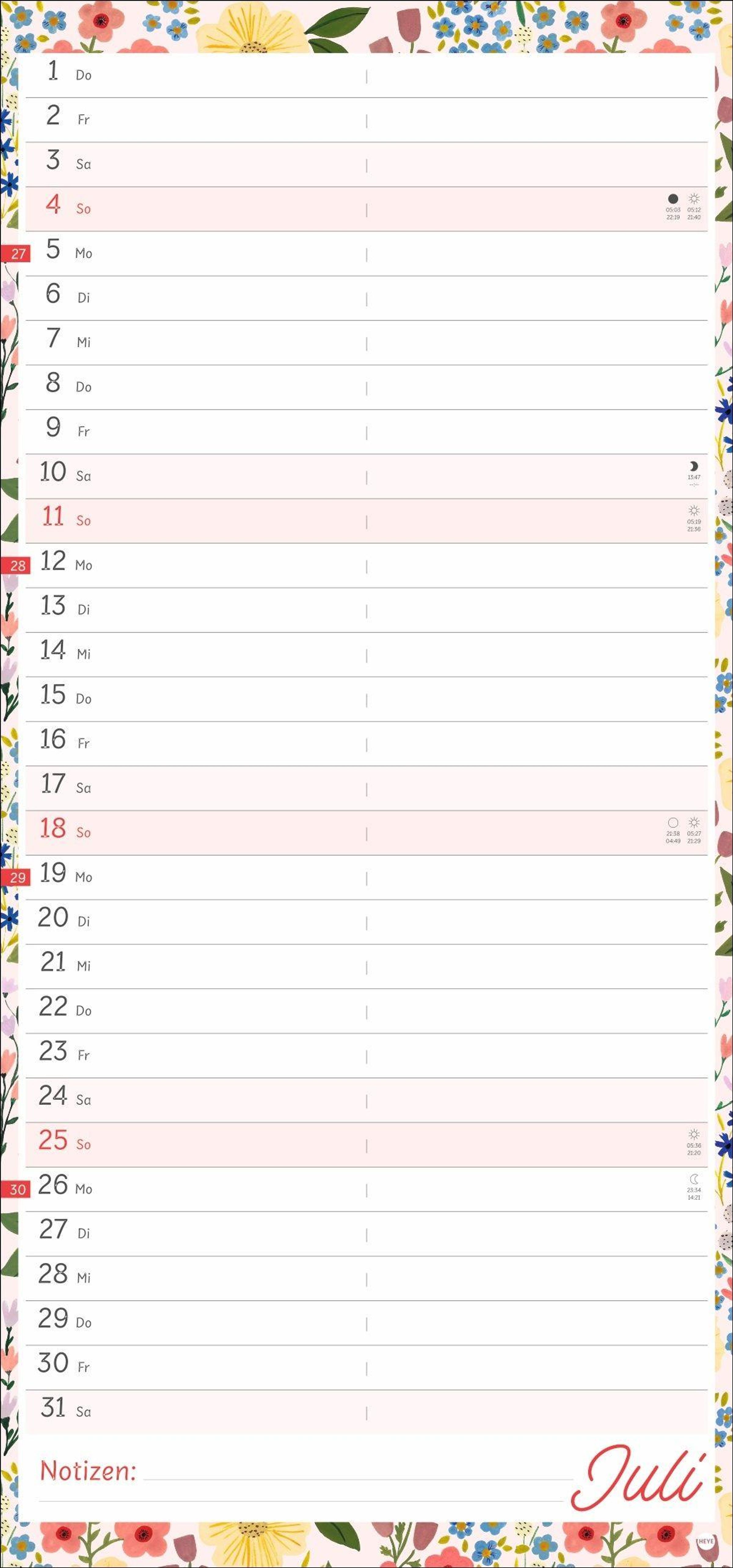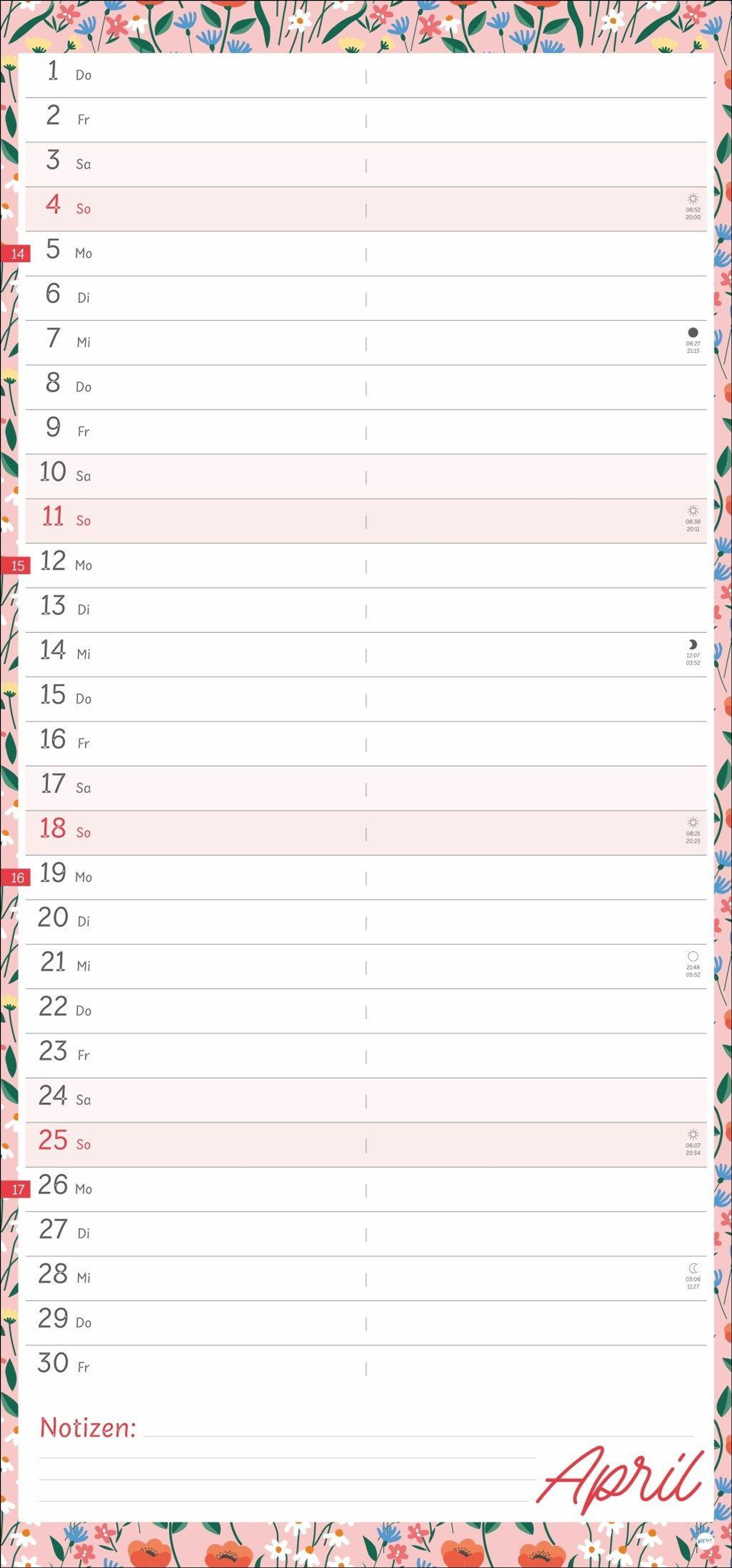 Gut geplant ist halb erledigt: Unser zweispaltiger Kalender 2027 im fröhlich-romantischen Design ist die perfekte Organisationshilfe!