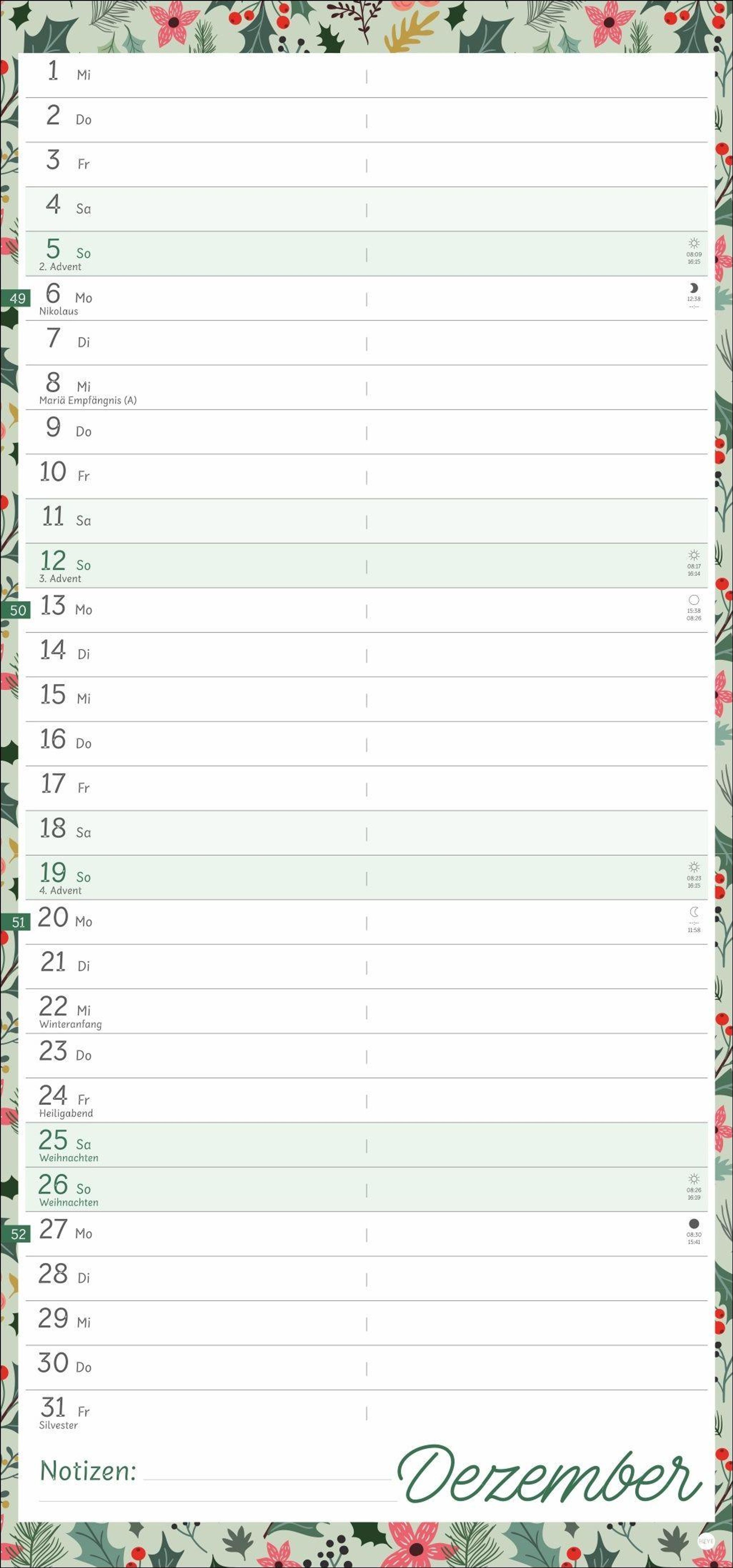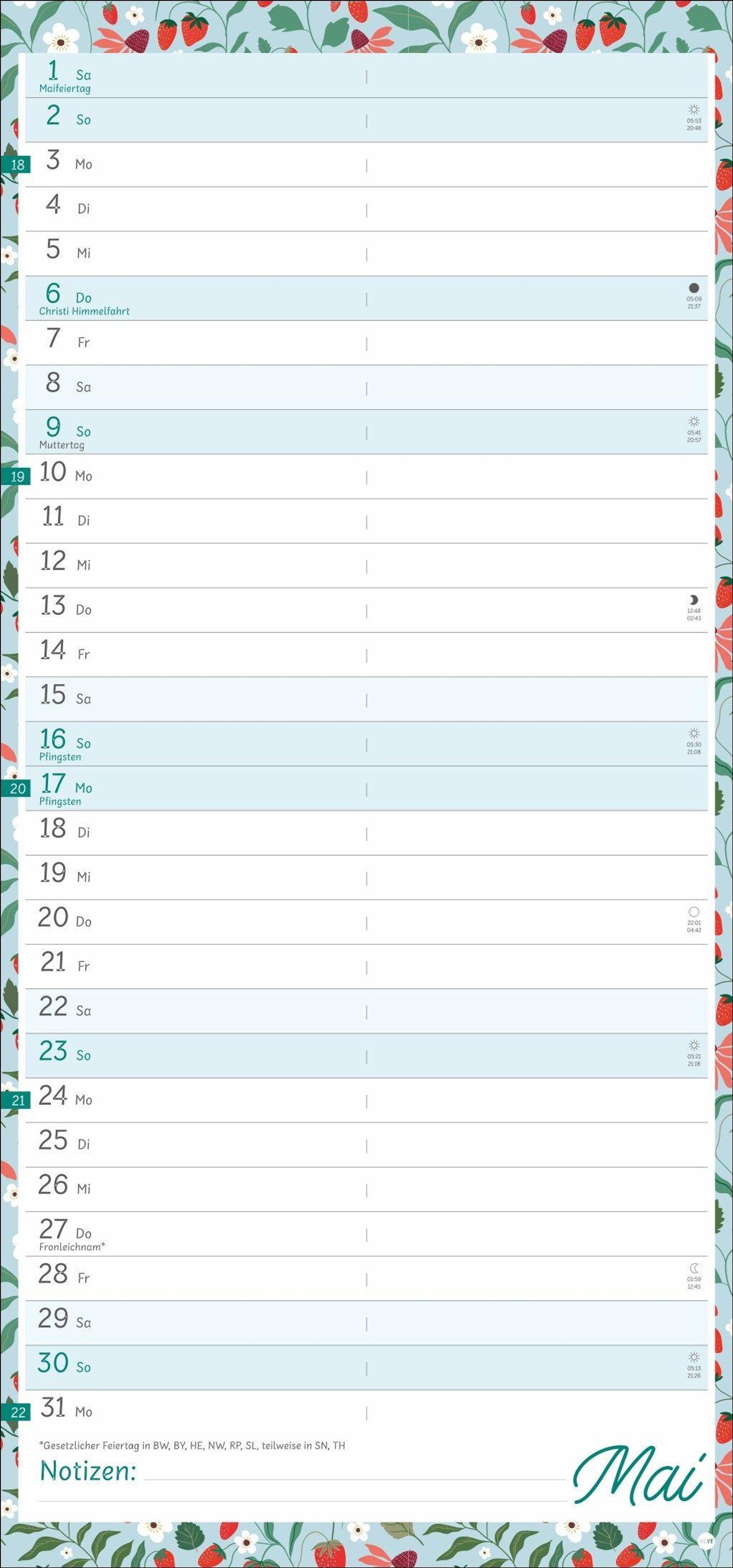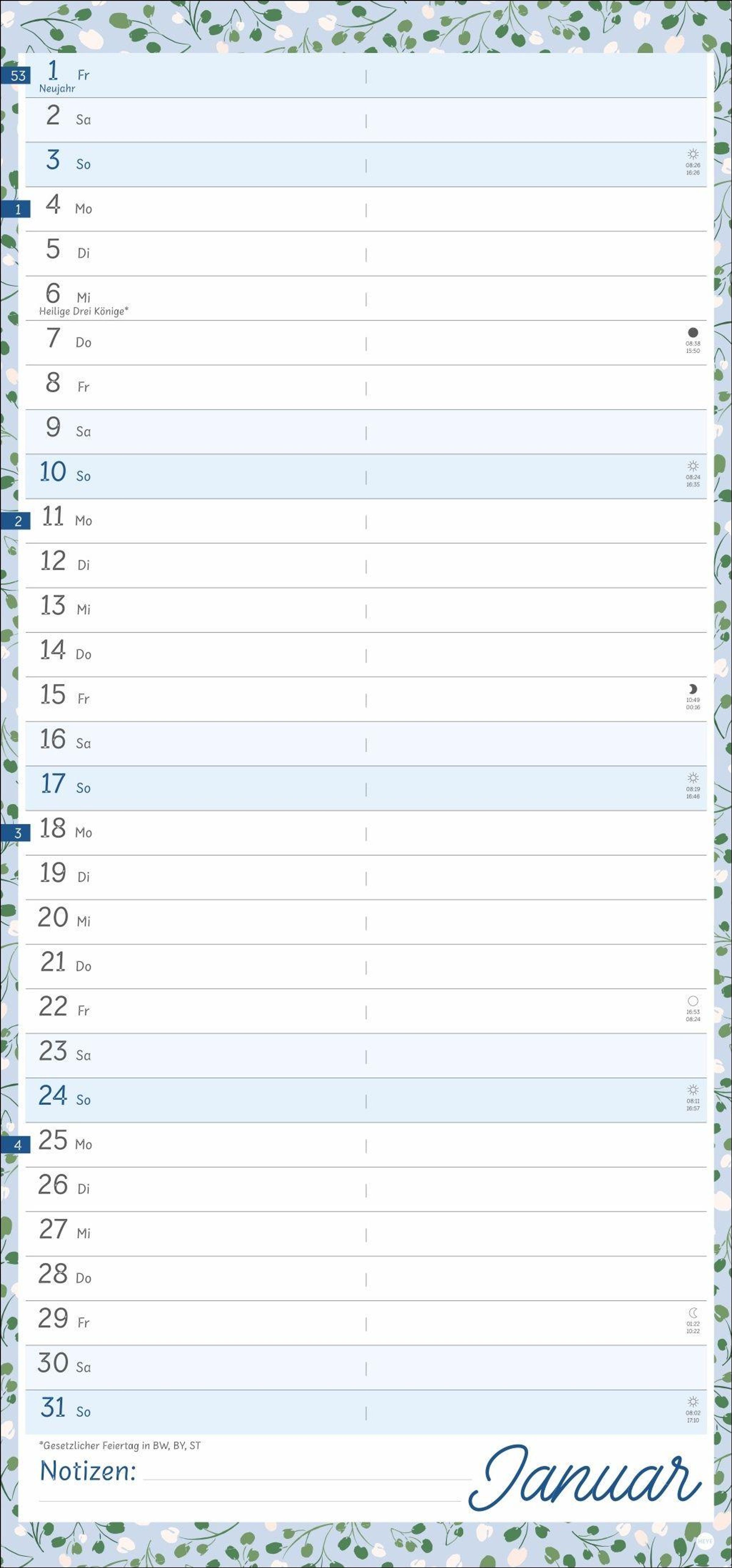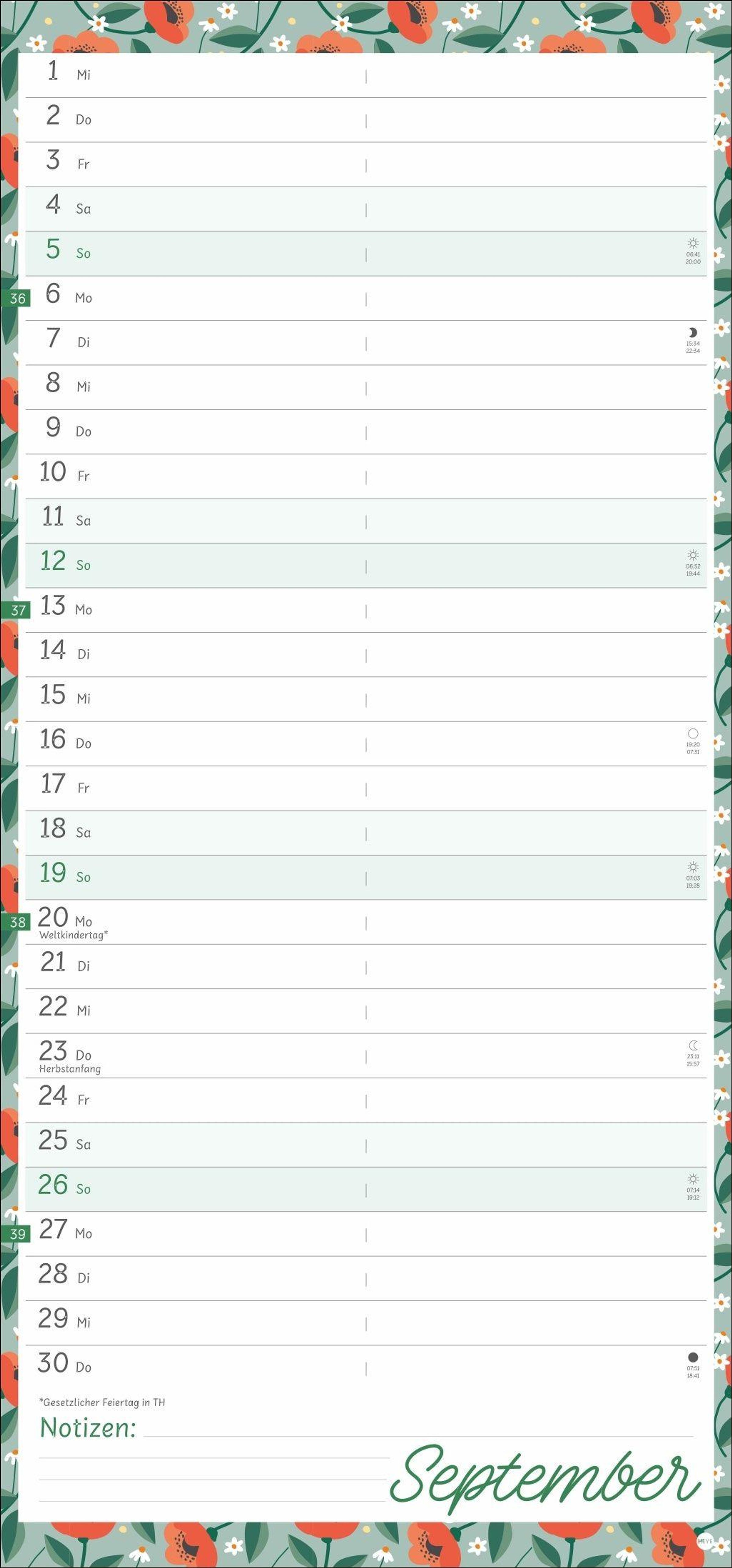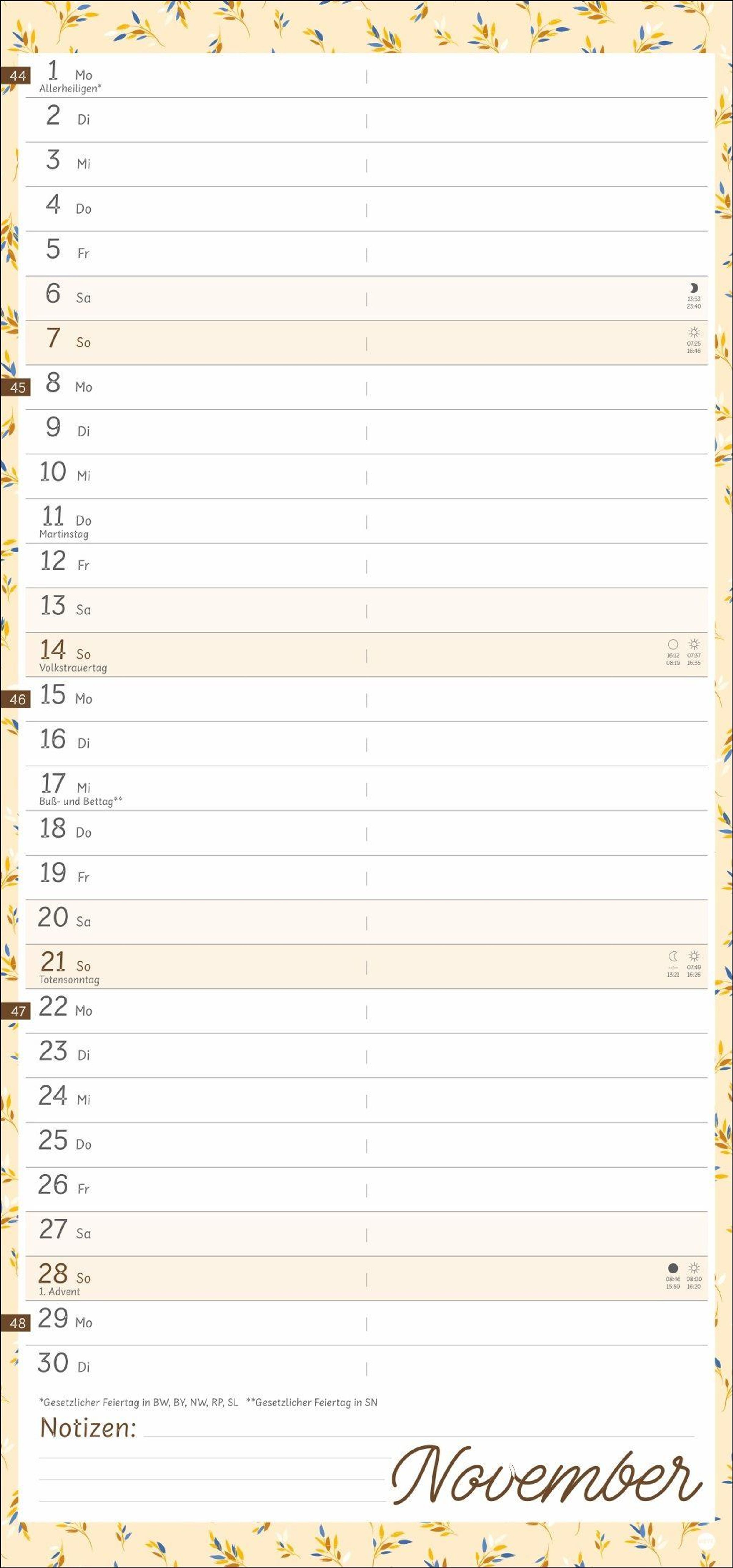 Viel Platz für Eintragungen und Notizen: Mit diesem Terminplaner im Format 21 x 45 cm behalten Sie immer den Überblick