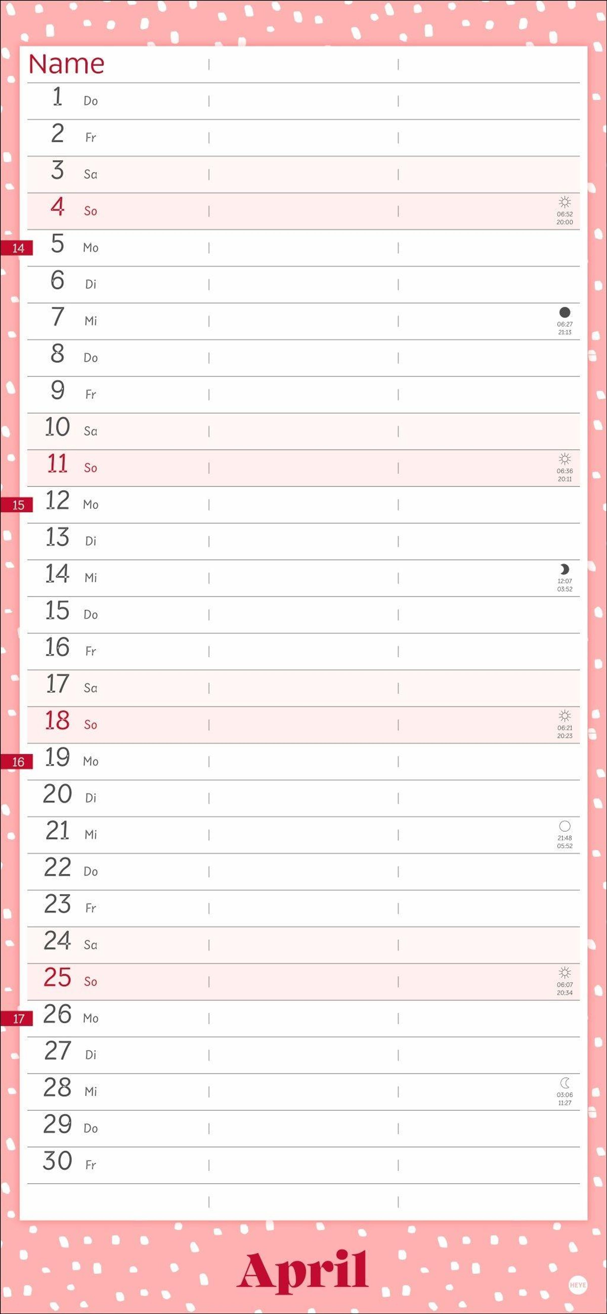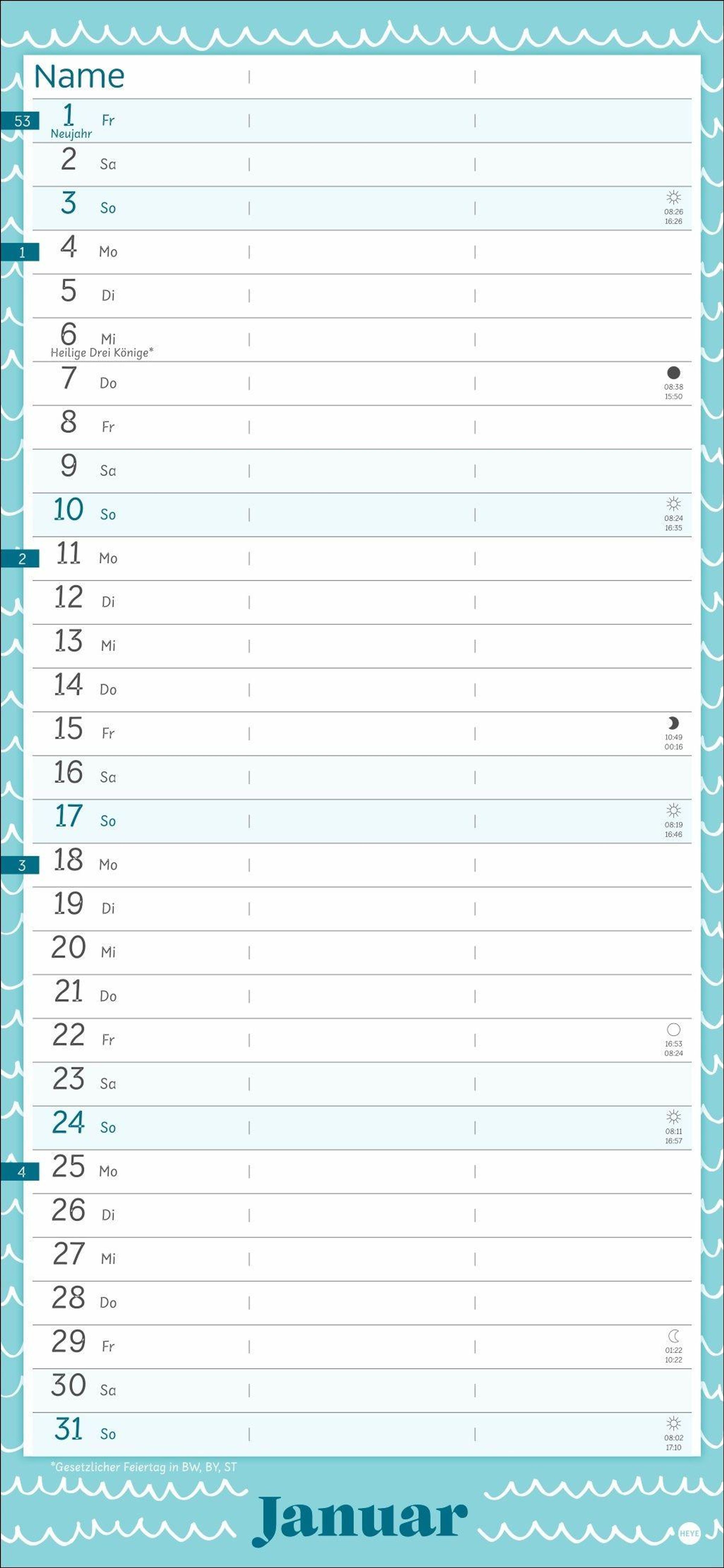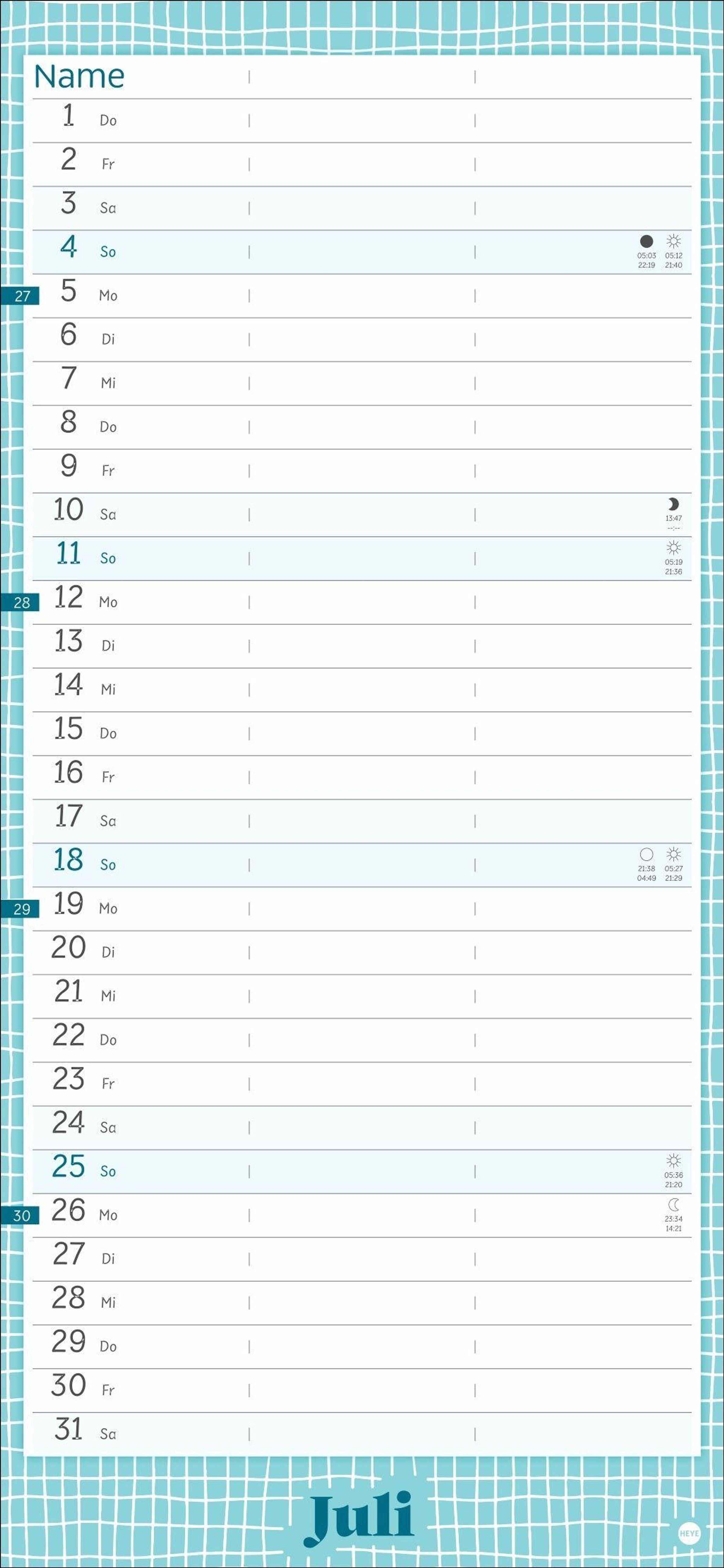 - Modern-minimalistisch mit grafischem Akzent: Schmaler Partnerkalender für gute Terminübersicht. Wandkalender 2027 für zwei im Format 16 x 34,7 cm