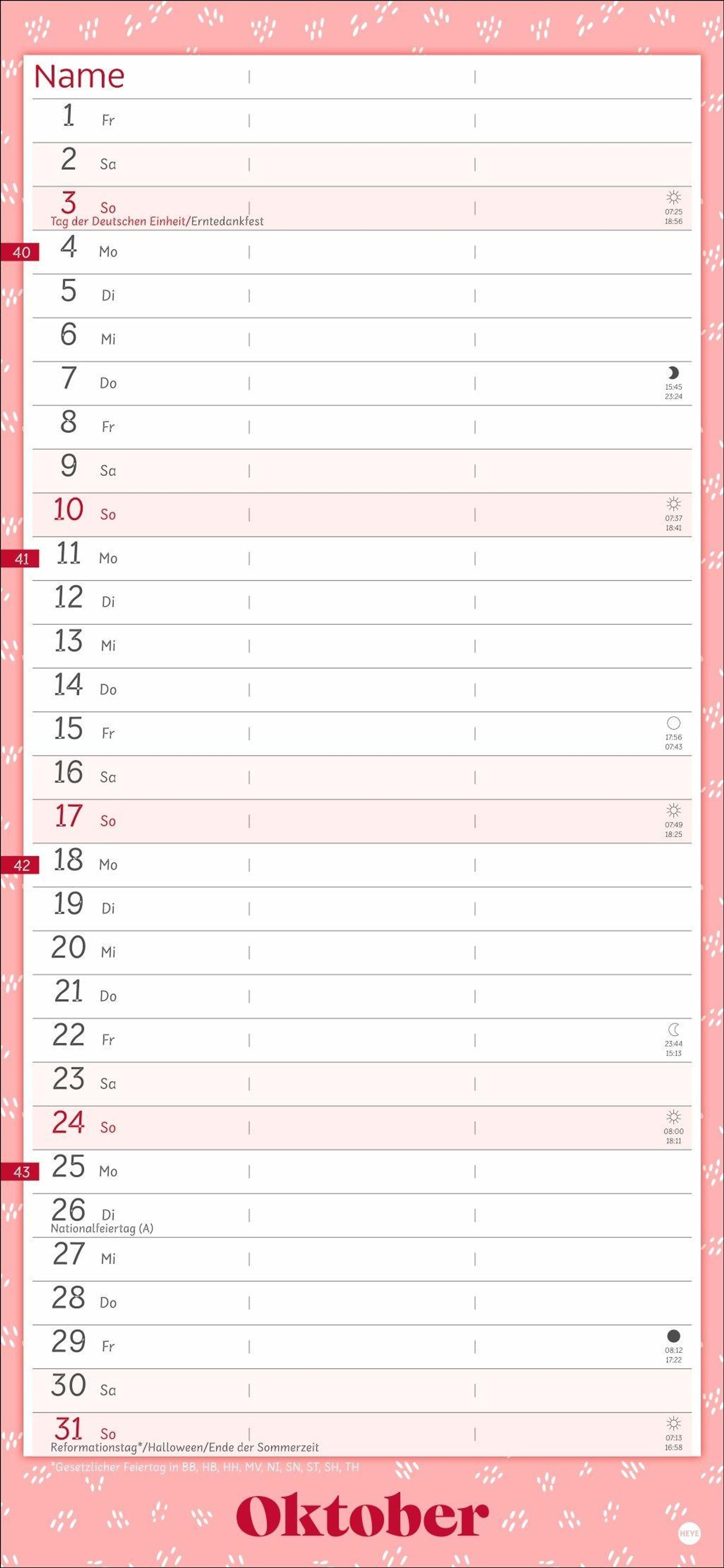 3 Spalten für maximale Übersicht: Die Organisationshilfe für Paare braucht wenig Platz, um alles Wichtige unterzubringen