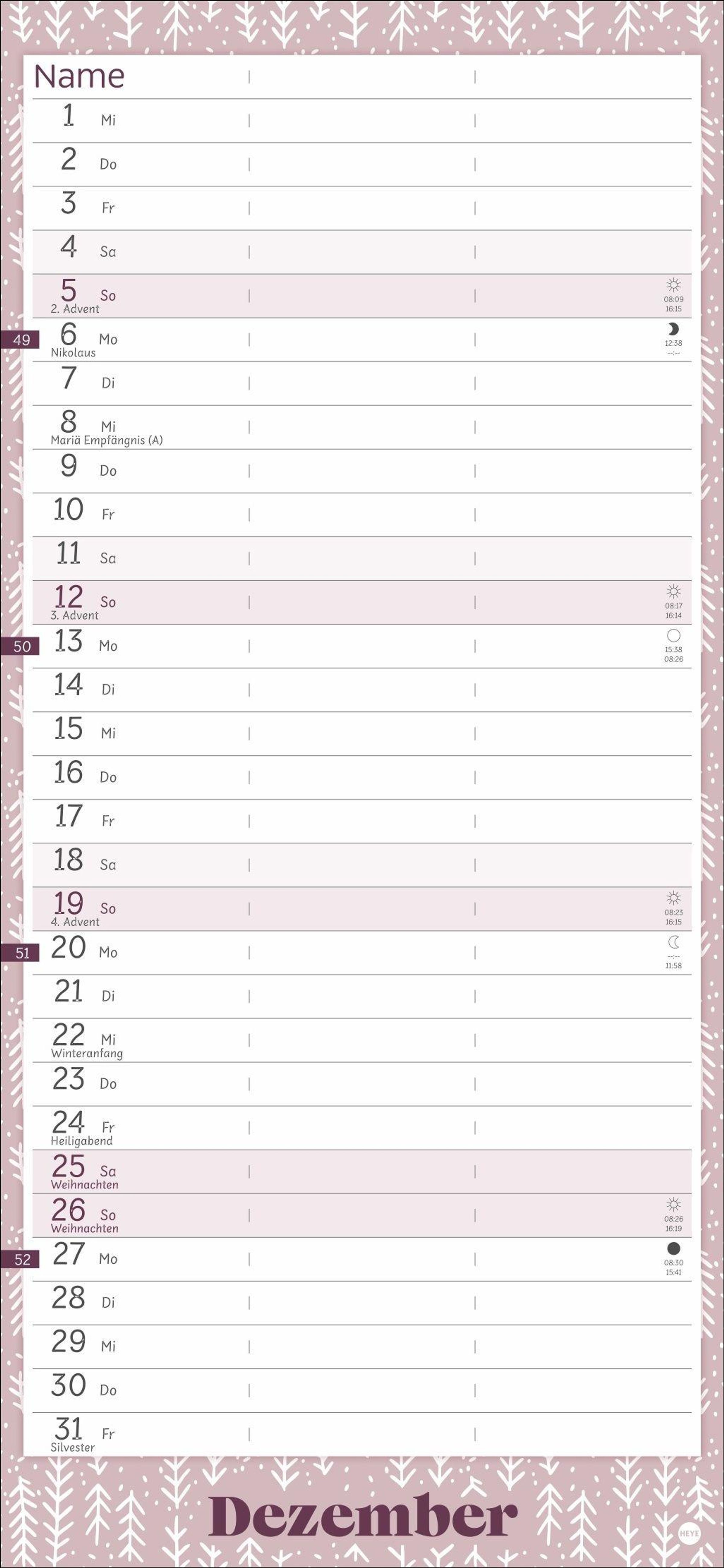 Macht sich dünn: Für den länglichen Kalender im Format 16 x 34, 7 cm findet sich immer ein Plätzchen