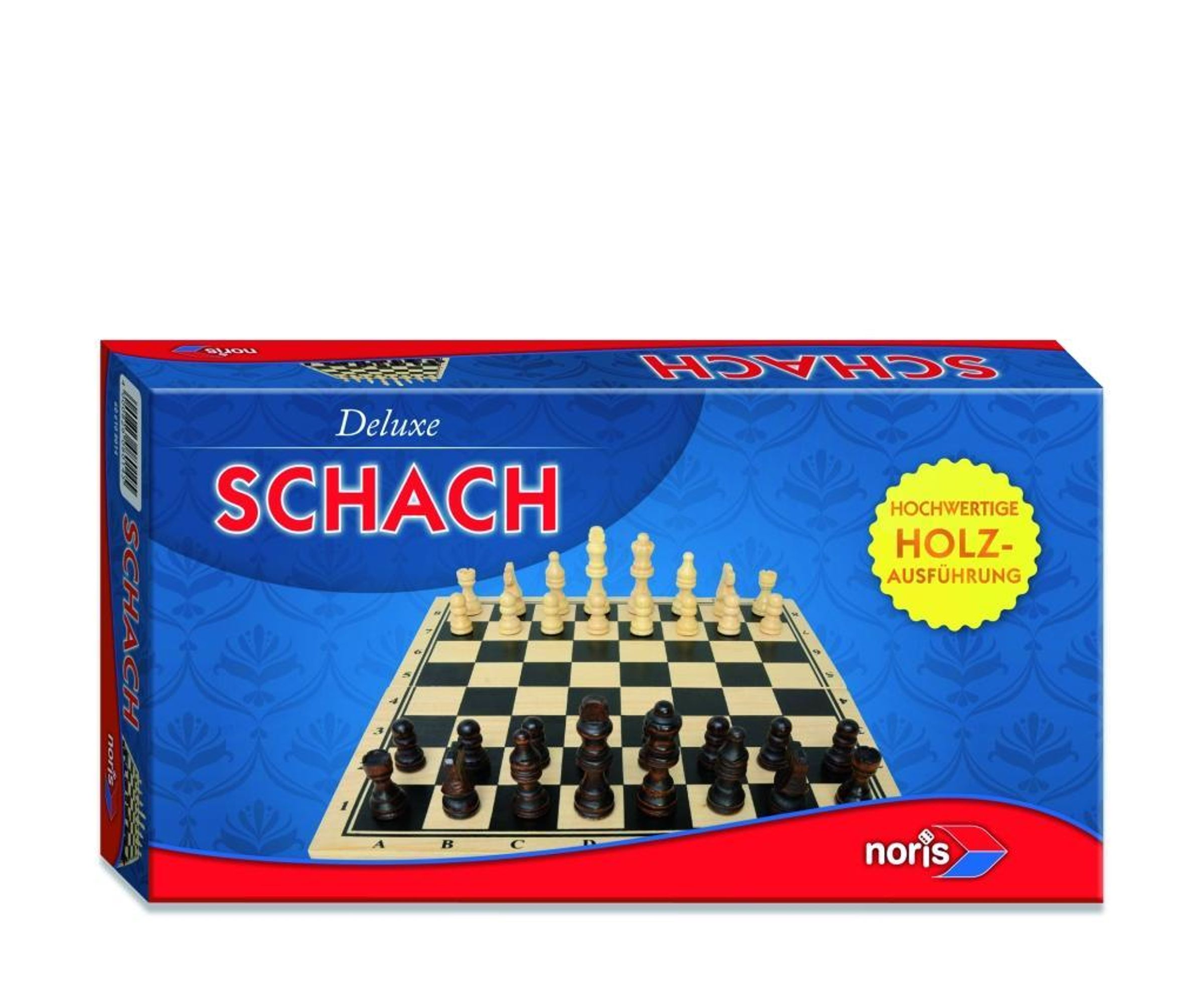 Spieleklassiker; Das Schachspiel in edler Holzausführung mit großen Holzfiguren bzw. Holzsteinen. Für 2 Spieler ab 6 Jahren. Sprachen: DE/ENG/IT/FRE