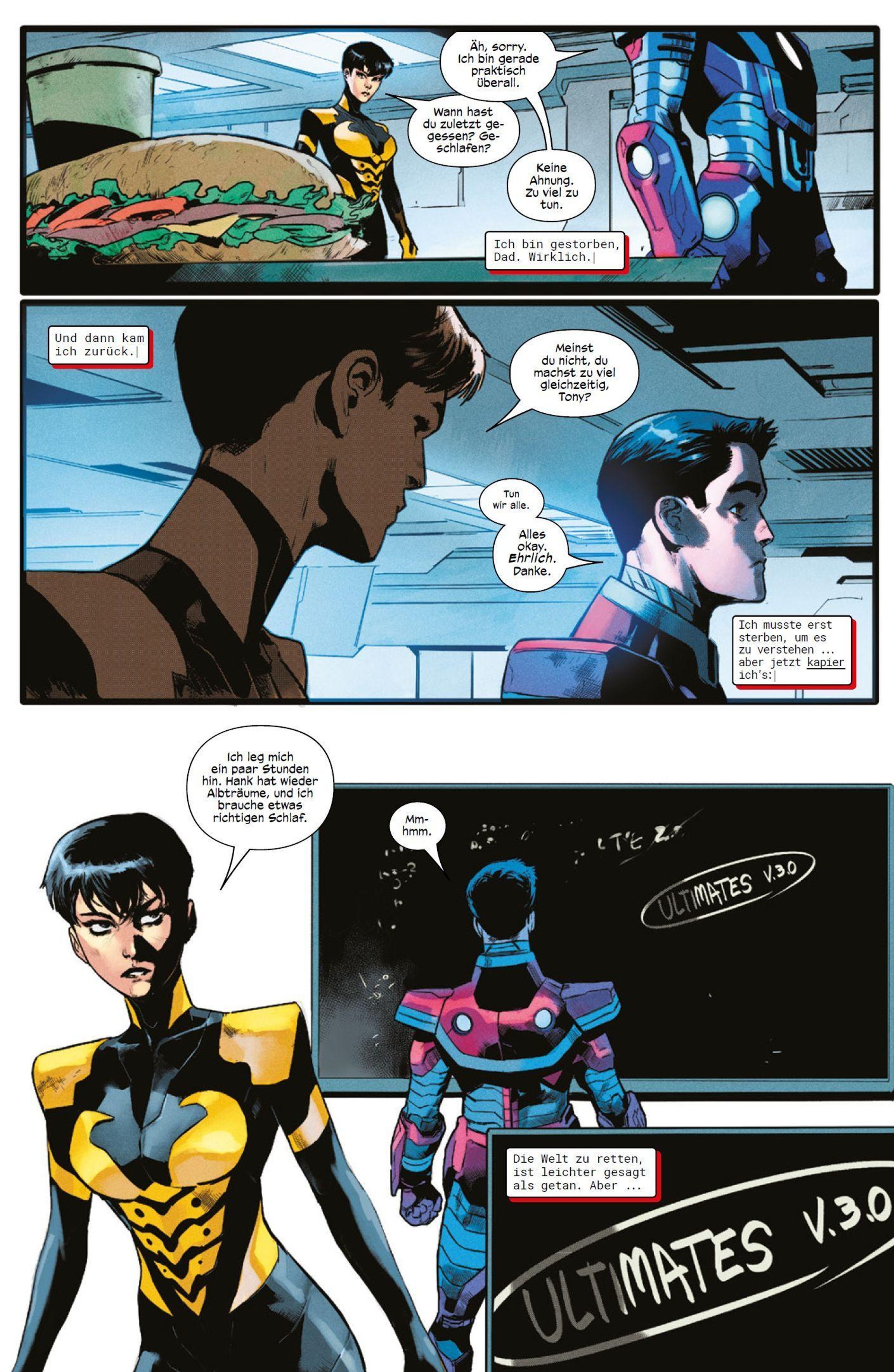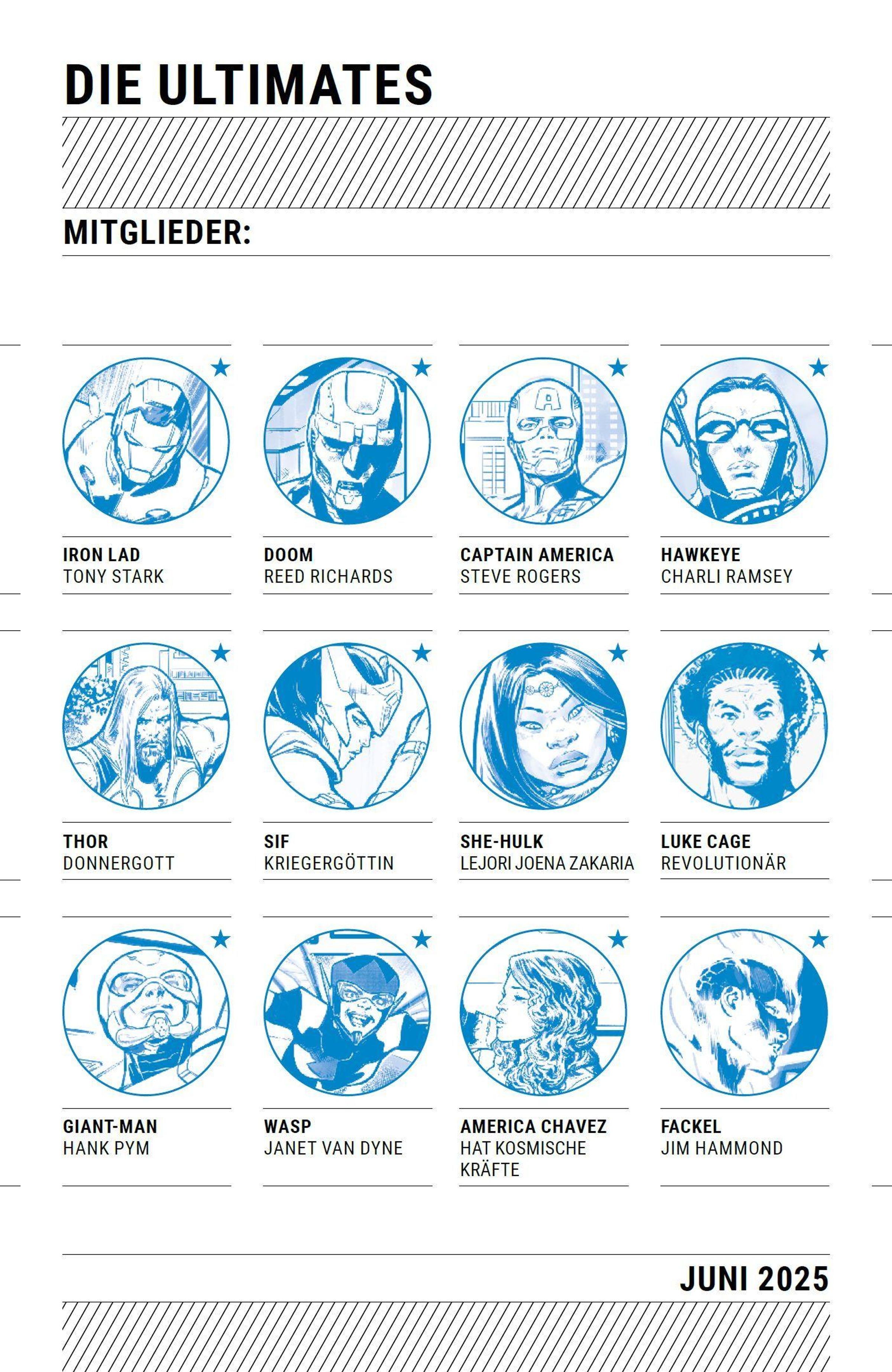 "ULTIMATES" und "DIE ZEIT LÄUFT AB" sind prominent. Helden in Rüstungen; einer hält eine leuchtende Kugel., Buch
