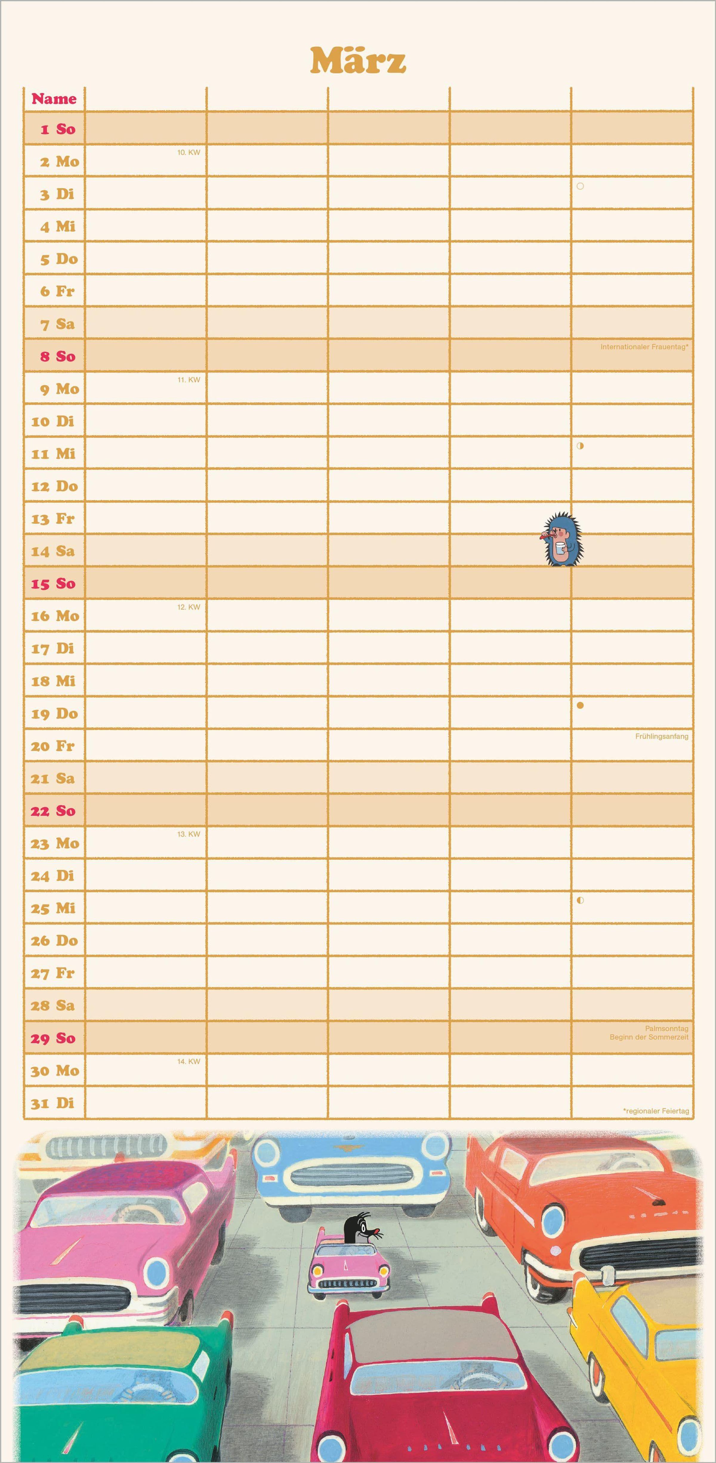 Der kleine Maulwurf begeistert seit Generationen Kinderherzen -- zusammen mit seinen Freunden Hase, Igel und Maus begleitet er die Kleinen durch das Jahr 2027. Der Maulwurf-Broschürenkalender vereint liebevolle Illustrationen, internationale Organisation und jede Menge Platz für Notizen.