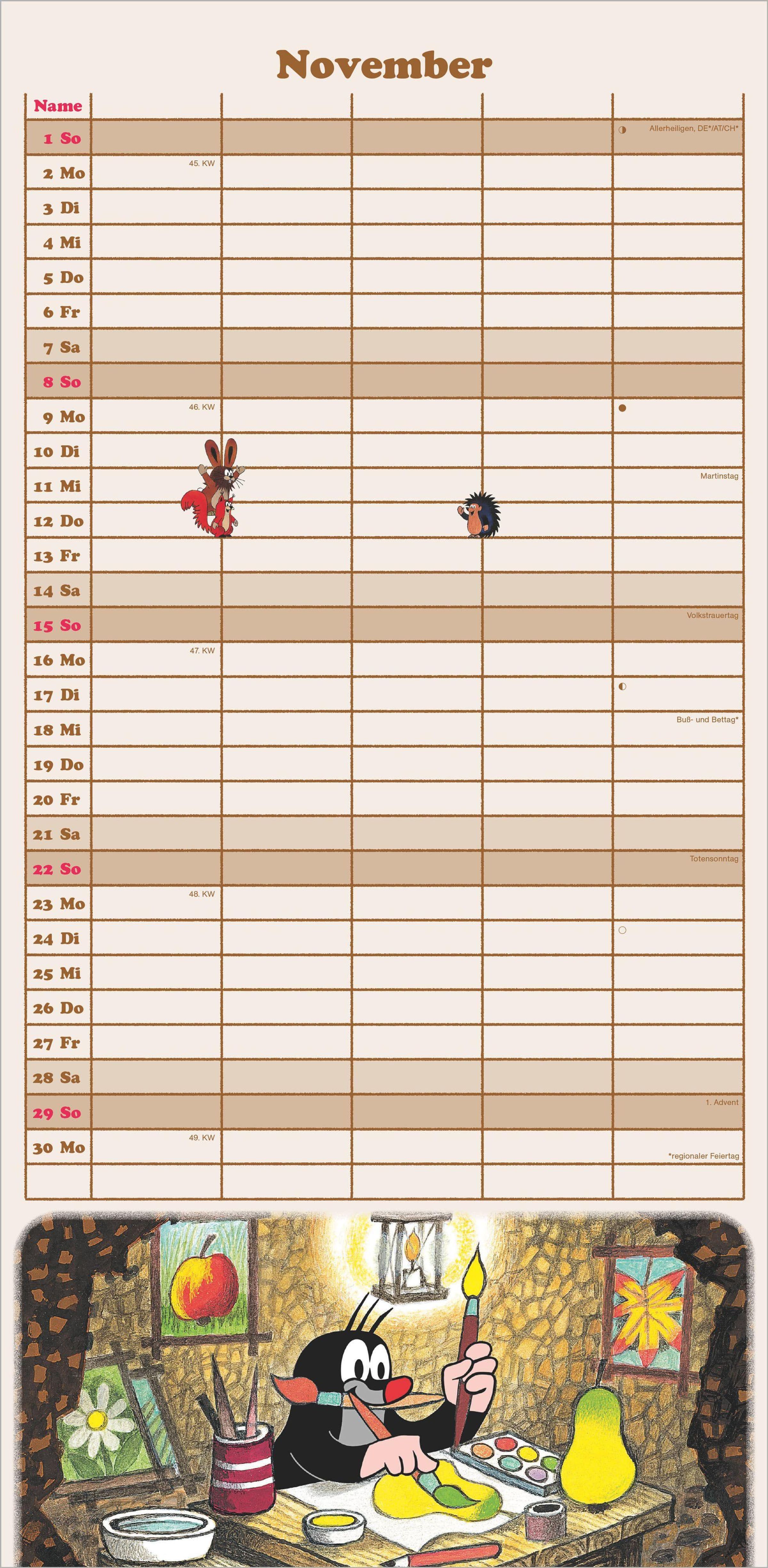 Charmantes Design: 12 Monatsblätter mit farbenfrohen Maulwurf-Illustrationen von Zdenk Miler