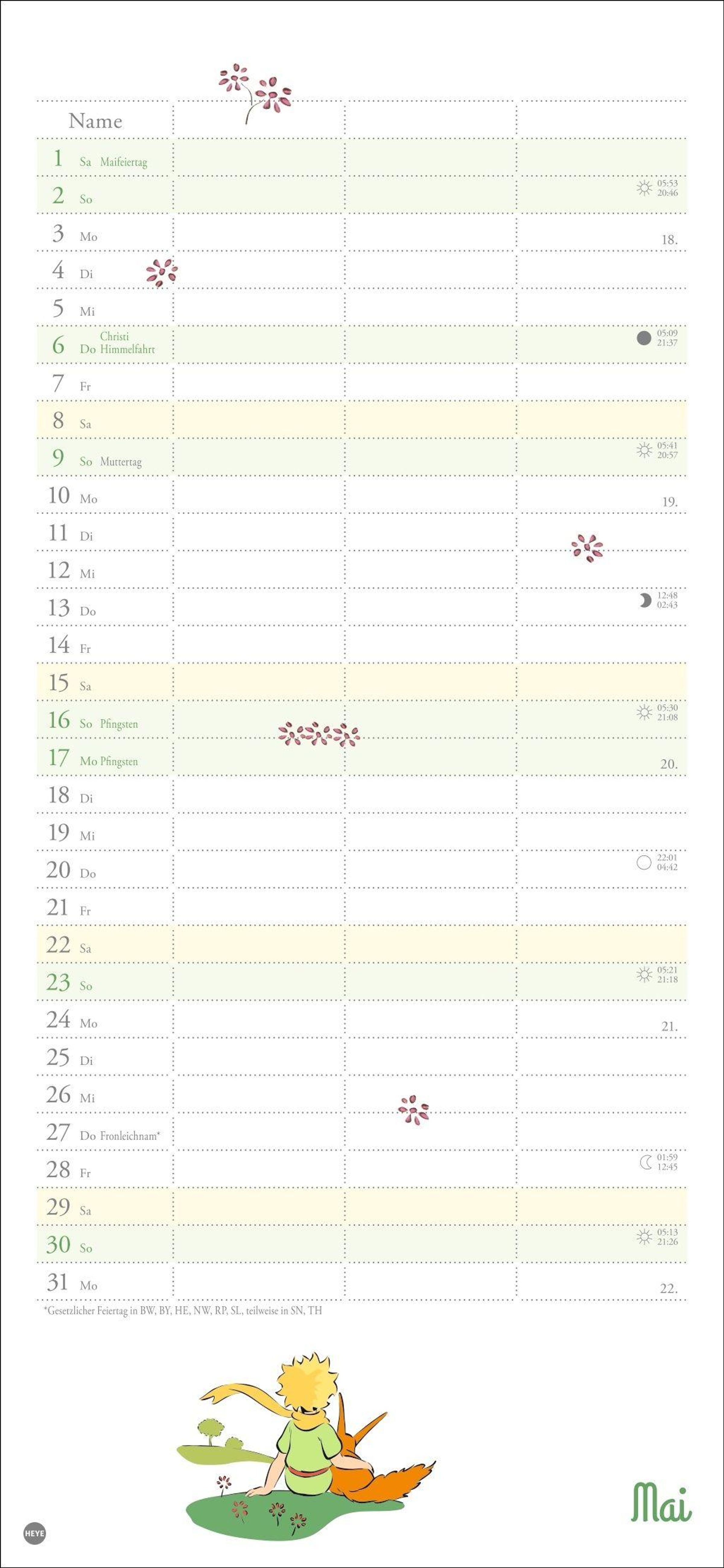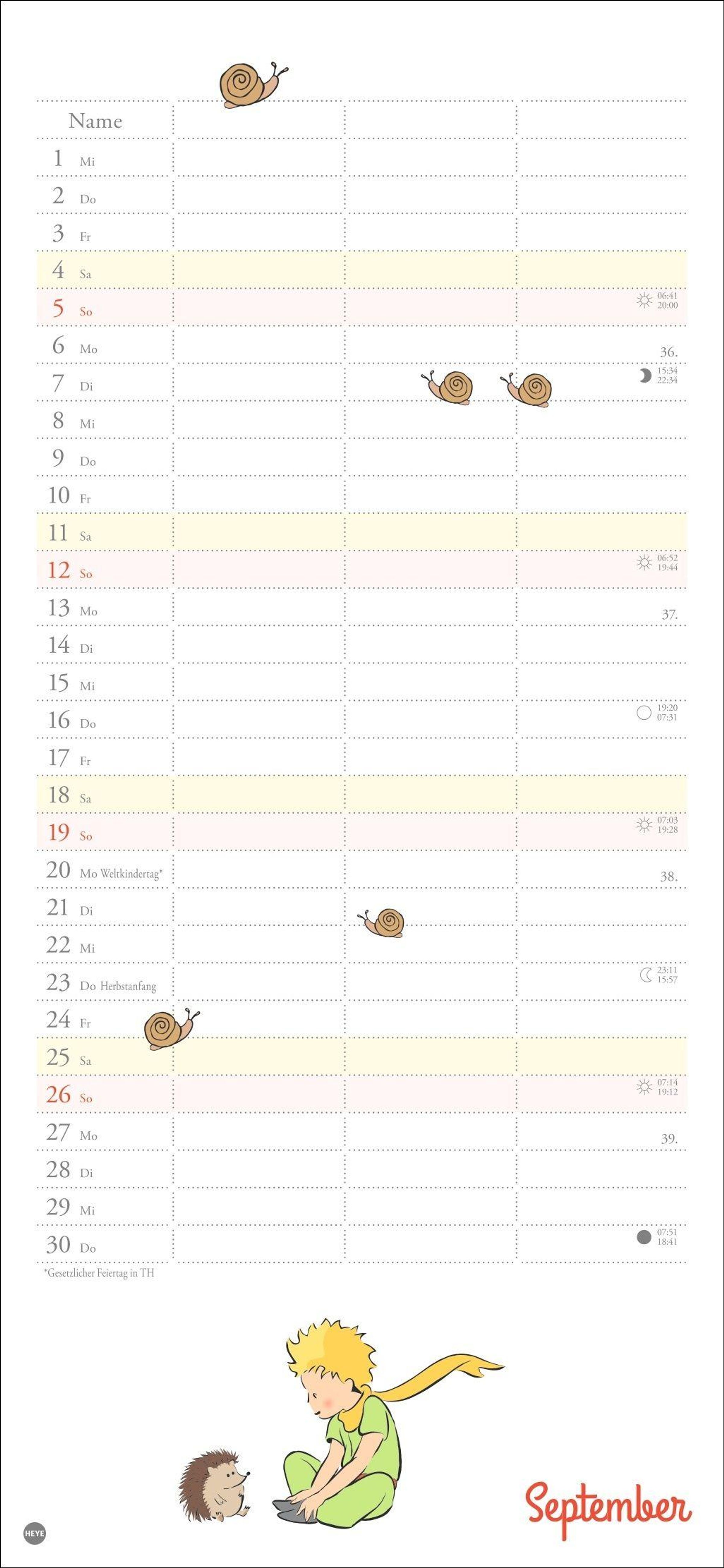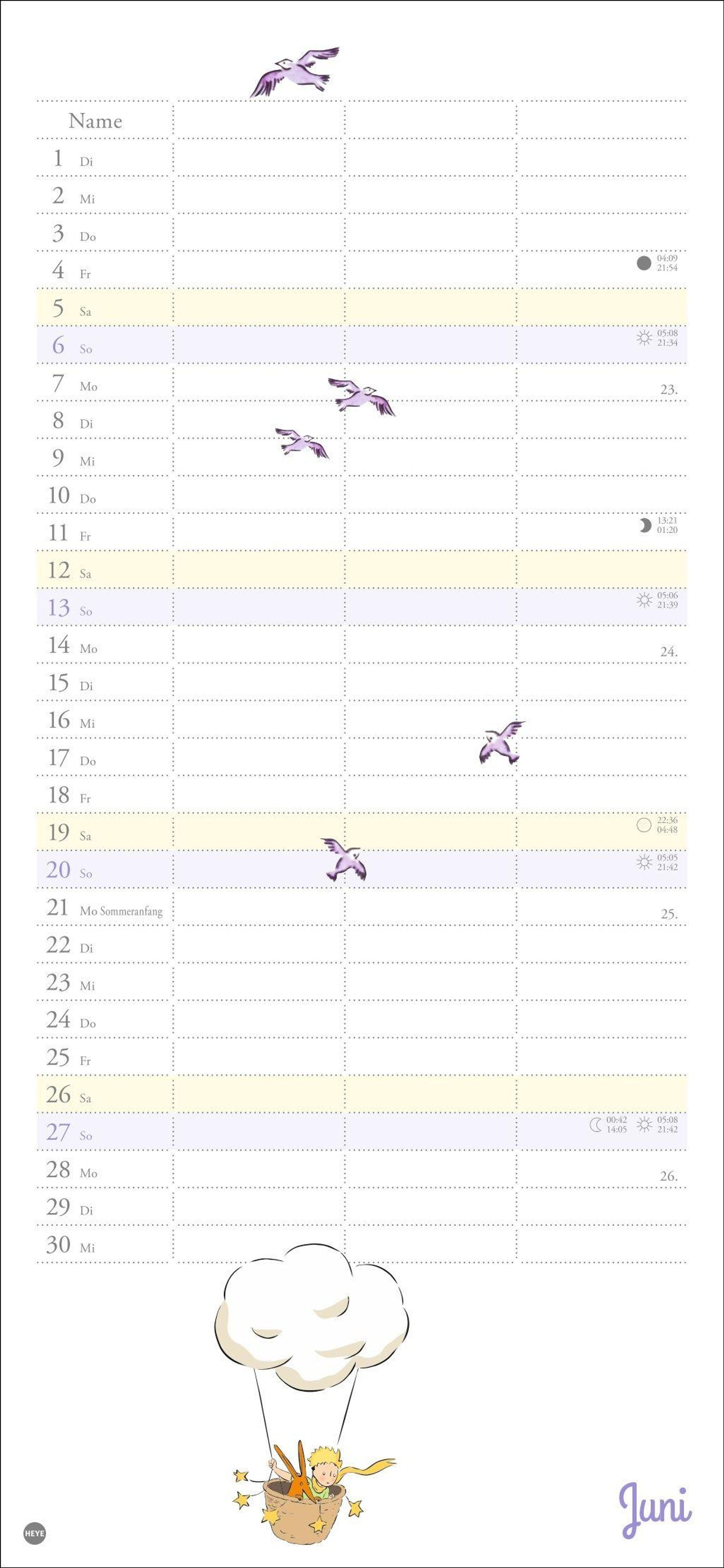 Mit Rose, Fuchs und dem kleinen Prinzen immer den Überblick bewahren: Der praktische Wandkalender mit drei Spalten Platz für alle Eintragungen, die wichtig sind