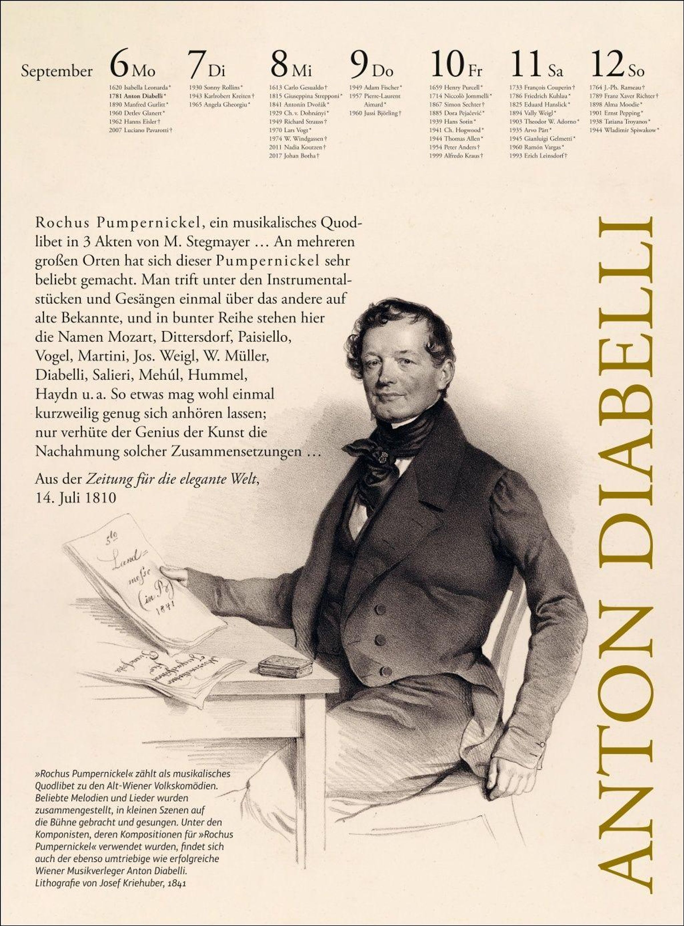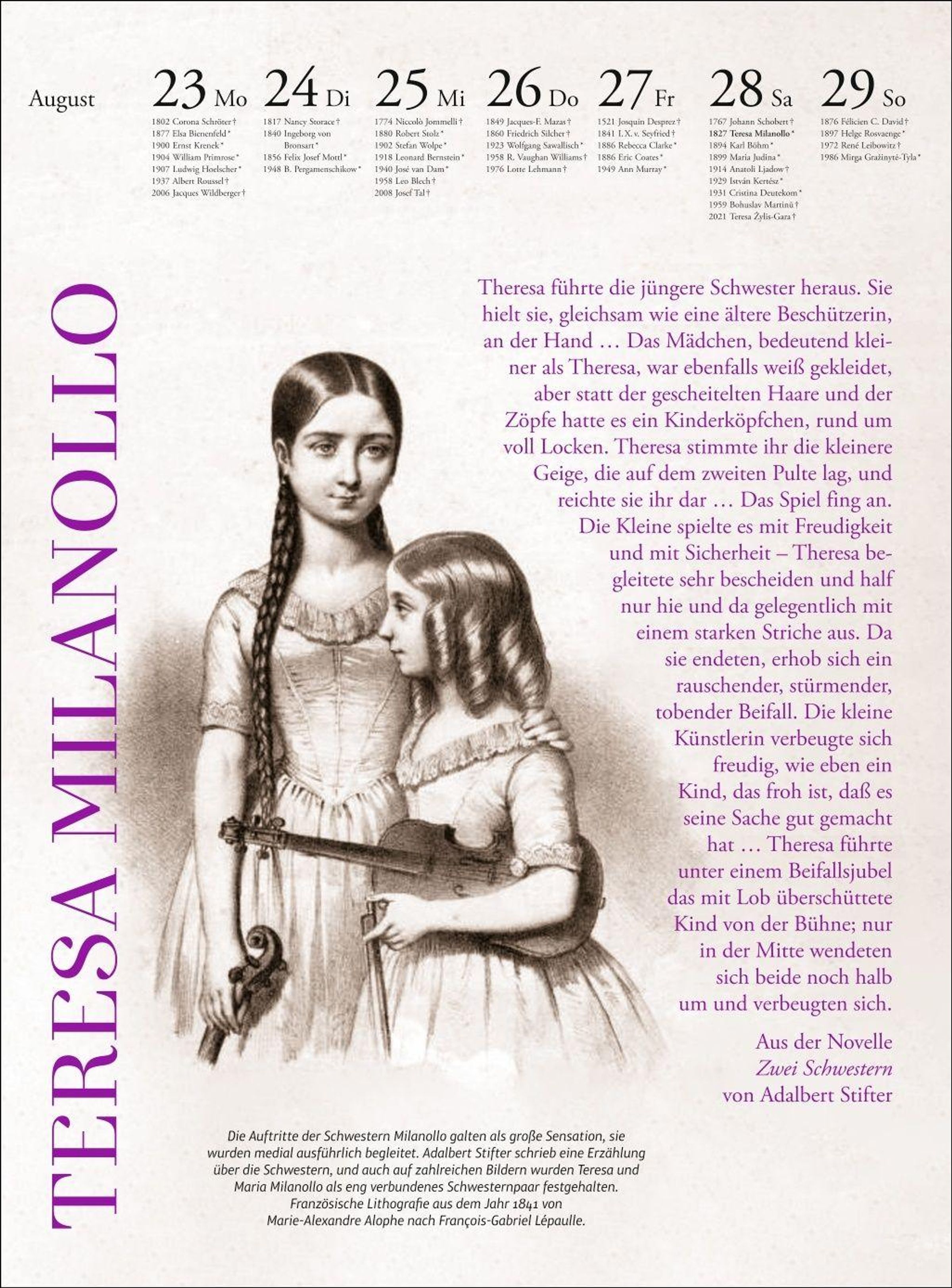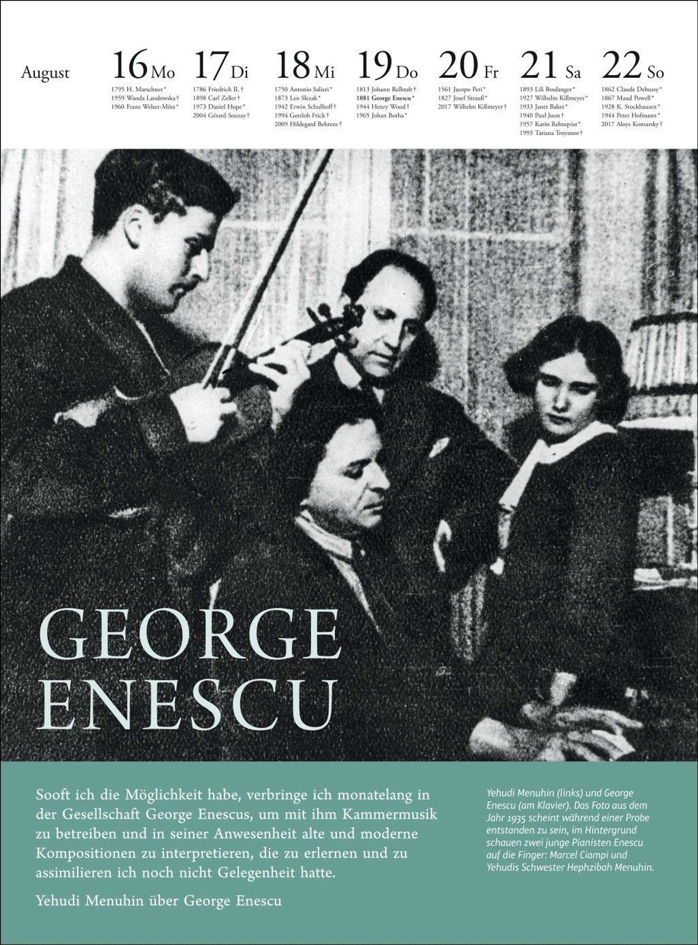 Der Musik Kalender 2027 widmet sich Woche für Woche der Verbundenheit durch Musik. In sorgfältig ausgewählten Bildern und Zitaten sowie erläuternden Begleittexten nimmt uns die Musikwissenschaftlerin und Herausgeberin Melanie Unseld wieder mit auf eine einzigartige Reise durch die Musikgeschichte.