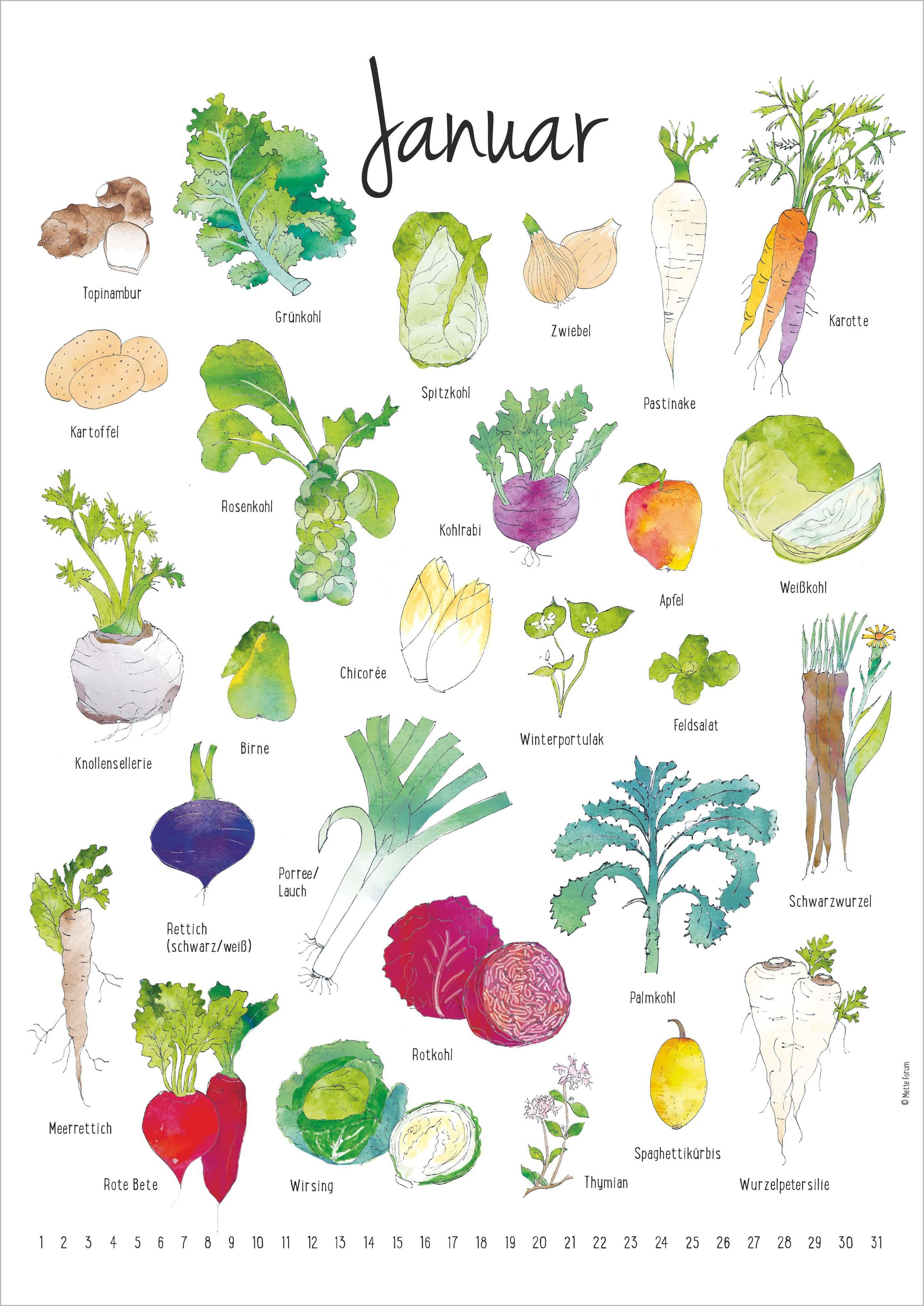 Mit Der Saisonkalender von LandLust wird saisonaler Genuss ganz einfach: Monat für Monat zeigen liebevoll gestaltete Illustrationen, welche Obst-, Gemüse- und Kräutersorten gerade Saison haben. Inspiriert vom dänischen Original der Grafikdesignerin Mette Forum lädt der Kalender dazu ein, bewusster einzukaufen, regionaler zu kochen und die Natur im Jahreslauf neu zu entdecken. Als immerwährender Wandkalender ist er unabhängig vom Jahr und kann jederzeit genutzt werden.