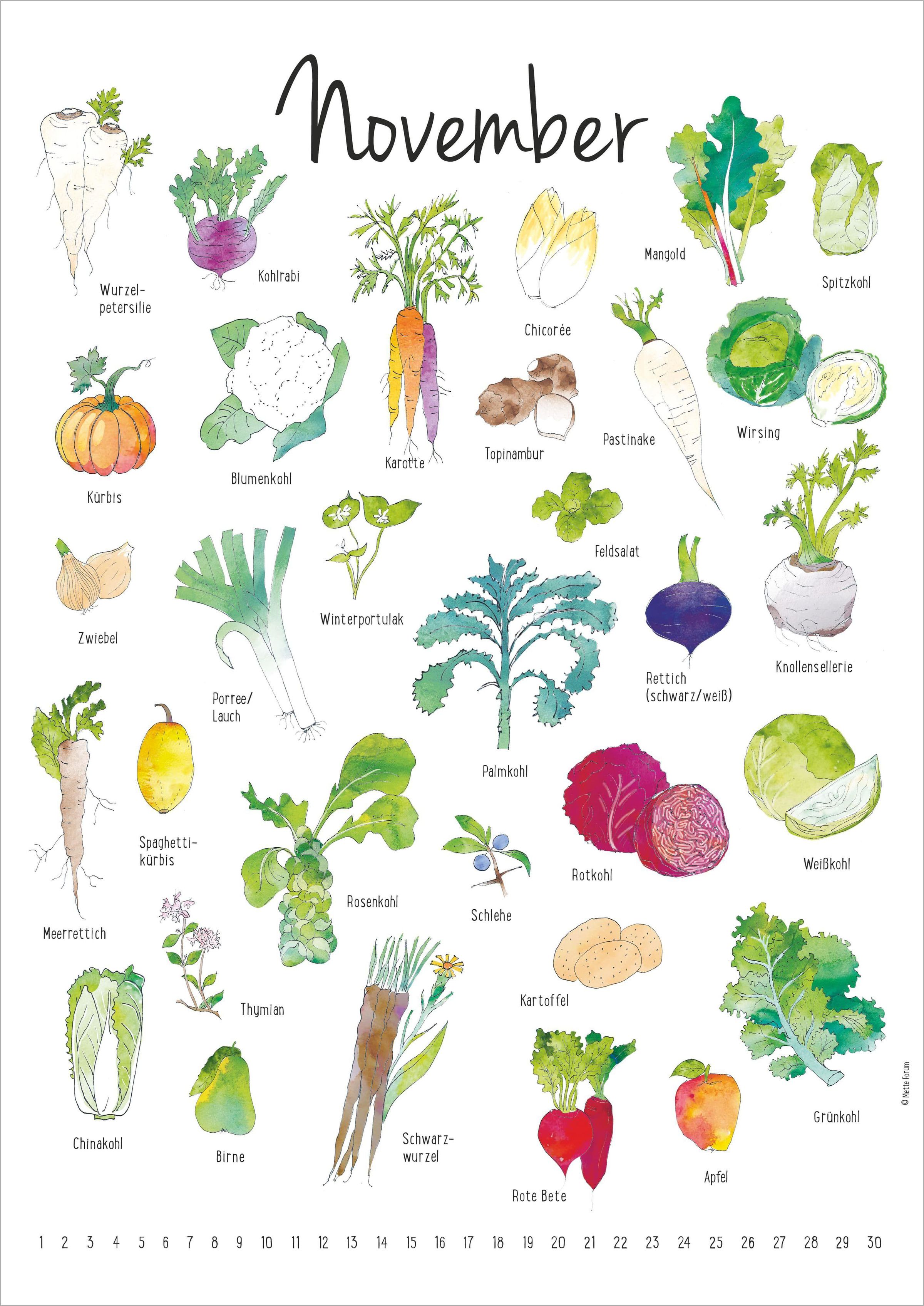 - Eine Übersicht über Gemüse, Früchte und Kräuter zu ihrer Erntezeit