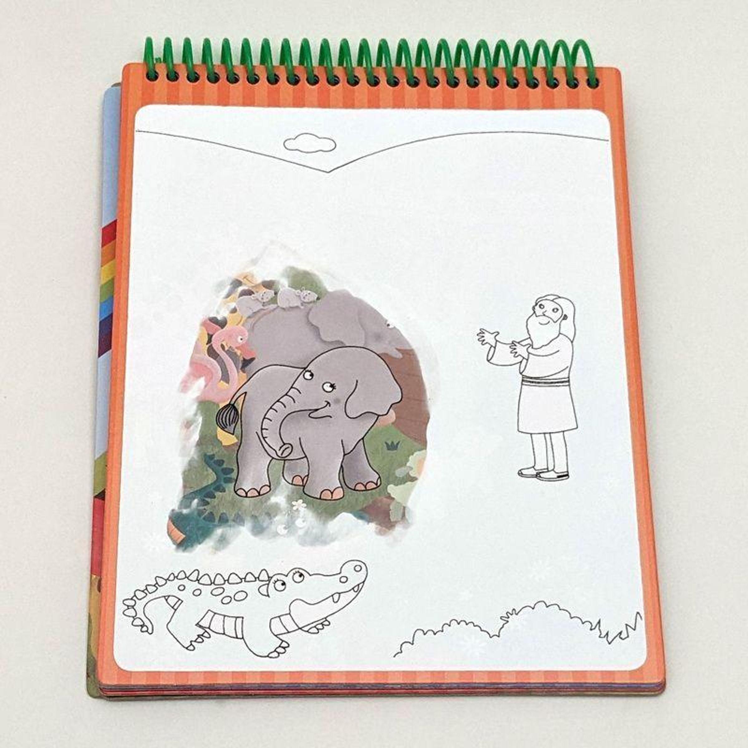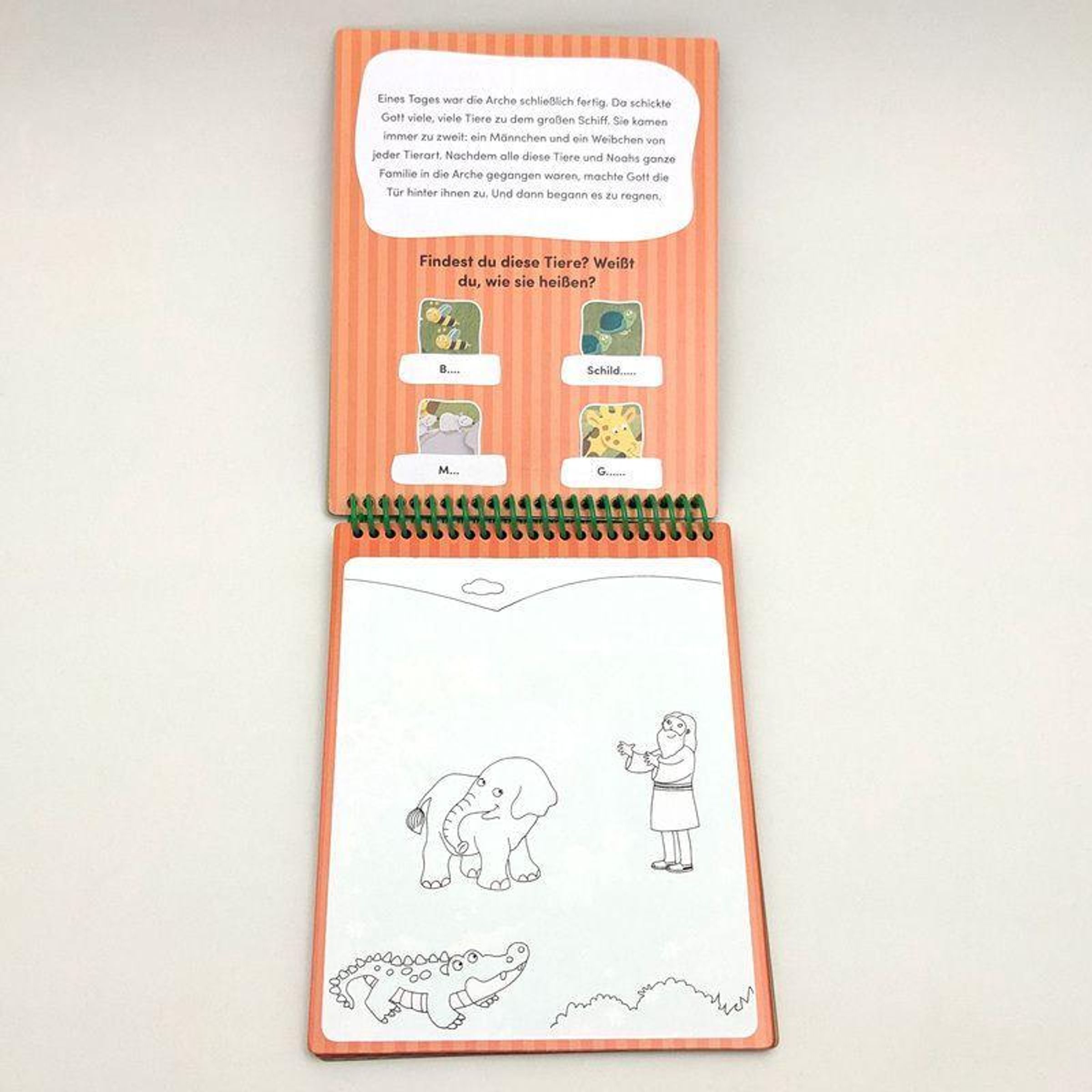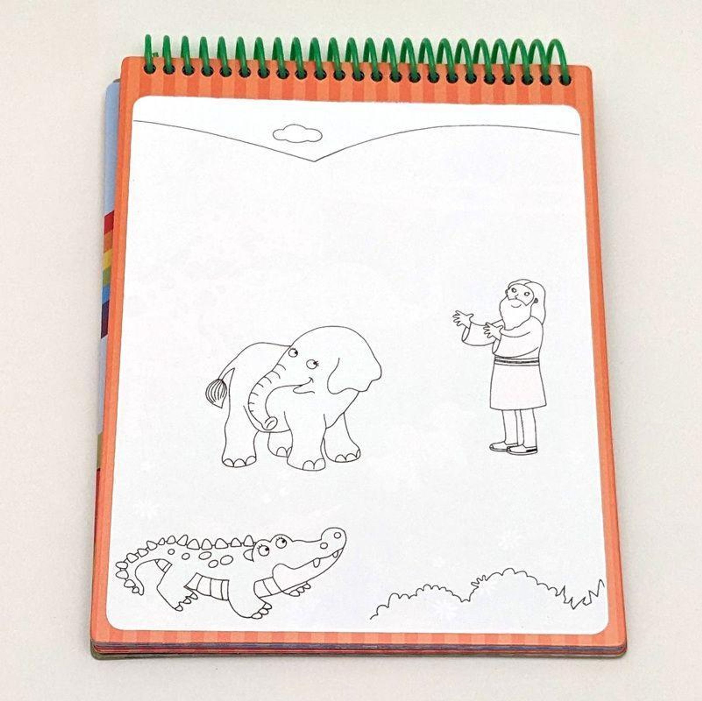 Die Bücher dieser Reihe haben schon bei vielen Kindern für Verblüffung gesorgt. Dieses erzählt, was Noah vor vielen Jahren mit Gott erlebt hat. Schon die Kleinsten werden staunen, wie viel sich beim Malen entdecken lässt! Trocknen die Seiten nach dem Malen, verschwindet die Farbe nach einiger Zeit und das Buch kann wieder und wieder benutzt werden.