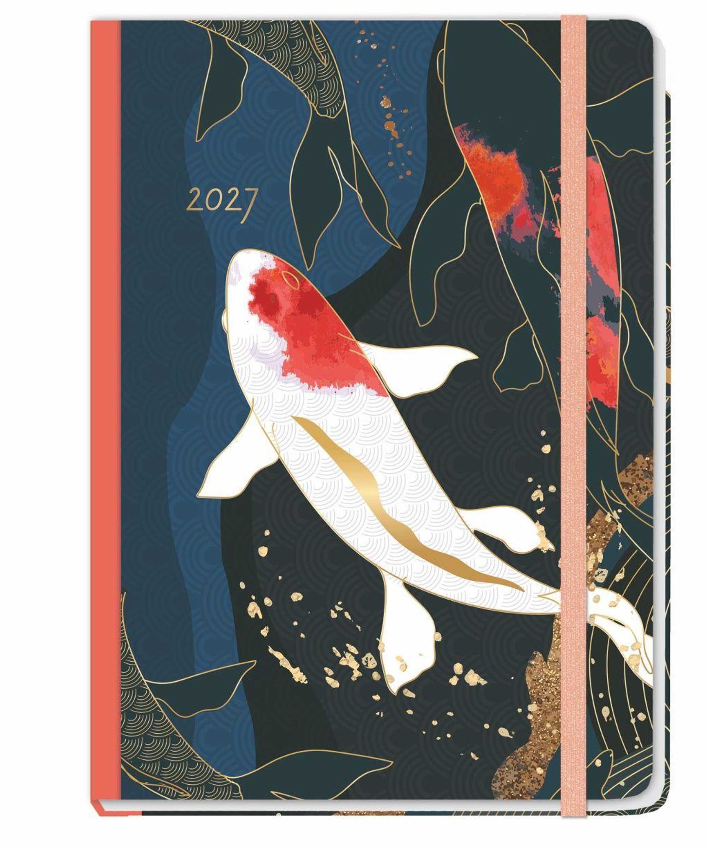 Liegt angenehm in der Hand: Soft-Touch-Einband, dessen Cover mit einem Koi-Motiv besticht