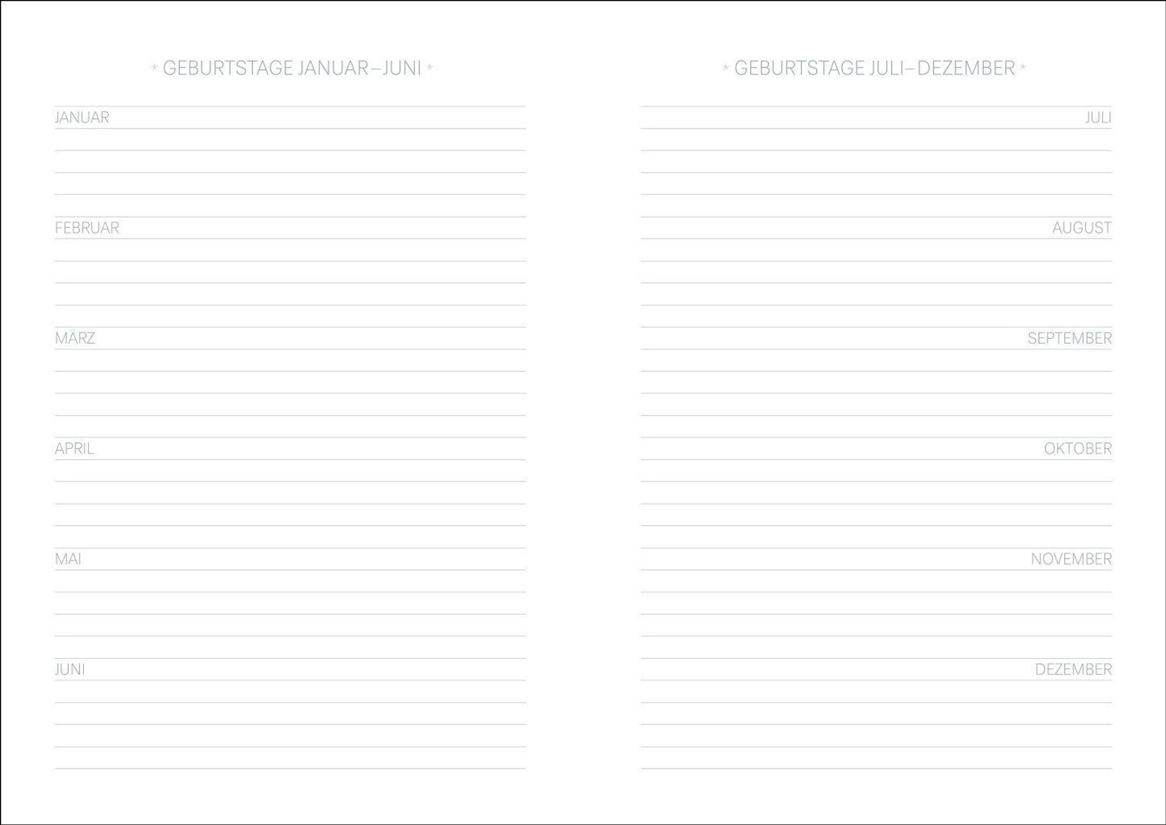 Terminkalender im A5-Format für den bequemen Überblick: Wochenübersicht mit viel Raum für Notizen und Extraseiten für Organisatorisches