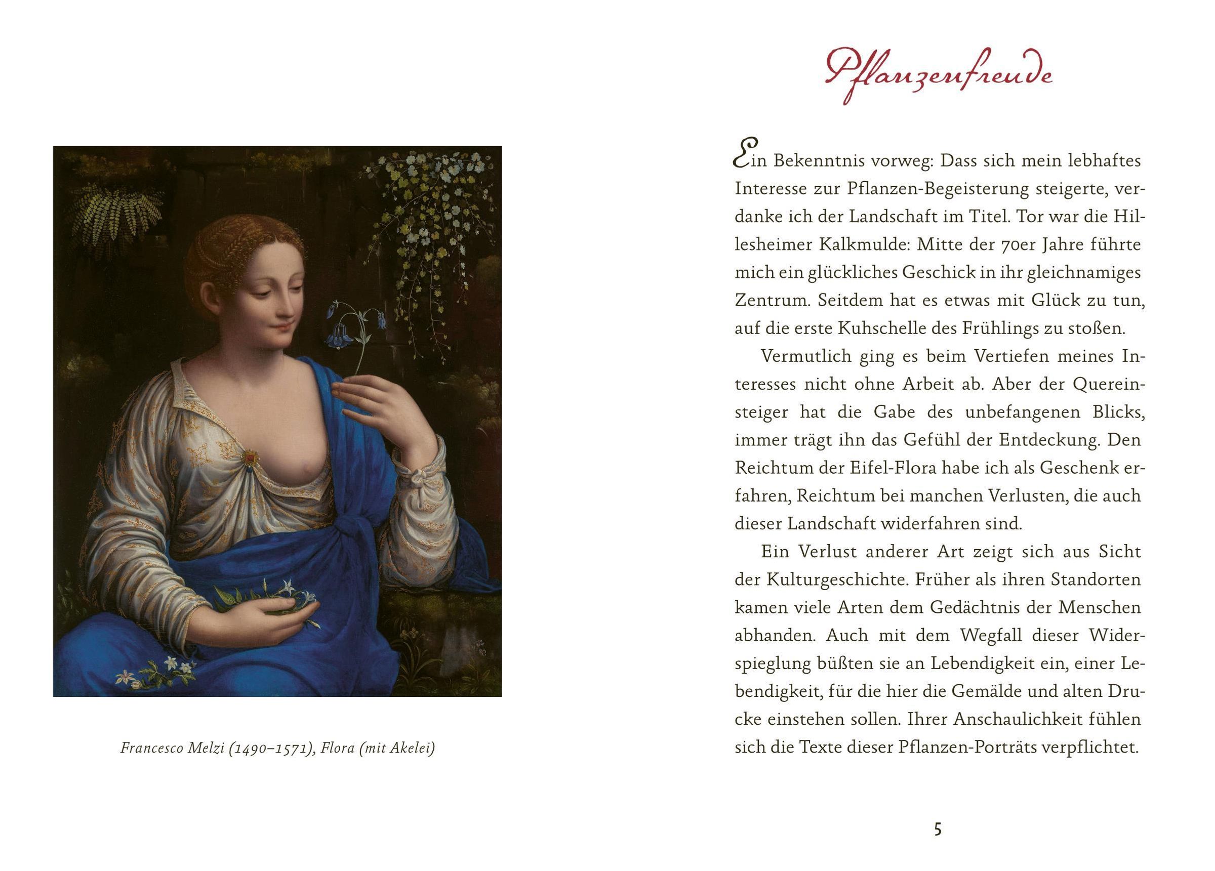Die kurzweilig erzählten Porträts verbinden immer auch die Eifel mit der Welt. Sie erfassen die Pflanzen nicht rein sachlich in der Art eines Bestimmungsbuches, sondern widmen sich jeweils der lebendigen Kulturgeschichte der einzelnen Arten. Dabei gibt es nicht nur zu lesen, sondern auch zu schauen: Neben Fotografien bereichern diese Blüten-Lese Gemälde und historische Stiche, deren grandiose Kunst den Texten als Vorbild diente.