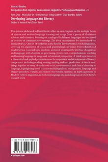 This volume dedicated to Dorit Ravid, offers 29 new chapters on the multiple facets of spoken and written language learning and usage from a group of illustrious scholars and scientists, focusing on typologically different languages and anchored in a variety of communicative settings. The book encompasses five interrelated yet distinct topics. One set of studies is in the field of developmental psycholinguistics, covering the acquisition of lexical and grammatical categories from toddlerhood to adolescence. A second topic involves a section of studies on the interface of cognition and language, with chapters on processing, production, comprehension, teaching and learning language in usage and in historical perspective. A third topic involves a theoretical and applied perspectives on the acquisition and development of literacy competence, including reading, writing, spelling and text production. A fourth topic brings together an array of studies on social, environmental andclinical diversity in language, highlighting novel issues in multilingualism, immigration, language and literacy disorders. Finally, a section of the volume examines in depth questions in Modern Hebrew linguistics, as the home language and launching base of Dorit Ravid's research work.