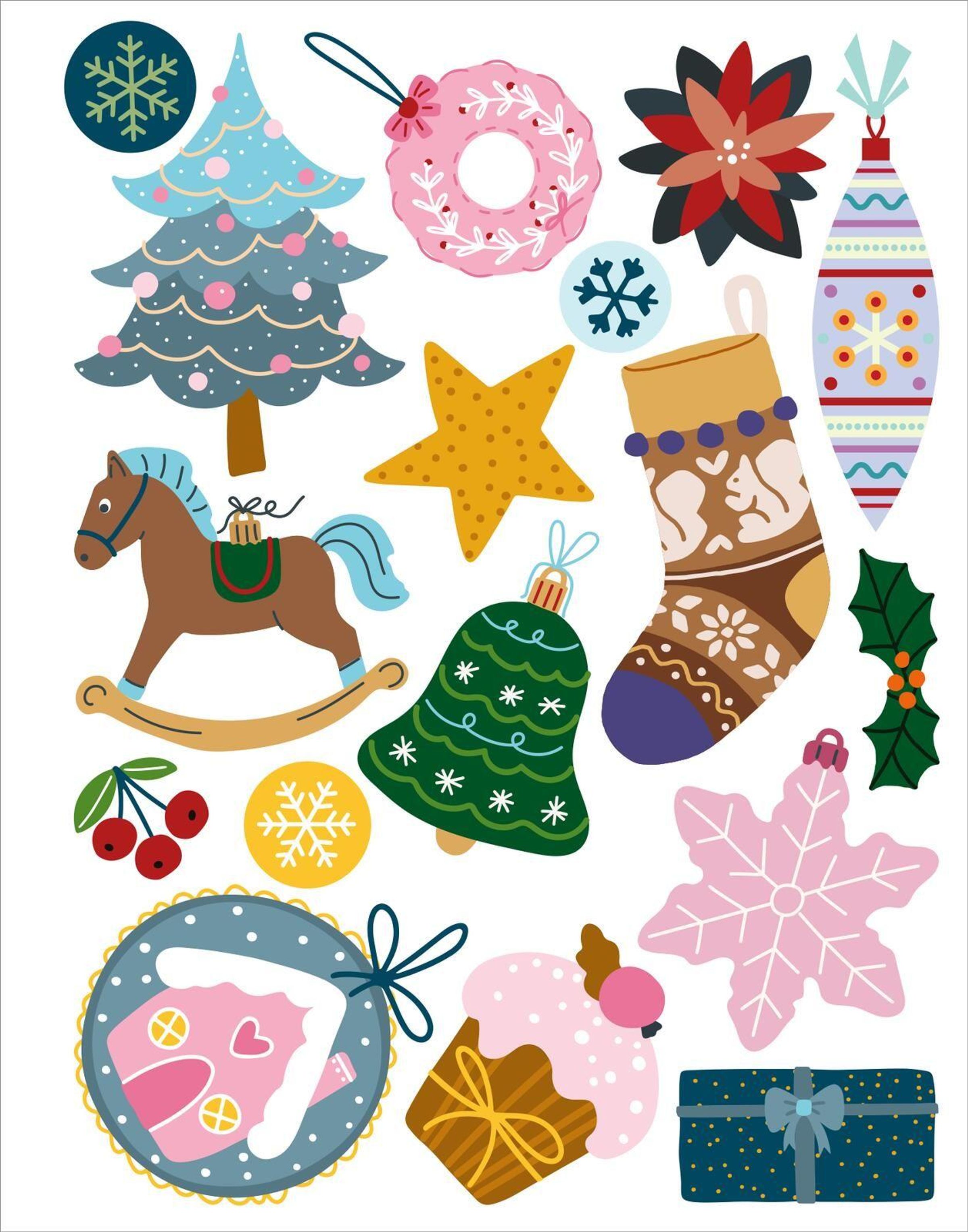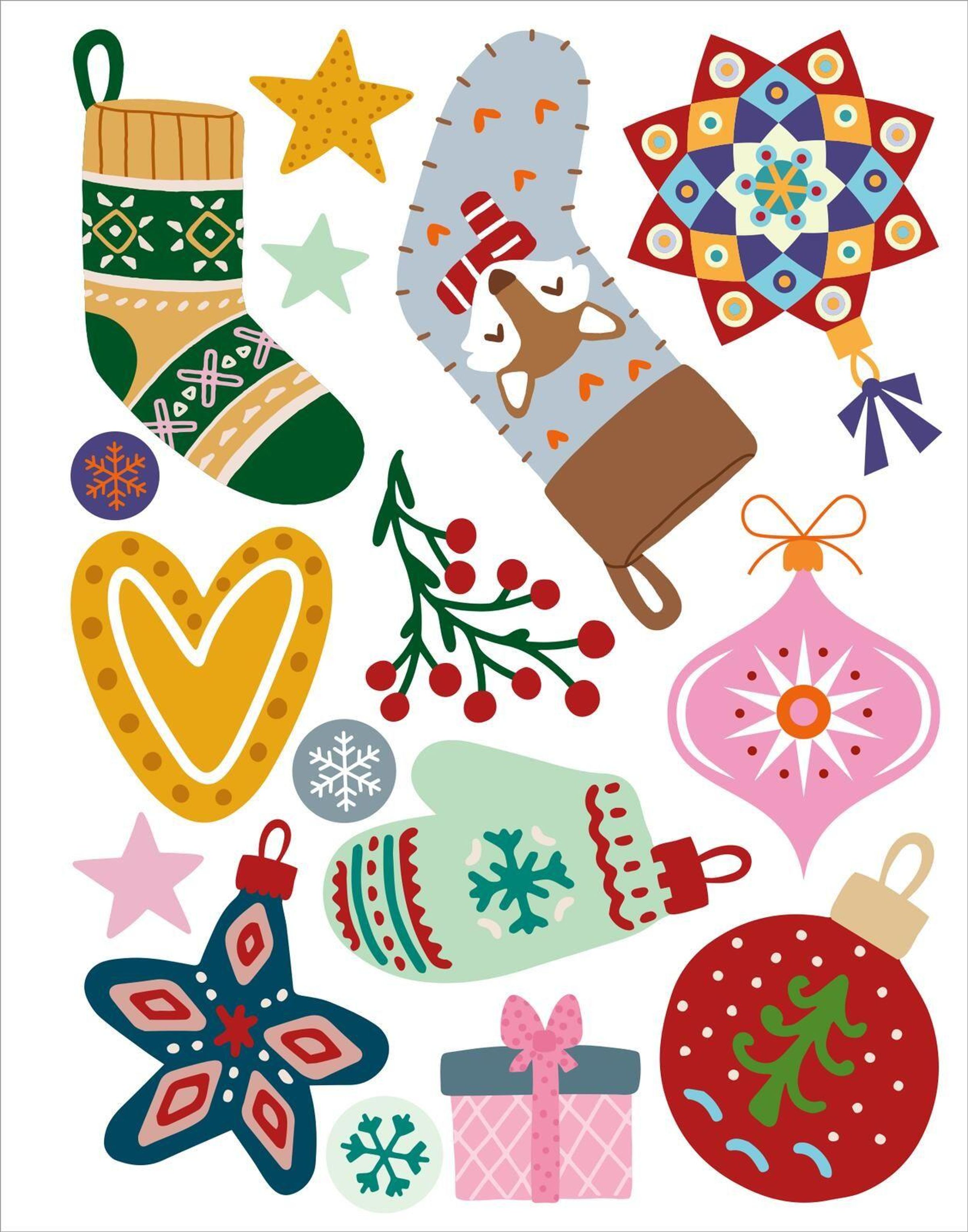 - Weihnachtsmotive: Kugeln, Sterne, Geschenke und Tannenbäume für stimmungsvolle Deko