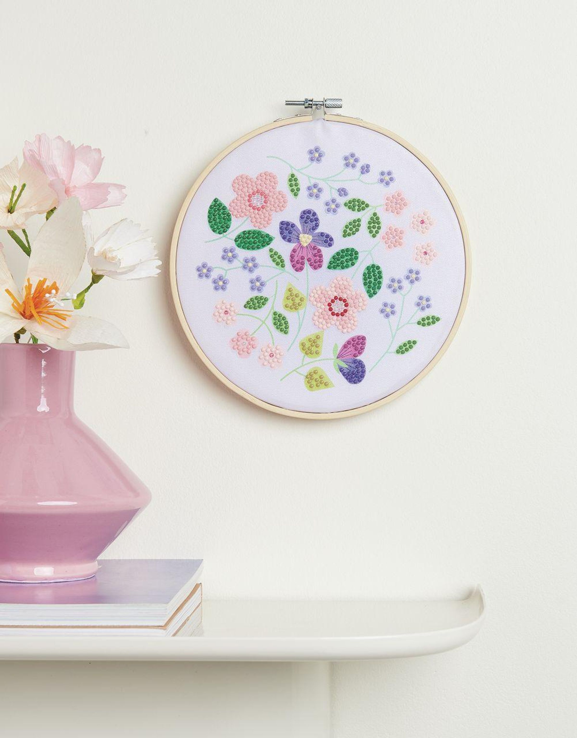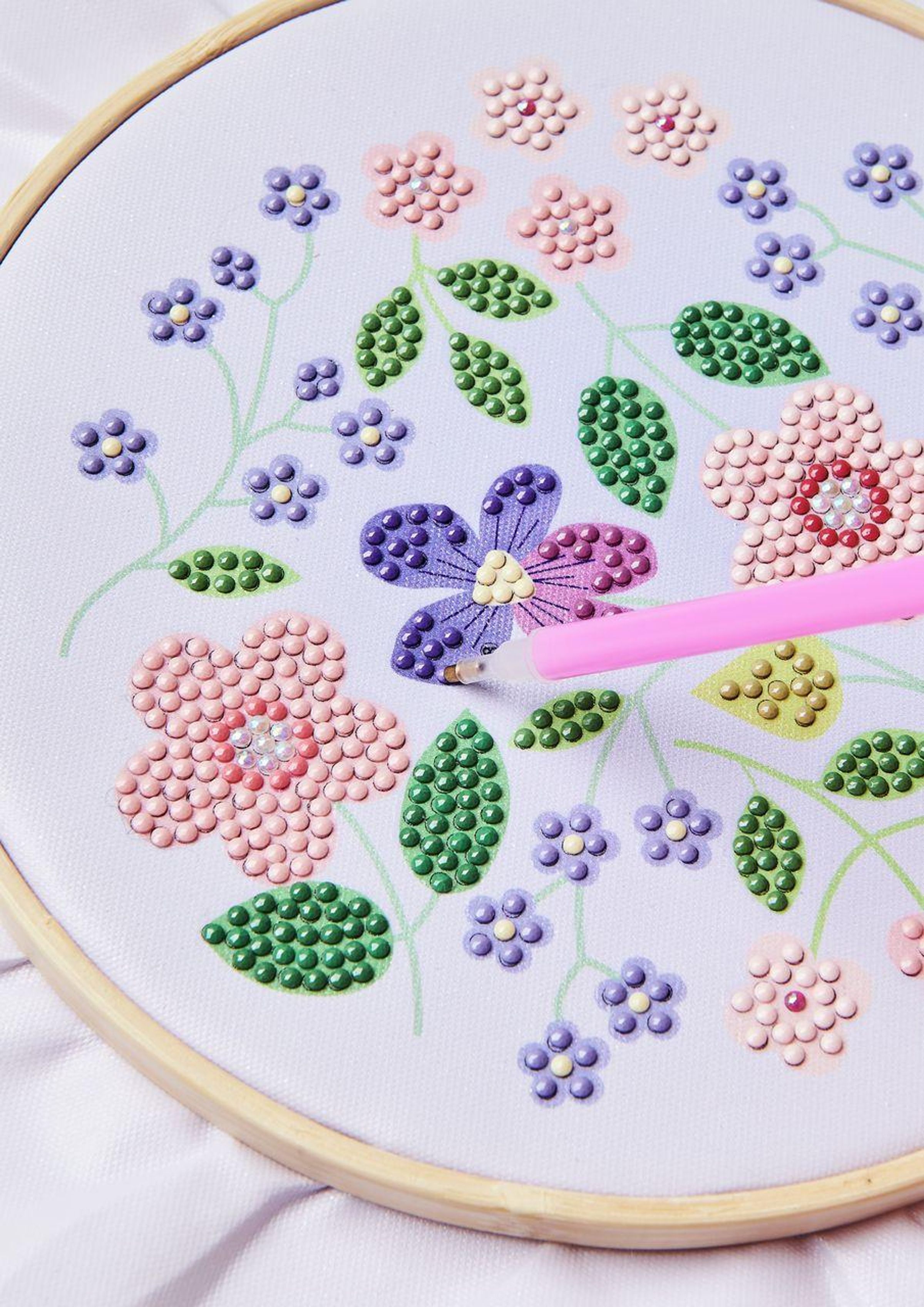 Diamond Painting DIY-Set, Bild auf Leinwand, Schimmernde Blumen // Ø 20 cm. 19-teilig