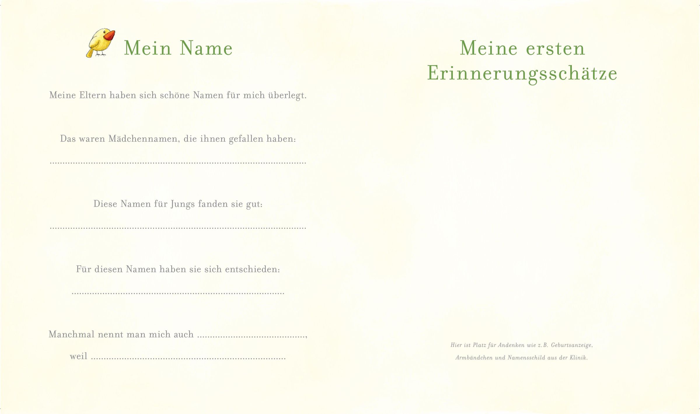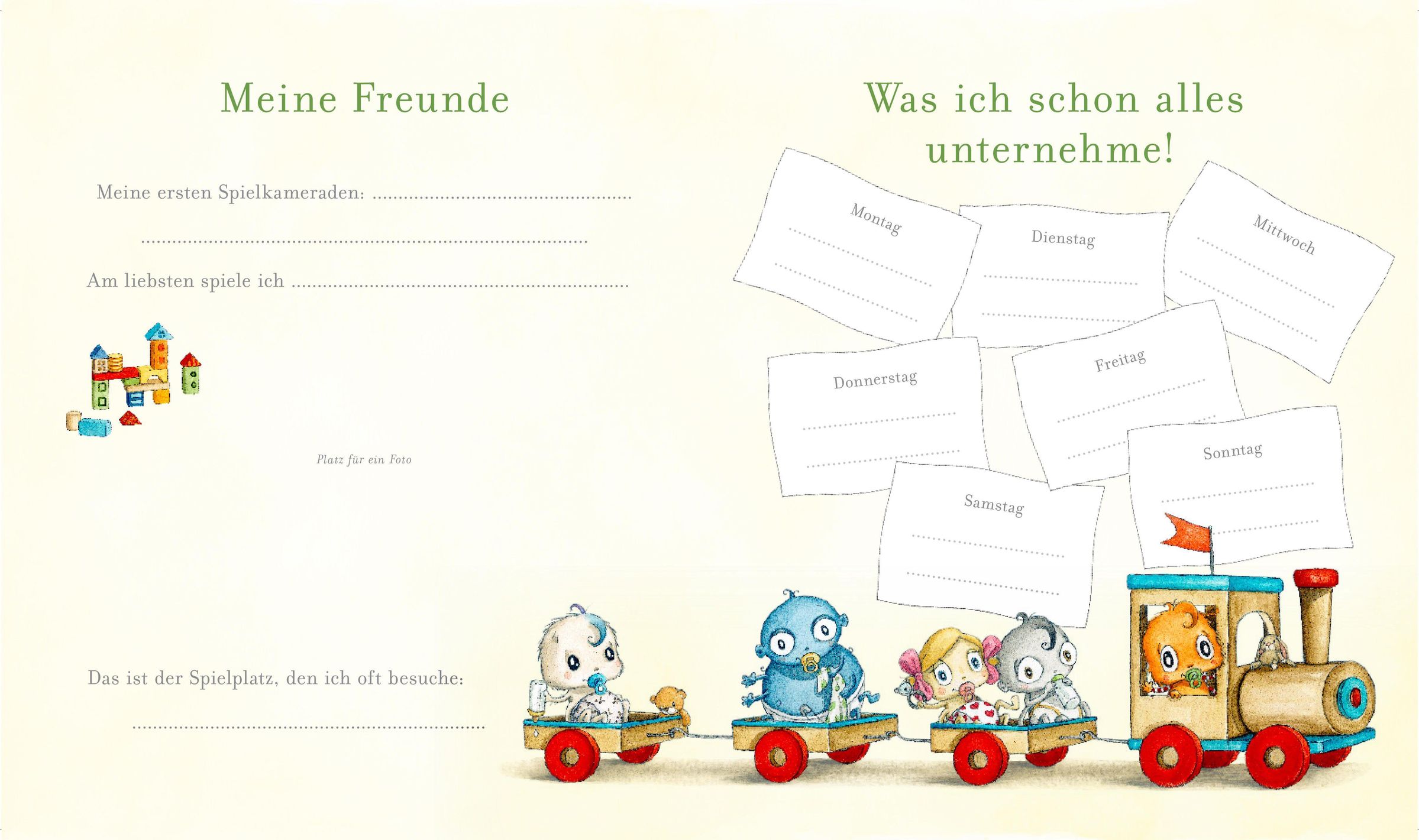 Erstes Lächeln, erste Worte, erste Schritte hinaus in die Welt ... In diesem liebevoll illustrierten Eintragbuch können Eltern für sich und ihr Kind all die besonderen Ereignisse der ersten Monate festhalten, Fotos einkleben und Erinnerungsstücke wie Haarlocke, Geburtsanzeige oder Babyarmband aufbewahren.