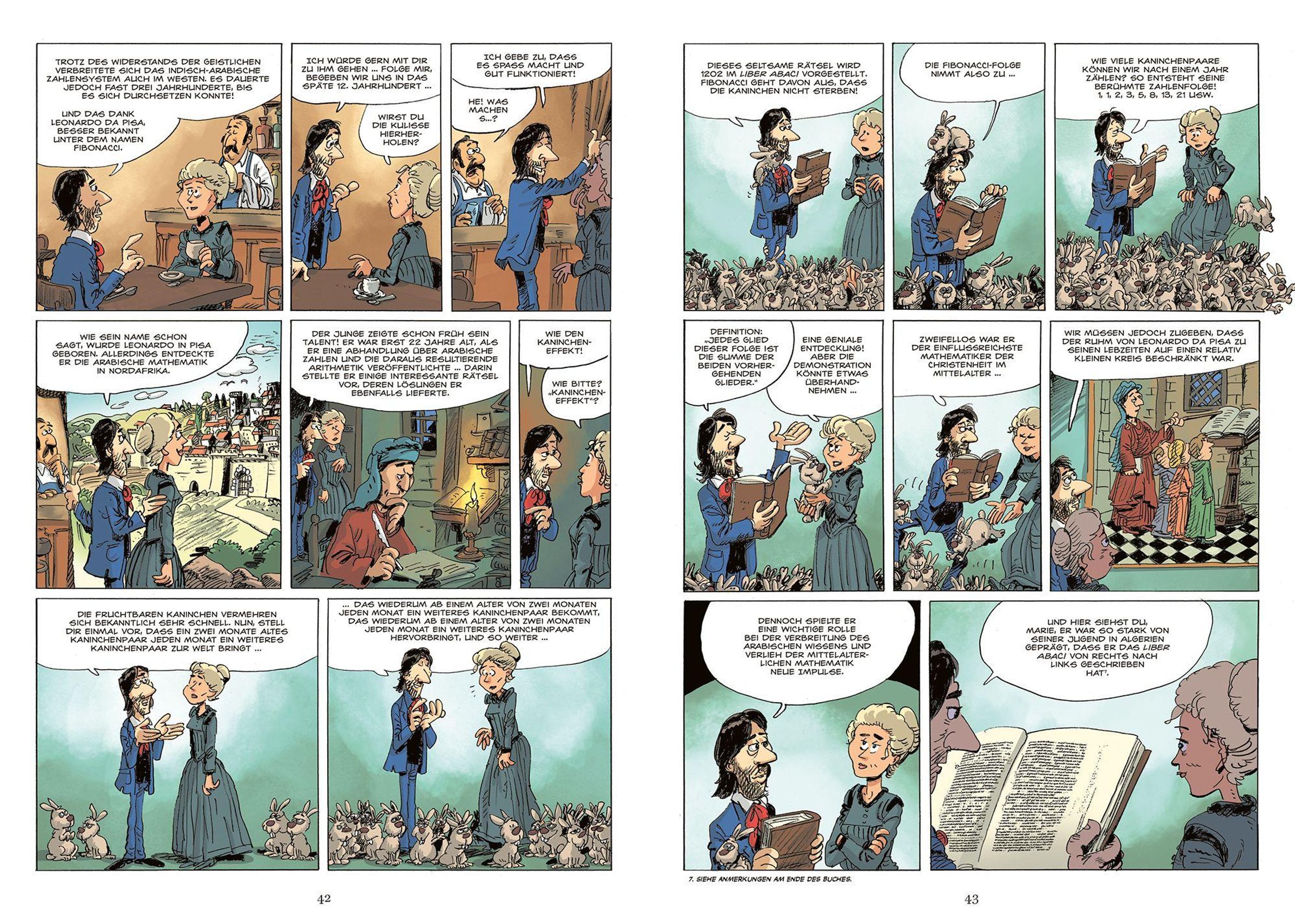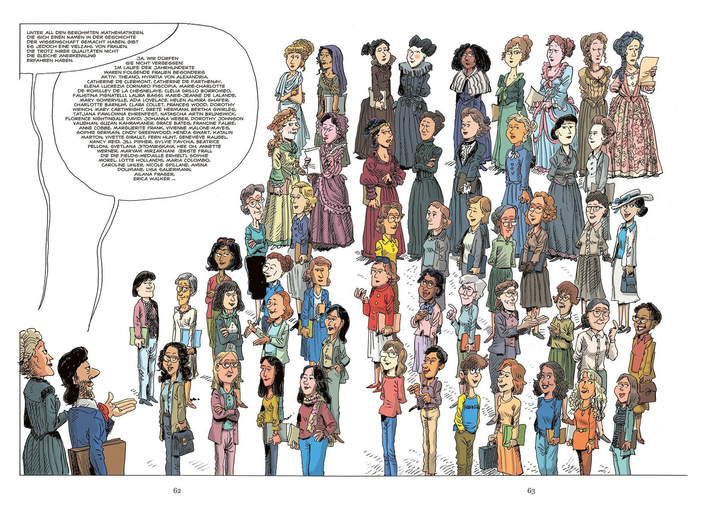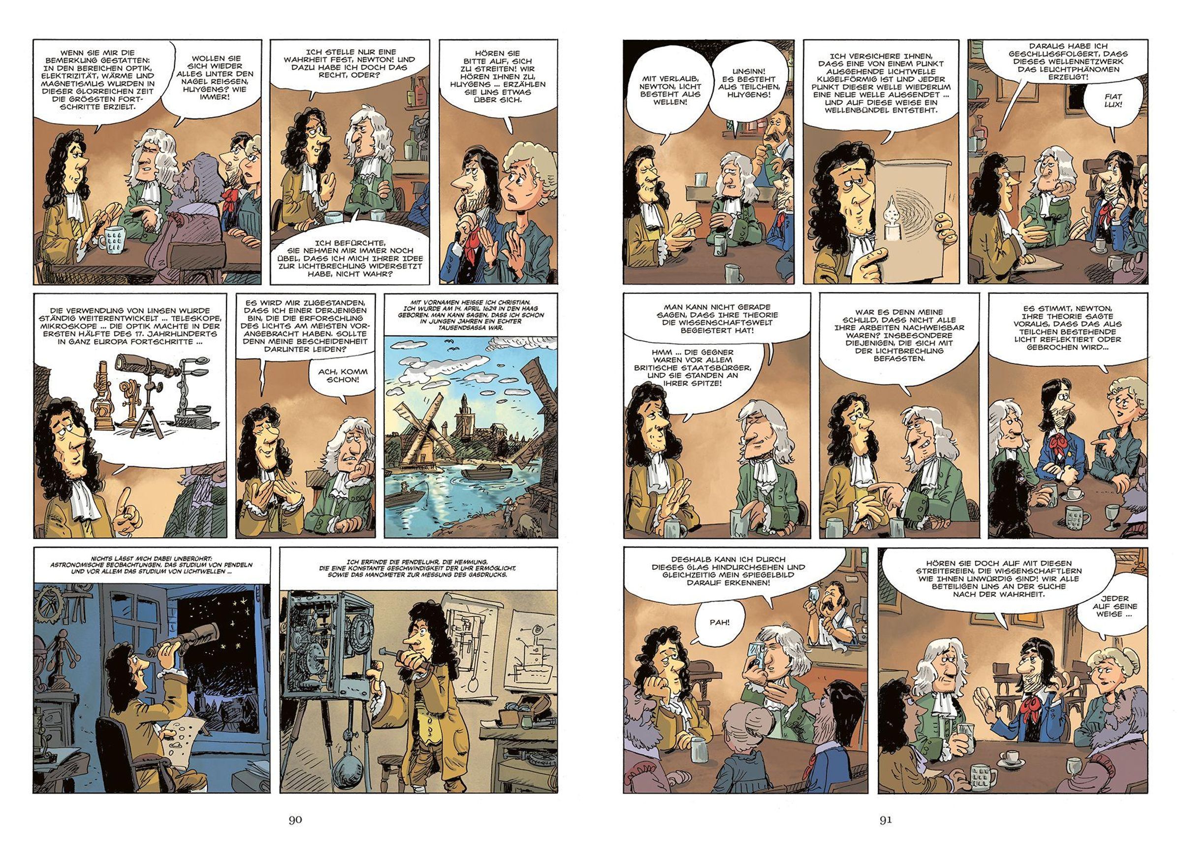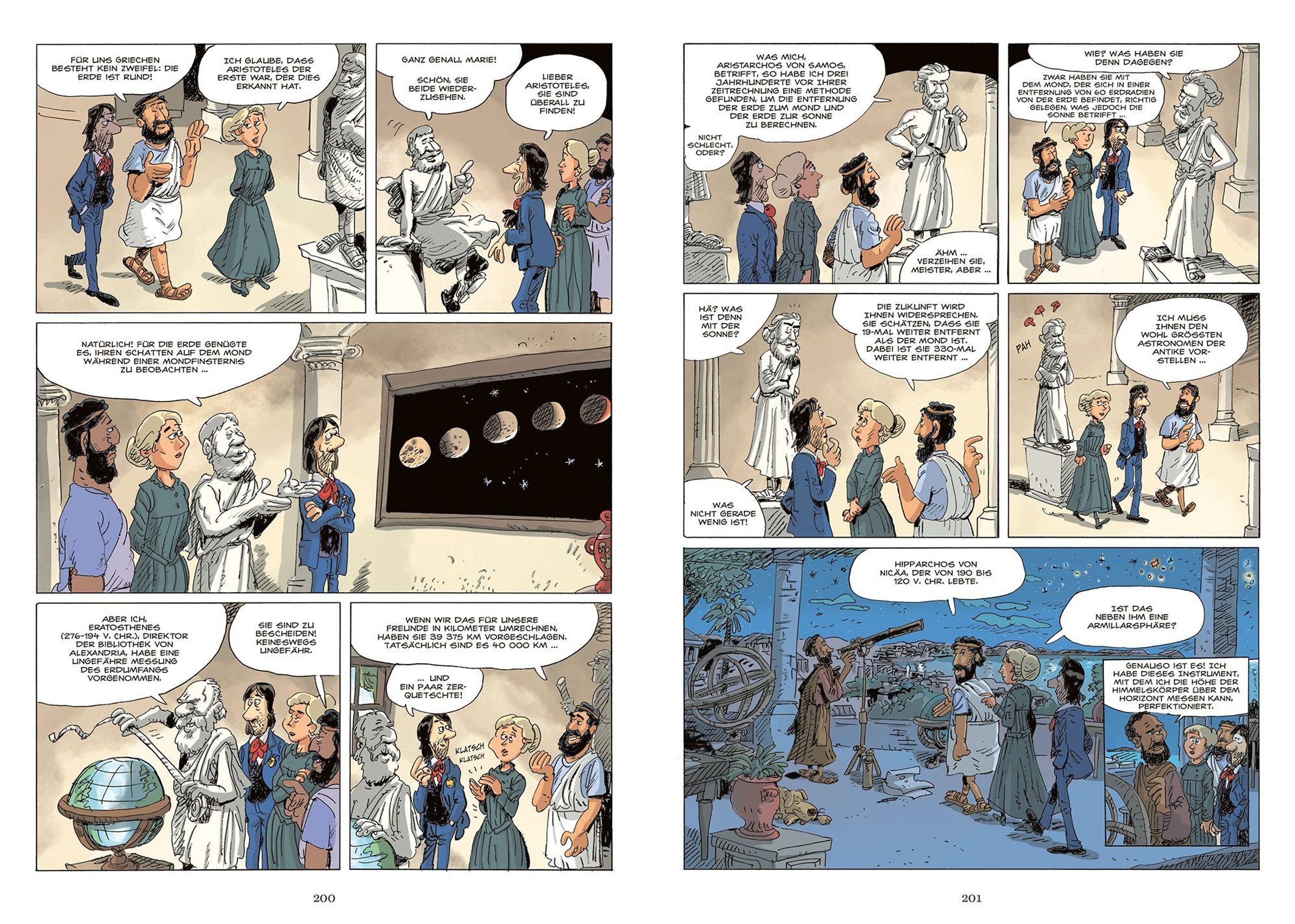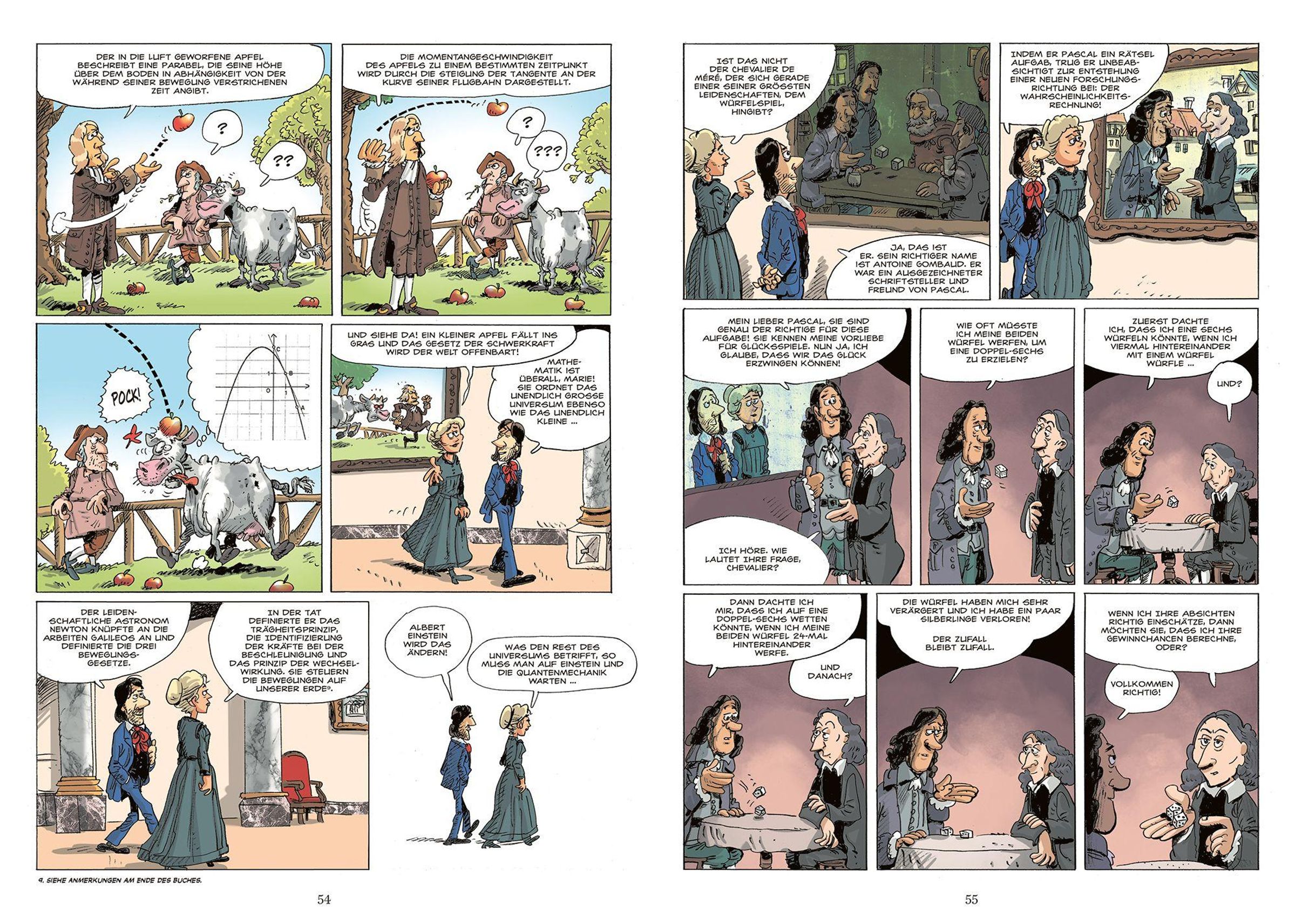 "HEUREKA! Von Atom bis Zufall – die unglaubliche Geschichte der Naturwissenschaften." Illustration mit Wissenschaftlern., Buch